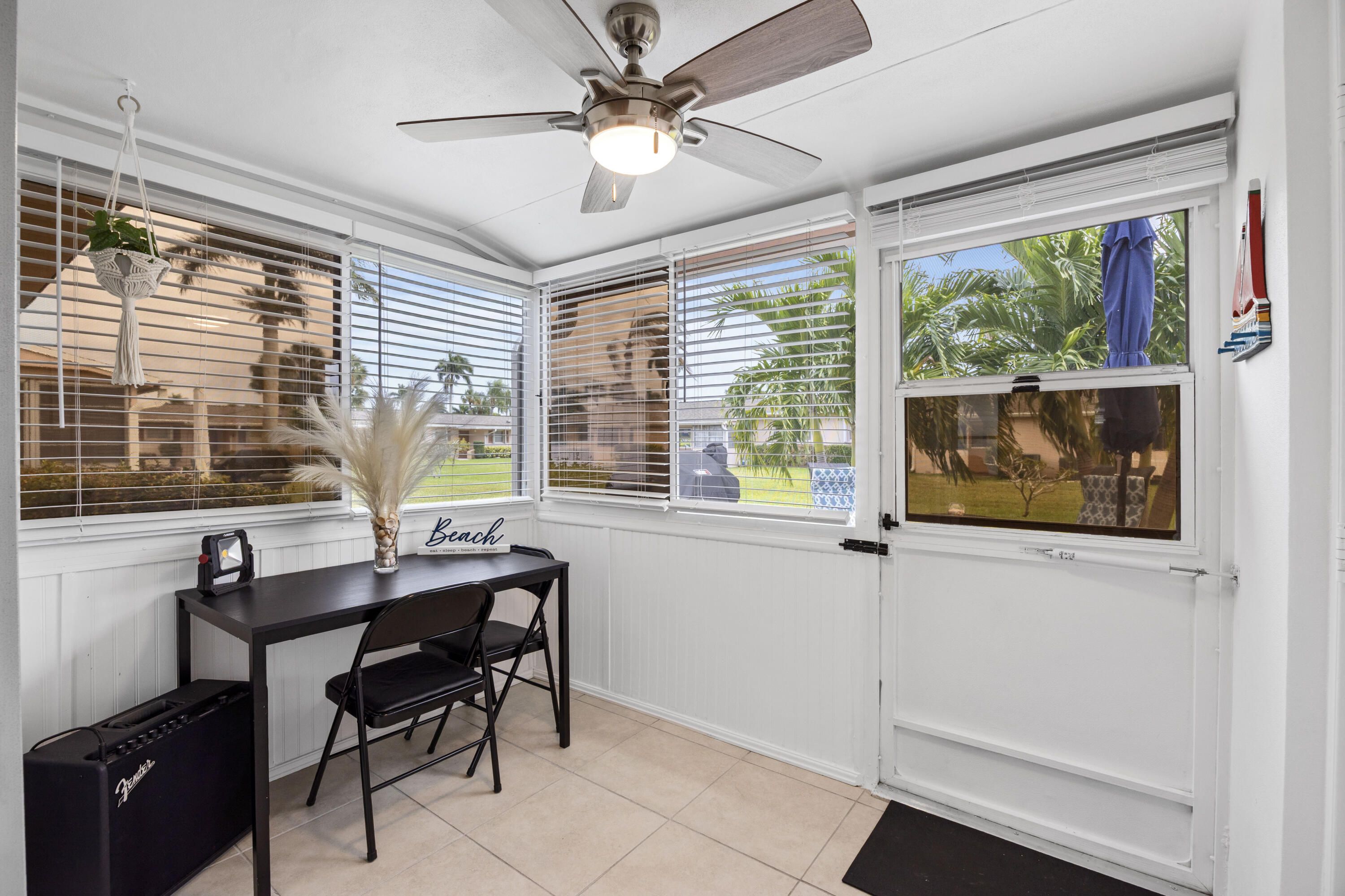Welcome to this exceptional, fully furnished, turnkey 1 bedroom 1 bath villa. Super clean and beautifully renovated with great attention to details. Decorated by owner-designer, this villa is ready to move-in. Updated kitchen with extended counters and additional storage. Totally renovated bathroom. Large white tile throughout for a clean modern feel, all new fans and light fixtures, all new windows and screens in the lanai, an enlarged terrace with pretty palm trees and a new electric panel. This gorgeous villa is located in the Dudley section of Cresthaven, an active 55+ community with a Clubhouse, pool, sauna, fitness, auditorium, shuffleboard, billiards and a workshop. Internet and water included in HOA dues.