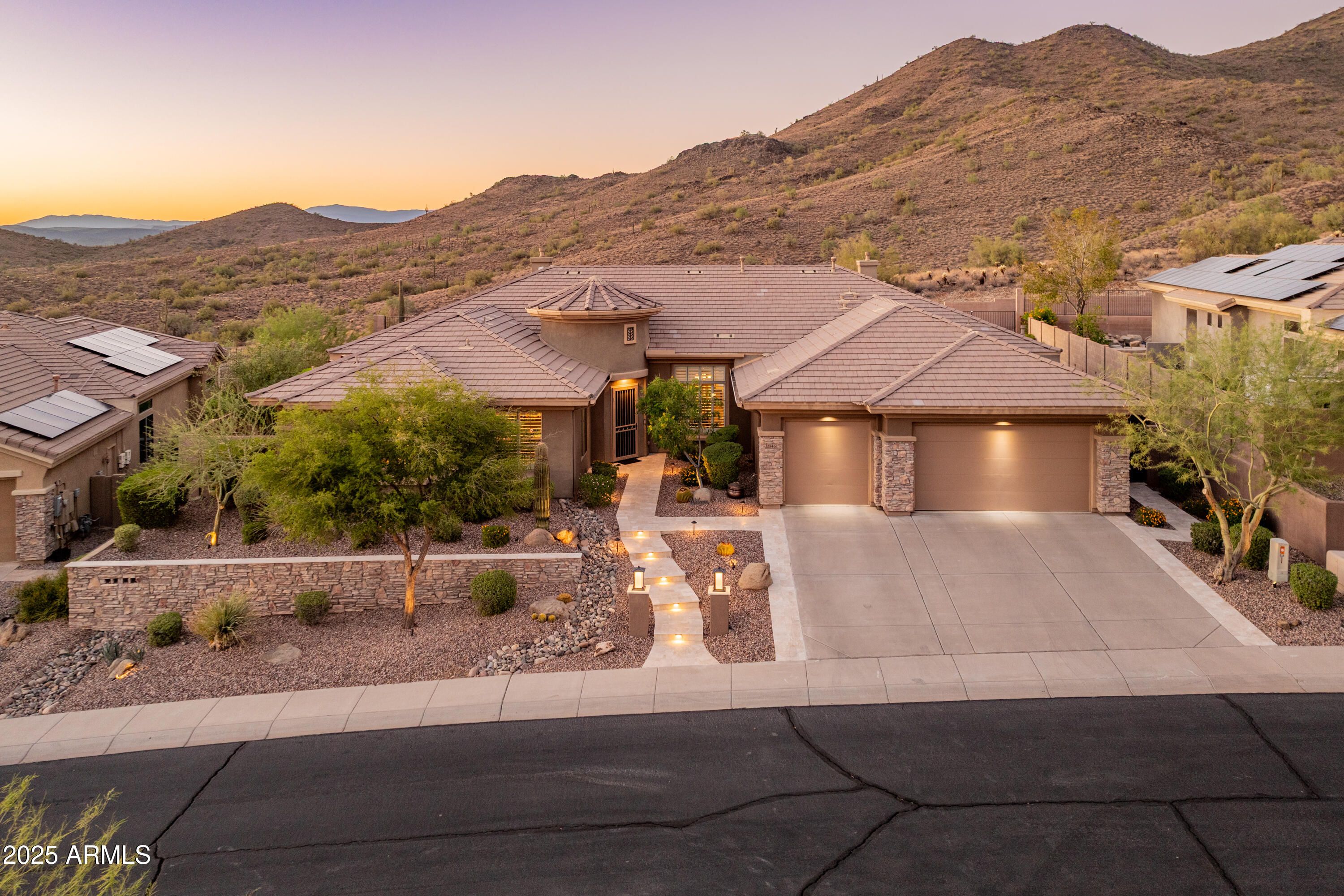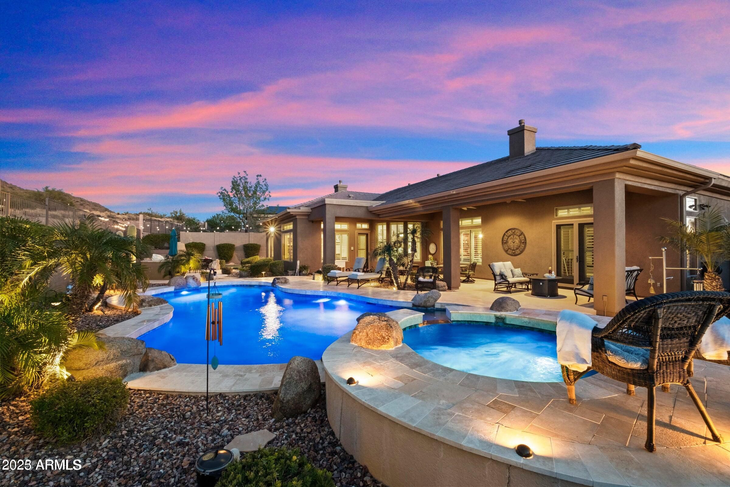 Welcome to the entertainer's dream home on one of Anthem Country Club's most desired streets, backing Daisy Mountain with permanent privacy and breathtaking views. Reduced for immediate sale. Location, Location, Location is everything. Always is and always will be. You'll enjoy unmatched convenience within the gates, just one minute from the Persimmon Clubhouse and first tee and five minutes from the Ironwood Clubhouse and first tee. Whether it's golf, dining, fitness, or social gatherings, this home puts you at the heart of it all. Upon arrival, the property greets you with the soft glow of pillars with integrated lighting and elegant travertine walkways that flow up the front steps and around the side of the home. This inviting path naturally leads you to the resort-style backyard oasis. The backyard is built for gatherings, featuring all-new travertine hardscaping, a custom outdoor kitchen with a wood-fired pizza oven, griddle, high-end grill, Traeger smoker, side burner, and built-in luxury appliances including dual-drawer refrigerator and freezer units. A fireplace, festive party lights, private putting green, and a dog run with a shade tree complete the entertainer's paradise. Inside, the kitchen has been upgraded with new appliances, highlighted by a GE Café French-door double oven. Additional updates include a new garbage disposal, refrigerator repair, reverse osmosis water system, and stylish new ceiling fans. The home also boasts stone and hardwood floors, a custom office, and a built-in entertainment center. Peace of mind comes with every detail: garage door openers with tune-up, fire sprinkler inspection and repair, Google security integrated with ADT, and all doors rekeyed to a single key. Anthem Country Club offers two championship golf courses, multiple clubhouses with dining and social spaces, fitness centers, pools, tennis, pickleball, and a thriving social calendar. With striking curb appeal, elegant travertine walkways, a chef's outdoor kitchen, and unmatched mountain views paired with unbeatable access to both clubhouses and golf courses this home is the ultimate setting for cooking, entertaining, and celebrating Arizona living.