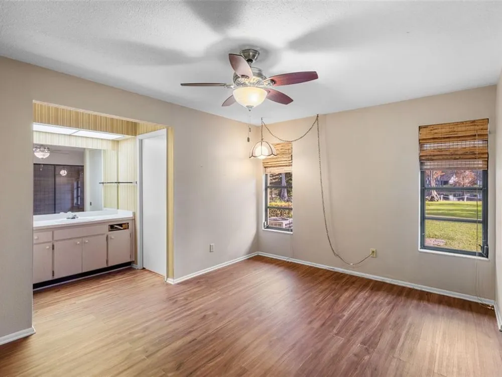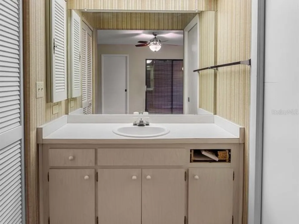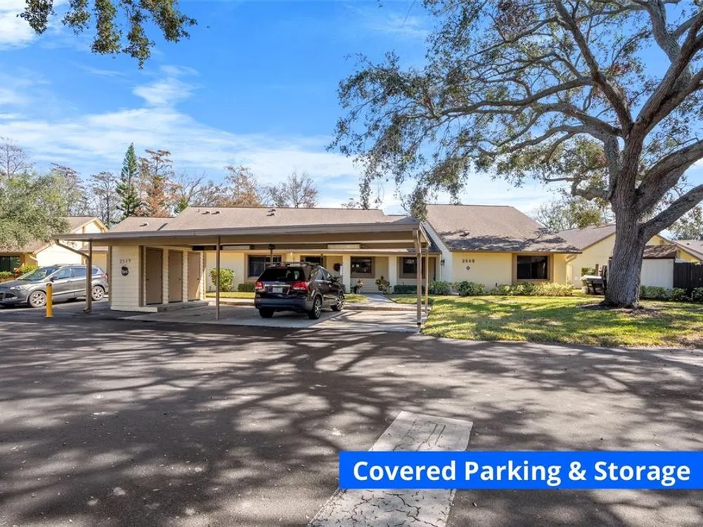 PRICE IMPROVEMENT! Welcome to Village on the Green! This 2-bedroom, 2-bathroom end unit offers a spacious layout featuring a walk-in closet, in-unit laundry, and a bright Florida room with serene pond views. Huge potential for updating and making it your own. Located in a vibrant 55+ community, you'll enjoy access to a lakeside pool, clubhouse, fitness center, library, and activity room, as well as organized events like exercise classes. The beautifully maintained landscaping, covered parking, and personal storage unit add extra convenience and charm. Don't miss out! Schedule your showing today!