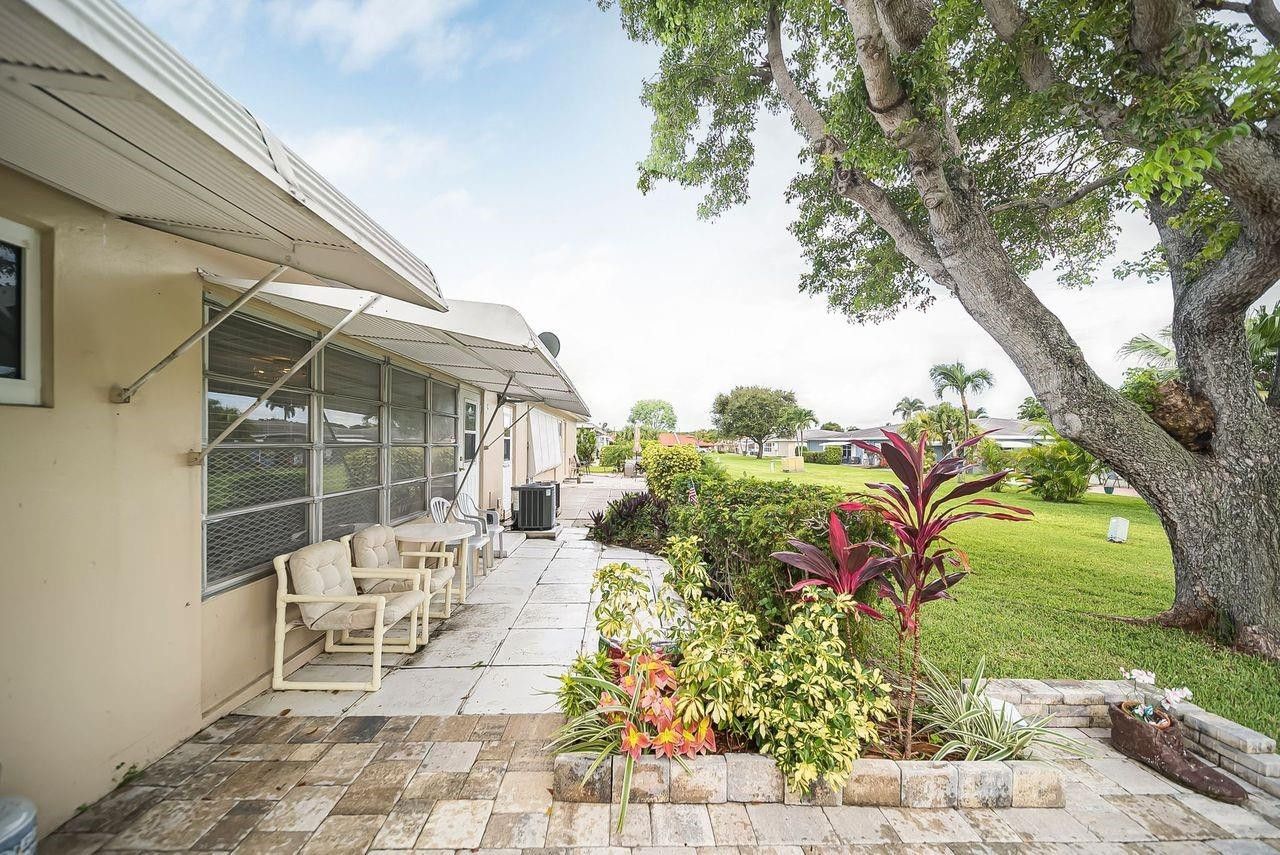 Welcome to the friendly 55+ community of High Point Court located less than a mile to the ocean & intracoastal and a short walk to shopping & dining. This 1 bd 1.5 bath villa has been recently remodeled in a neutral "beachy" vibe with fresh light paint, trendy new bathroom vanities, new remote controlled rattan lighting fixtures & fans, kitchen cove ceiling was removed, freshly painted white kitchen cabinets, professionally re-glazed tub & tile in master bath, & the most gorgeous waterproof luxury vinyl plank wood floors throughout! Enjoy the safety of impact windows and new A/C just over a year old. BRAND NEW ROOF installed Nov 2025! Coastal villa in move in condition comes with all the perks of living near the beach without the hefty price tag. On LBX- call /text agent - EZ to show