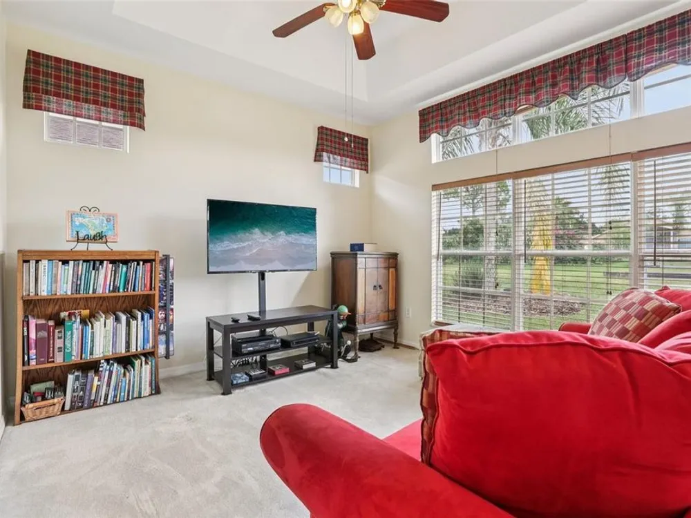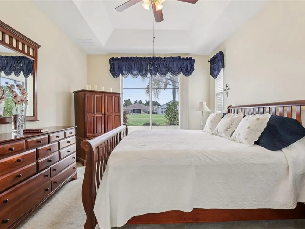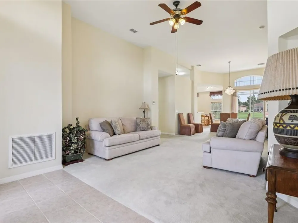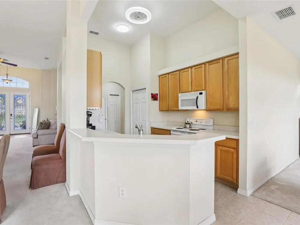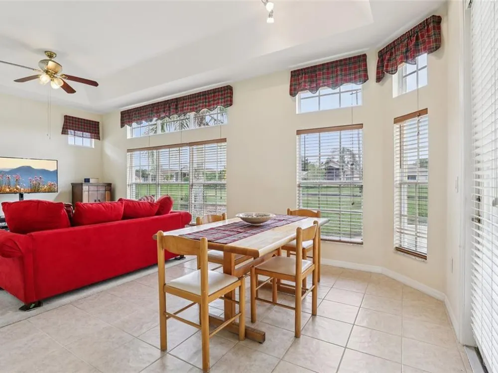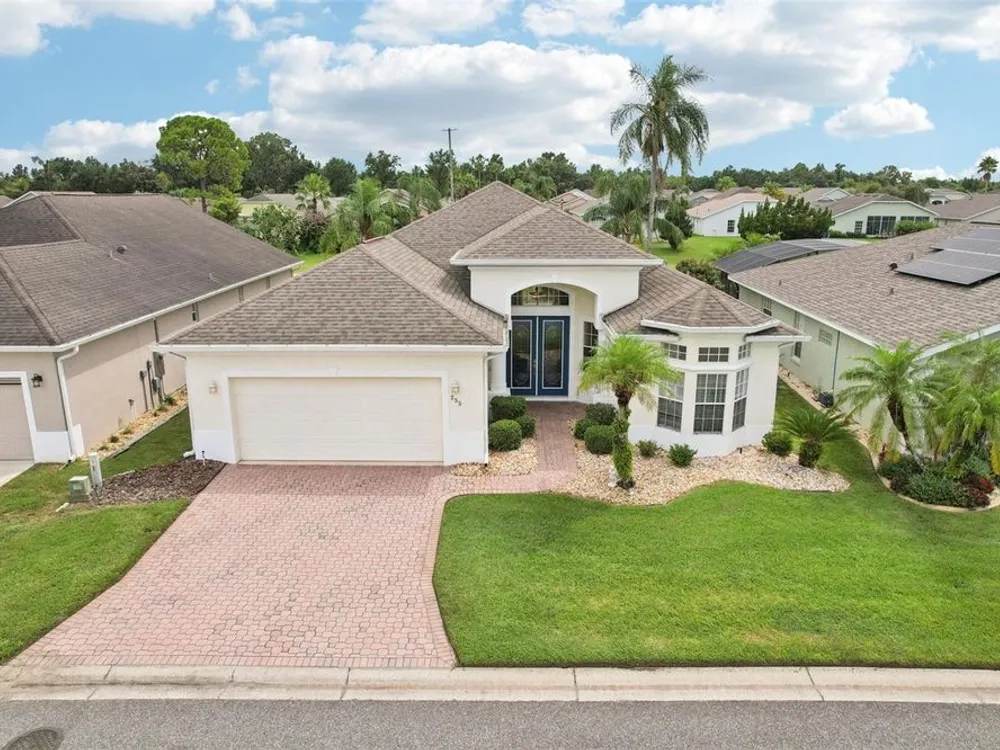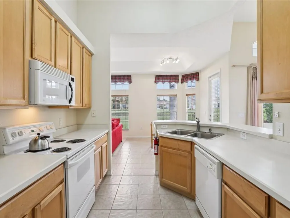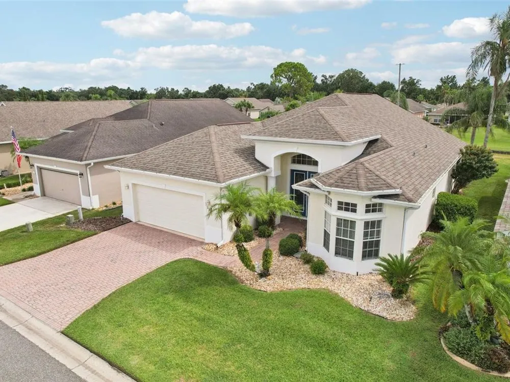 Under contract-accepting backup offers. Welcome to a very immacuately maintained home tucked within the highly desirable 55+ community of High Vista at Ridgewood Lakes in beautiful Davenport, Florida. Located in a secure, guard-gated neighborhood, this home offers the perfect blend of comfort, peace of mind, and Florida lifestyle living. This home is now priced and marketed properly, so don't miss your opportunity to be the new owner! From the moment you arrive, you’ll be charmed by the home's curb appeal, with its paved stone driveway and walkway leading to elegant double glass entry doors. Step inside to an open floor plan that invites you to relax, gather, and enjoy. The spacious main living areas feature soaring ceilings and an abundance of natural light, flowing effortlessly out to a large, rear screened lanai the ideal spot for morning coffee, afternoon reading, or evening sunsets. Just off the main living space, a welcoming family room and formal dining area create a perfect setting for entertaining. The adjacent kitchen is both functional and inviting, with classic maple cabinetry, convenient roll-out shelves, a pantry, and crisp white appliances, everything you need to feel right at home. The private primary suite offers a quiet retreat, complete with its own access to the lanai, dual closets, and a beautifully appointed ensuite bath featuring a jetted soaking tub, separate shower with bench, dual sinks, and a private water closet. The thoughtful split-bedroom layout includes two guest rooms that share a full bath, as well as a versatile fourth bedroom or office near the front of the home ideal for guests, hobbies, or remote work, and bathed in natural light from large bay windows. Additional features include a full laundry room with side-by-side washer and dryer, a two-car garage with utility sink, an irrigation system, and ceiling fans throughout the home for added comfort. Living in High Vista is about more than just a beautiful home, it’s about community. The HOA offers access to a well-appointed clubhouse with pool and spa, fitness center, tennis, lawn cutting, internet and cable.
