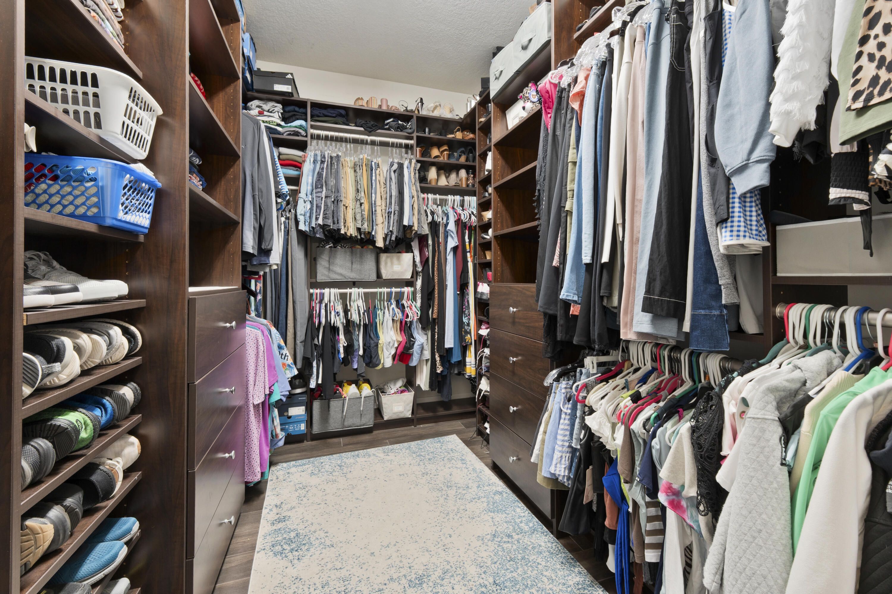 - Entrance Foyer, High Ceilings, Pantry, Walk-In Closet(s), Closet Cabinetry, Pull Down Attic Stairs, Separate/Formal Dining Room, Snack Bar, Dual Sinks, Main Level Primary, Separate Shower