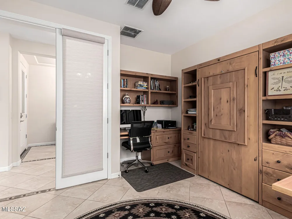 Step into the easy pace of Quail Creek living in this inviting Cortez model. Natural light fills the home, highlighting comfortable spaces and an easy flow with open views of the private arroyo. The living area is perfect for casual get-togethers, while the covered patio is ideal for enjoying beautiful evenings. At the heart of the home, the kitchen with its large island is perfect for hosting friends or savoring a quiet cup of coffee. The primary suite offers a peaceful retreat at day's end, and the easy-care yard gives you more time for the things you love. Guests will feel right at home with a private en suite bedroom, while the den with twin Murphy beds adds extra flexibility. Wait until you see the garage space with extra room inside, including golf cart garage.