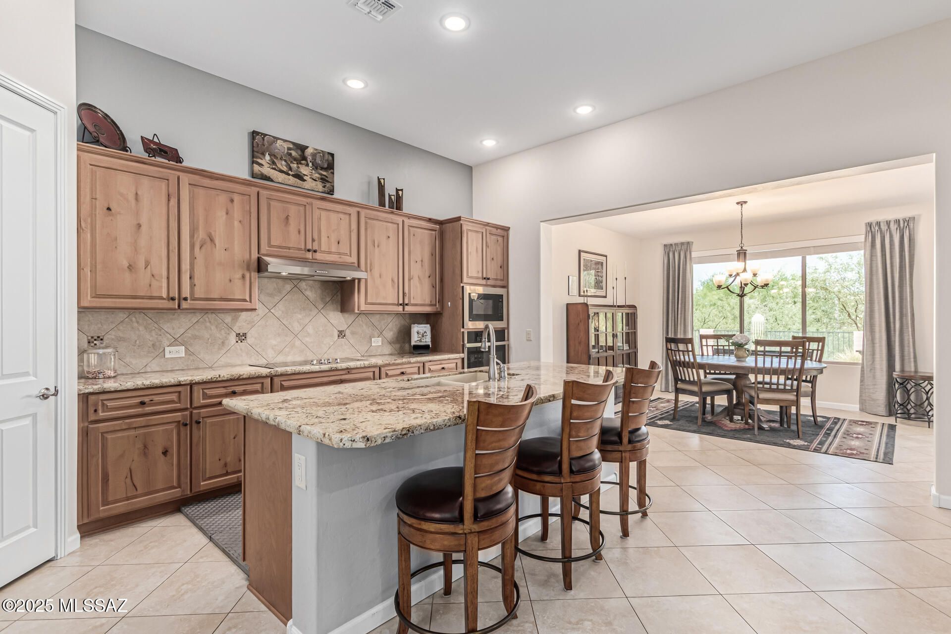 Step into the easy pace of Quail Creek living in this inviting Cortez model. Natural light fills the home, highlighting comfortable spaces and an easy flow with open views of the private arroyo. The living area is perfect for casual get-togethers, while the covered patio is ideal for enjoying beautiful evenings. At the heart of the home, the kitchen with its large island is perfect for hosting friends or savoring a quiet cup of coffee. The primary suite offers a peaceful retreat at day's end, and the easy-care yard gives you more time for the things you love. Guests will feel right at home with a private en suite bedroom, while the den with twin Murphy beds adds extra flexibility. Wait until you see the garage space with extra room inside, including golf cart garage.