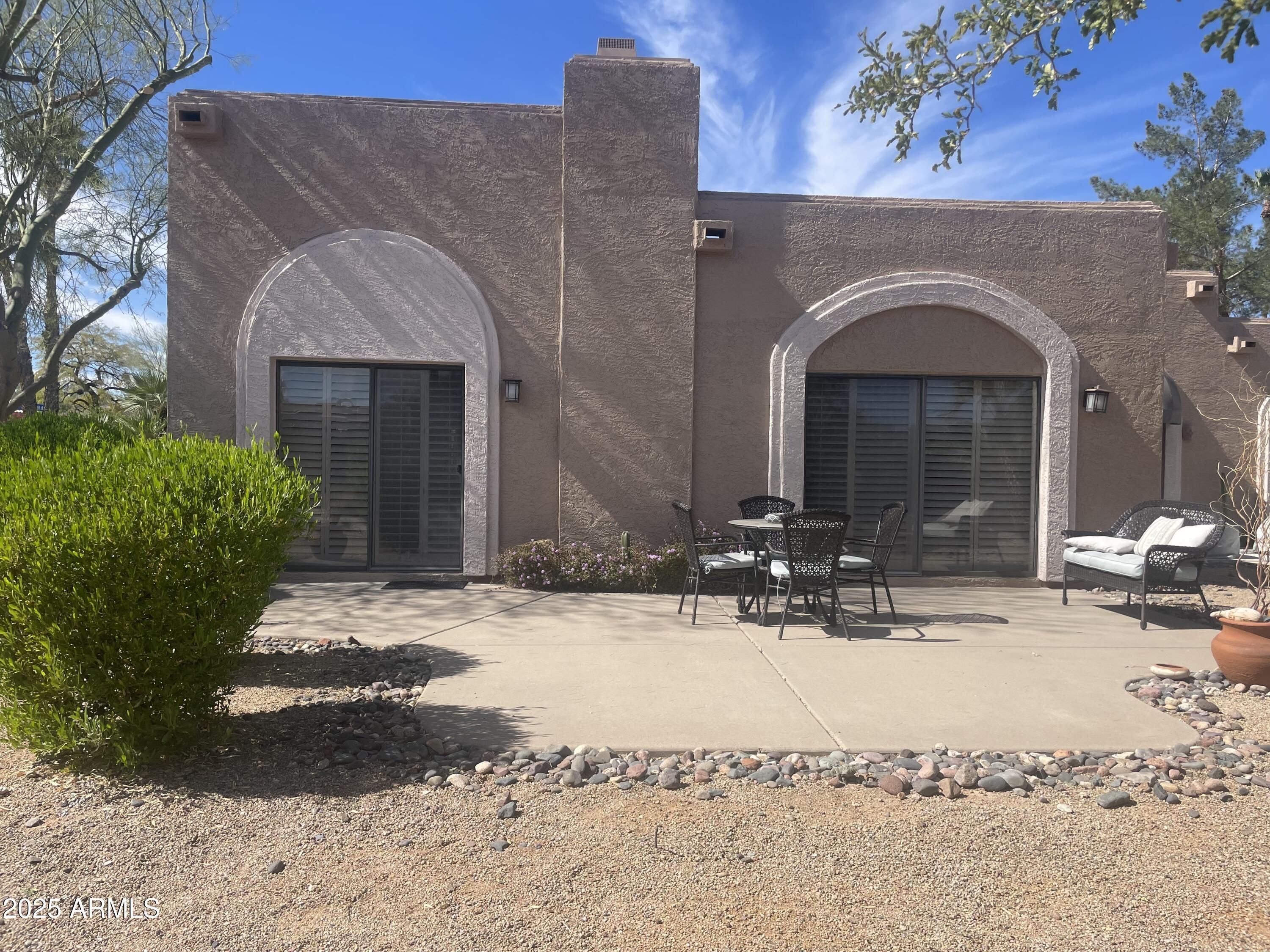 Fully furnished and move-in ready, this cozy townhome is ideal for full-time living, seasonal use, or as a rental investment. Offered turnkey, it comes complete with everything you need. The great room features soaring ceilings and a sliding glass door that opens to a private patio—perfect for enjoying peaceful eastern mountain views. The two-car garage includes built-in storage cabinets for added convenience. Located just a short distance from the Rio Verde Country Club, community center, church, and post office. An excellent investment opportunity, as rentals in Rio Verde are limited.
