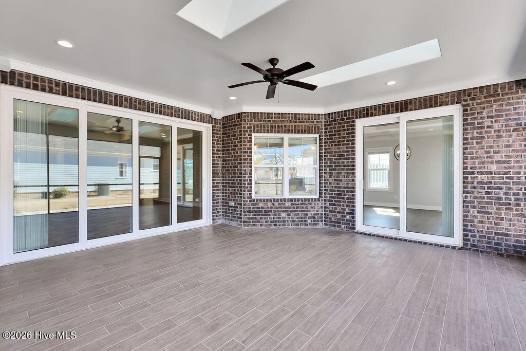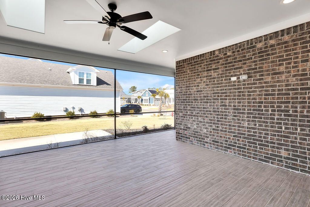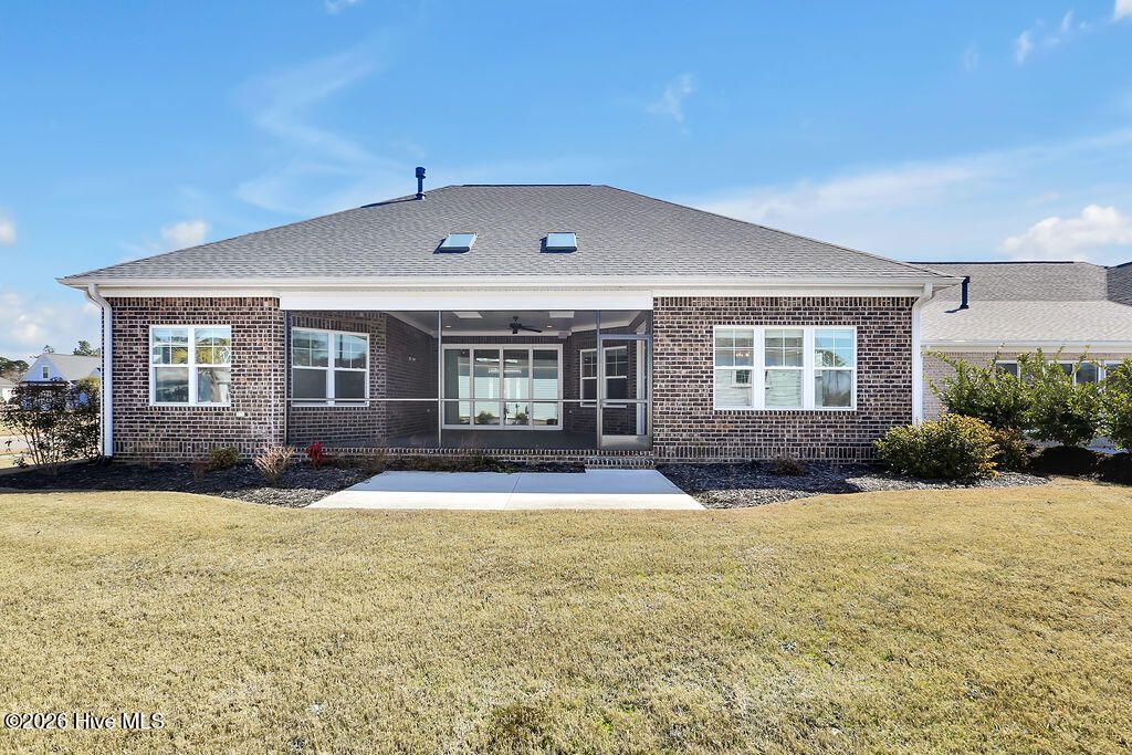 Live the Carolina dream in this all-brick Trusst home perfectly situated on a corner lot with circle driveway. Only 3 years old, this custom residence boasts hardwood floors, coffered & lighted tray ceilings, crown molding and beautiful trim work. From the covered front porch, enter the foyer and admire the executive office with French doors. Continue into the open plan where you'll find a gas fireplace, custom built-ins, ceiling speakers, a gourmet kitchen with gas stovetop, Kitchenaid appliances, granite countertops, subway tile backsplash & under cabinet lighting. Large center island has plenty of room for bar seating and flows into the formal dining room with glass door to the lanai. The spacious tiled lanai has telescoping glass doors and is perfect for outdoor entertaining + star gazing through the skylights. Retire to the master suite featuring a lighted tray ceiling and en suite with two closets, upgraded wooden shelving, a private bath including dual vanities, zero-entry tiled shower, & water closet. Two additional bedrooms downstairs with a full bathroom, plus a powder room ensure privacy & convenience for all. The upper level bonus room (4th bedroom) has a full bath perfect for a guest suite plus there's tremendous storage in the walk in attic with tech shield radiant barrier that regulates the temperature. Enjoy the benefit of low utility bills from the solar panels, and irrigation included in HOA dues. A two car garage with 220 outlet plus home is wired for a generator further adds to this special design. Enjoy access to Compass Pointe's unparalleled amenities: Gated entry, Grand Lanai, indoor + outdoor pools, wellness center, tennis + pickleball courts, trails, kayaking, lazy river, dog park and tailored social experiences. Private golf club membership available includes additional private pool, fitness & dining options. So many activities to enjoy in this golf cart friendly resort neighborhood. Your dream lifestyle awaits in Compass Pointe!
