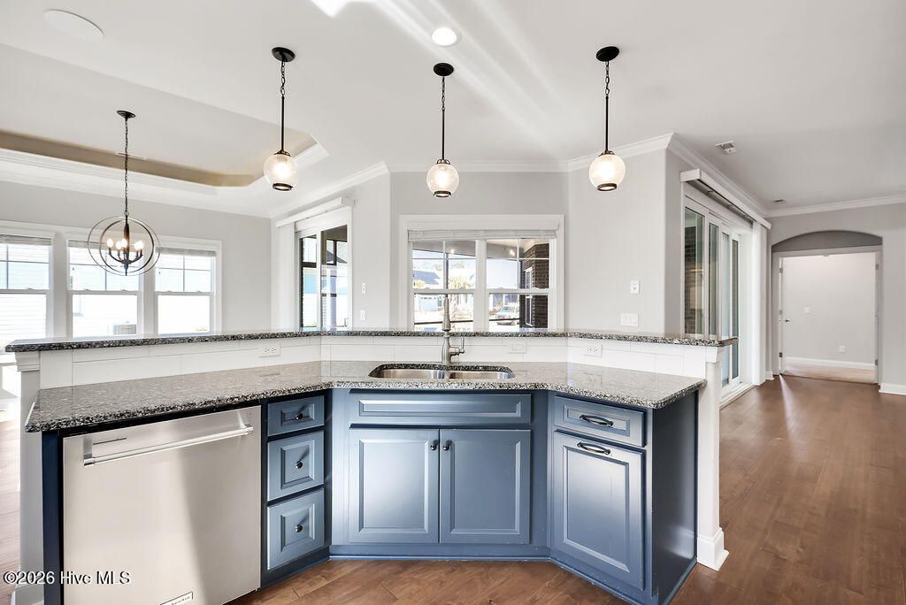 - Sound System, Master Downstairs, Walk-In Closet(s), Tray Ceiling(s), High Ceilings, Entrance Foyer, Generator Plug, Bookcases, Kitchen Island, Ceiling Fan(s), Pantry, Walk-In Shower, Blinds