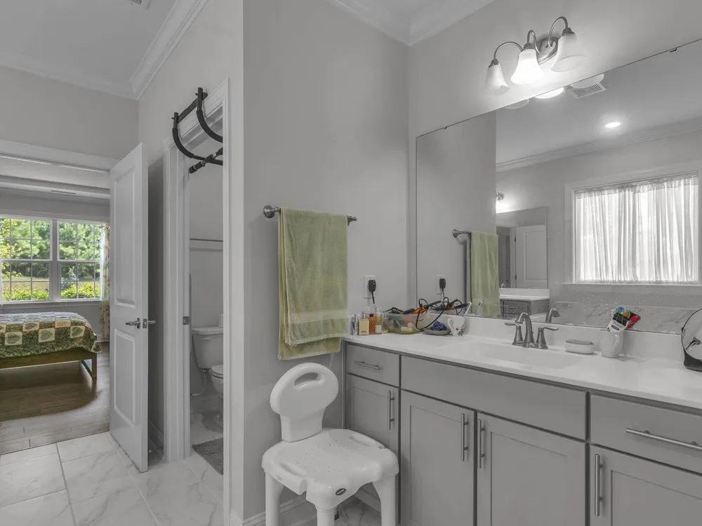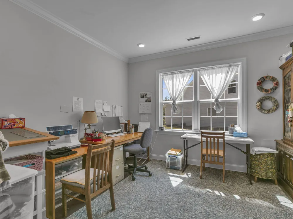 Beautiful 3-Bedroom Home with Office, Bonus, and Private Backyard in 55+ active adult community! Welcome to this beautifully maintained home offering a thoughtful floor plan designed for comfort, convenience, and low-maintenance living. Step inside through the welcoming foyer into a thoughtfully designed floor plan. Off the entry, you'll find a bright guest bedroom with access to a full bath, and a convenient study/home office—perfect for work or hobbies. The foyer opens to the heart of the home, where the spacious dining area, chef's kitchen, and family room with cozy fireplace flow seamlessly together. The kitchen is equipped with a large island, gas cooktop, wall oven, microwave, and walk-in pantry, making it ideal for both everyday living and entertaining. The primary suite offers a private retreat with a spa-like bath and generous closet space. A glass-enclosed patio extends the living space year-round and leads to an outdoor patio overlooking the private backyard. Additional main-level highlights include a mudroom, laundry room and a two-car garage for added convenience. Upstairs, enjoy the expansive bonus room, perfect for recreation or media, along with a third bedroom, full bath, and two large walk-in attic storage areas. This home combines comfort, function, and style in one of Cary's most desirable locations—just minutes from RTP, RDU, shopping, and dining.
