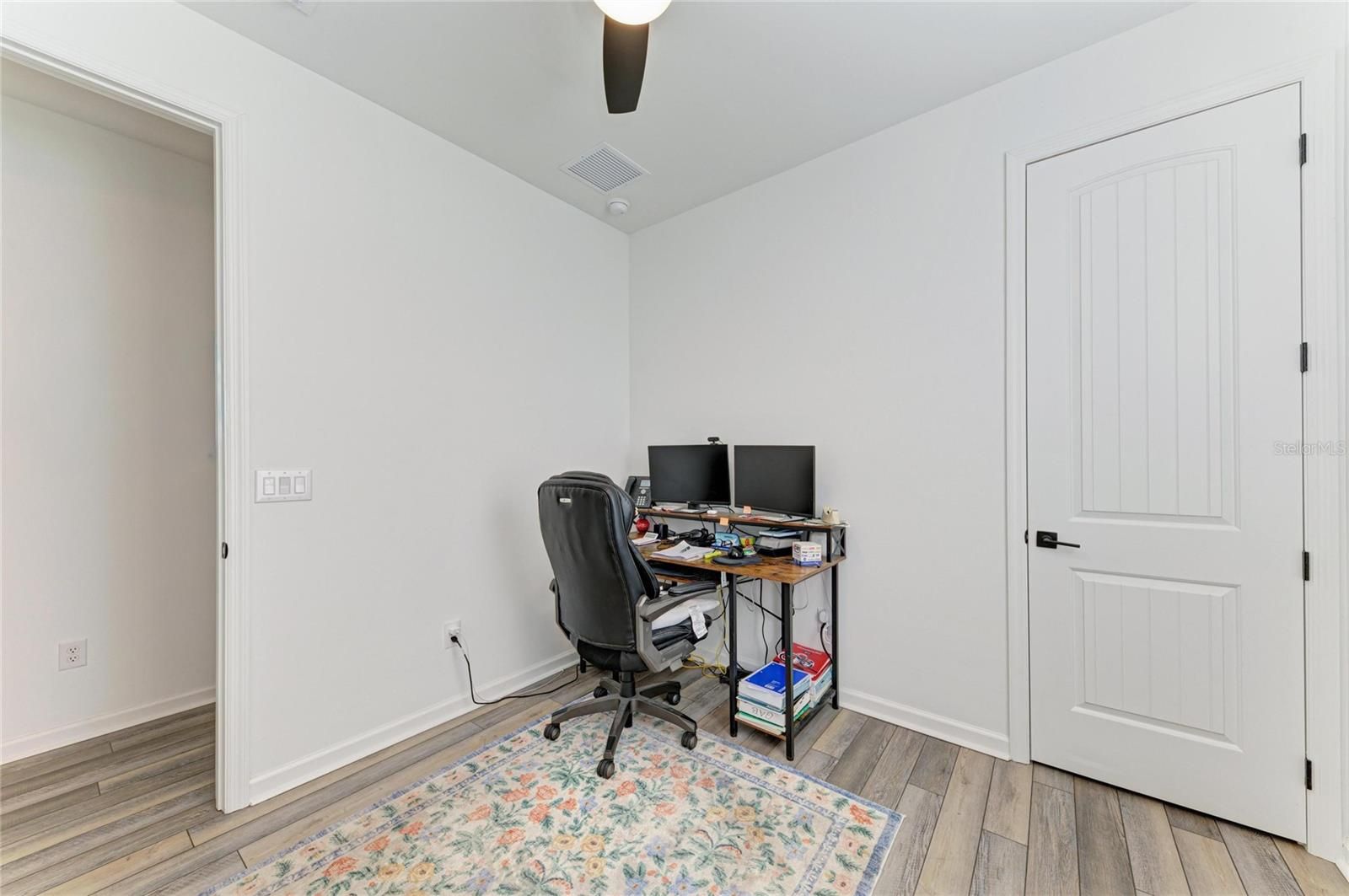 - Ceiling Fan(s), Eat-in Kitchen, High Ceilings, In-Wall Pest Control, Living/Dining Room, Open Floorplan, Solid Surface Counters, Thermostat, Walk-In Closet(s), Window Treatments