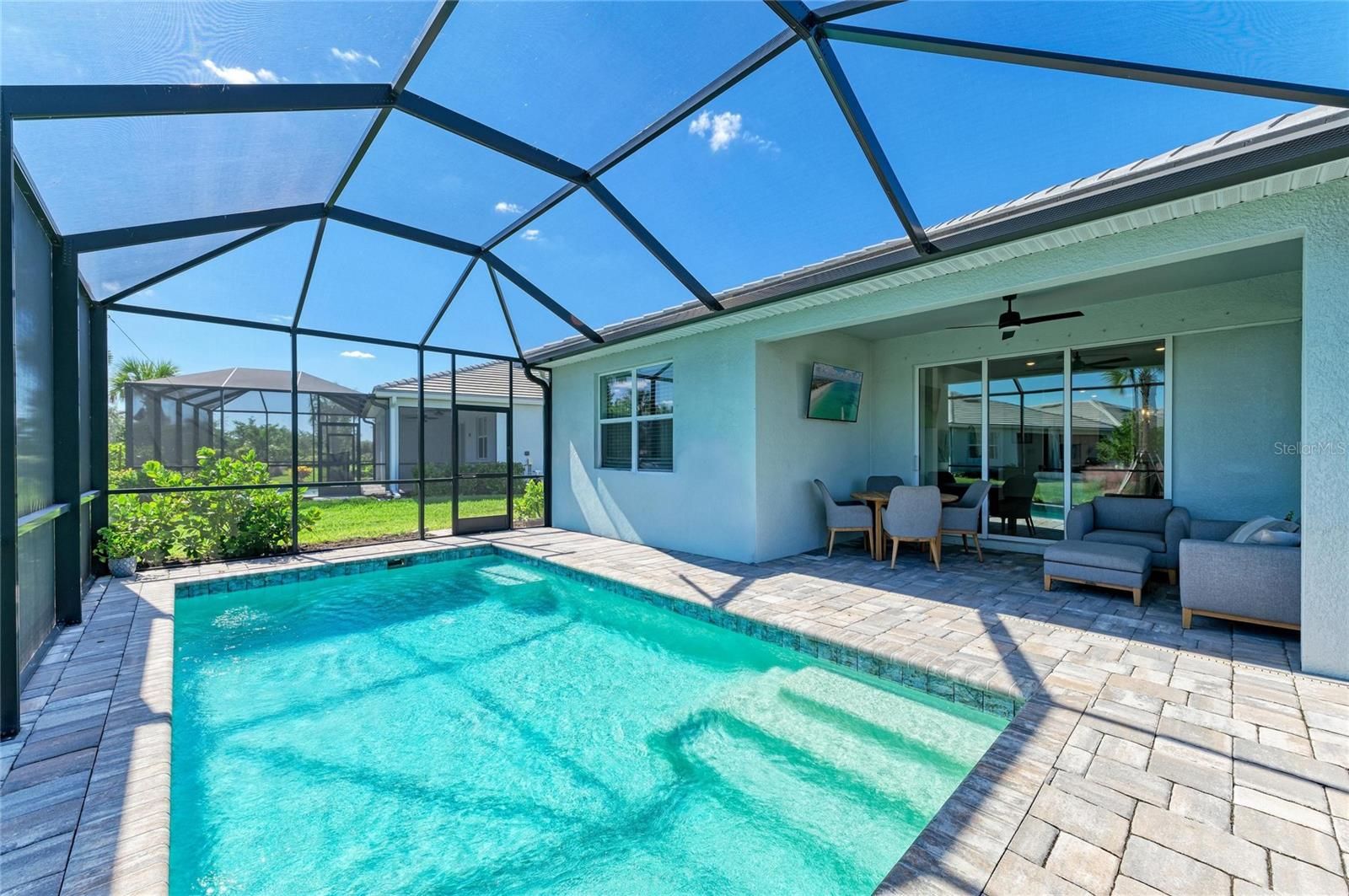 Stunning Hallmark with Pool in BEACHWALK! Welcome to paradise in one of the most desirable and active communities on the Gulf Coast—just minutes by bike, golf cart, or car to the BEACH! This vibrant neighborhood offers resort-style living at its finest, featuring a tiki bar & grill, coffee bar, pickleball and tennis courts, bocce, fitness center, events center, and an incredible resort-style pool. A fine dining restaurant is coming soon—you may never want to leave home! Enjoy the best of both worlds with breathtaking LAKE and PRESERVE views that create a peaceful, private setting. The lovely galley-style kitchen features upgraded cabinetry, quartz countertops, and a designer backsplash. Luxury Vinyl Plank flows throughout the home, adding warmth and elegance. Eight-foot interior doorways and volume ceilings. The open-concept layout connects the kitchen, living, and dining areas—light, bright, and perfect for entertaining. Large sliding doors draw your eye to the sparkling pool and serene view beyond. The spacious primary suite is tucked at the back of the home and includes a dual-sink vanity, walk-in shower, private water closet, and large walk-in closet. Two guest bedrooms are located on the opposite side—one ideal as a den or office (with a small walk-in closet). A full guest bath with a tub/shower combination completes the layout. Outdoor amenities also include a lakeside boardwalk with a pier and gazebo, fire pits, a dog park, and a community garden. Walking trails, both paved and unpaved, extend throughout the community and into the nearby Lemon Bay Park & Environmental Center.