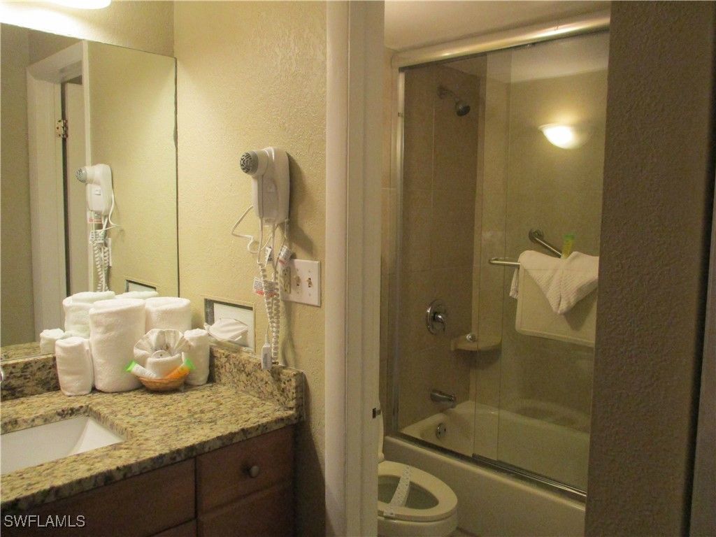 Location, Location, Location...Investment or Getaway... This lovely efficiency is located on the 1st floor just steps from the pool and Harold's Place restaurant. Gulfcoast Inn is located west of 41 just North of the Coastland mall. This Condo/Motel has 3 restaurants, a large heated Pool, common laundry and 1 mile from the beach. The room is nicely furnished, wood grain porcelain tile flooring, equipped with 2 queen beds, table and chairs for 2 to dine, recliner, TV, kitchenette, Bathroom with tub/shower combination, maple cabinetry with plenty of storage and a safe.