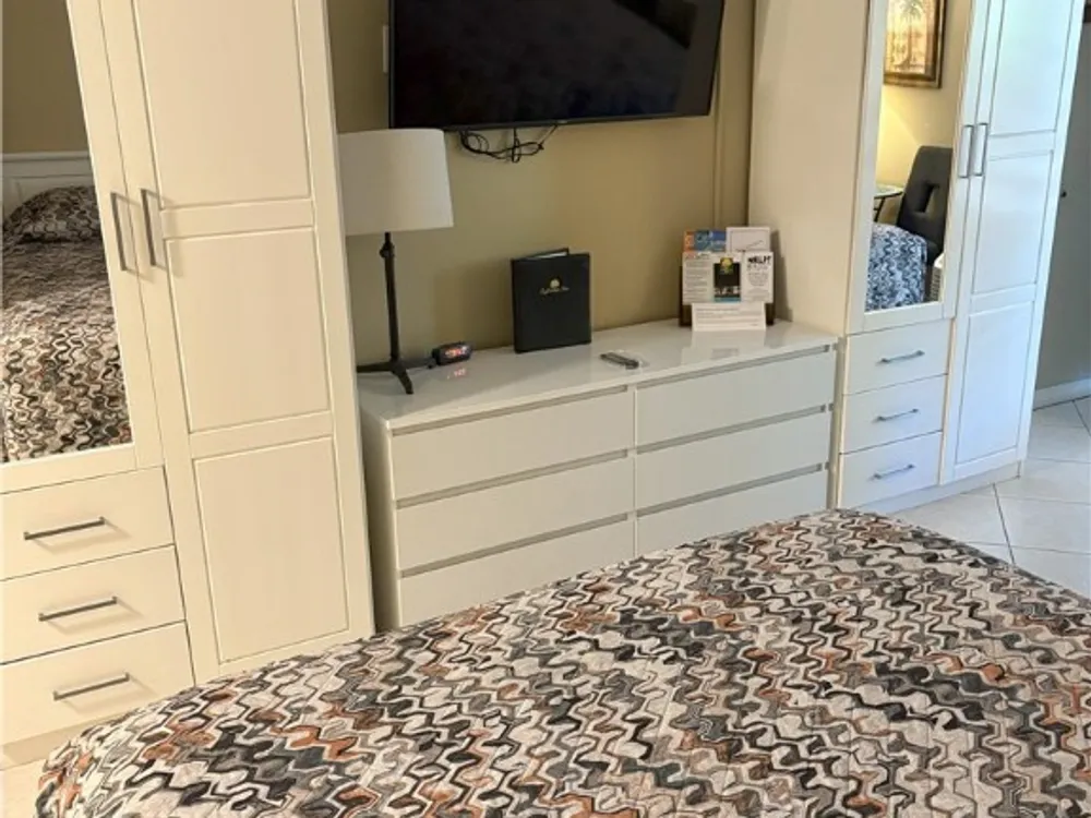 THE BEST UNIT HERE! Best New Price! END UNIT. Excellent location west of US41 in the highly desirable Moorings area of Naples. This light and bright condo is available as a great affordable get-a-way or as an investment property. Features Plantation Shutters, remodeled bath/shower. Popcorn ceilings removed. Convenient FIRST FLOOR end unit with a landscaped view unit facies the Pool and Bar/Restaurant…only 1 Mile to the white sandy beaches of the Gulf of AMERICA and just minutes to Old Naples with its many shopping, dining and entertainment options. Money-making Condo/Hotel unit offers everything you need to enjoy paradise as an investment property, with or without tenants. No minimum or maximum stay. Just pack your toothbrush and bathing suit. This very nice unit has all Tile flooring, new TV along with an updated Kitchen and Bath which includes a new Refrigerator and Microwave. There's also a new built-in wardrobe as well as new cabinets, sink, hardware and granite counters. It is tastefully decorated and sold turnkey along 2 QUEEN BEDS. You can enjoy the resort-style pool, great restaurants on-site including the legendary poolside Harold's Place (BEST BURGER IN NAPLES!) Fujyiama Steak and Seafood House and Vesuvio Pizza and Bar. Convenient laundry facilities on the property. On-site Property Management is also available. You can manage your own Rentals or place in the Rental Pool. ALL UTILITIES ARE INCLUDED IN MONTLY FEE INCLUDING CABLE & INTERNET