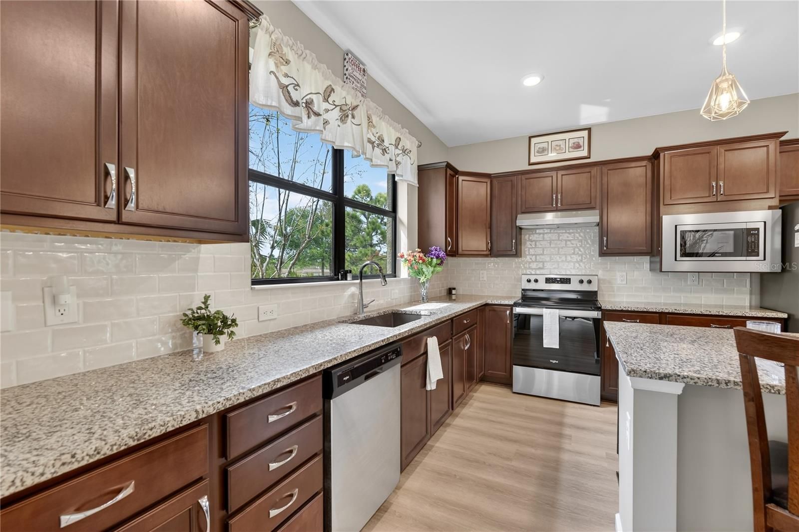 Welcome to 2555 Brassica Dr. in the highly sought-after 55+ gated community of Del Webb Cypress Falls at The Woodlands. From the moment you arrive, you’ll appreciate the home’s excellent curb appeal featuring mature landscaping, decorative curbing, and a recently power washer driveway and walkway. Step inside to discover new luxury vinyl flooring and a thoughtfully designed layout. Just off the entry is a versatile flex room with French doors, perfect for a home office, den, or hobby space. Also located at the front of the home is a comfortable guest bedroom and full guest bath, providing privacy and convenience for visiting family and friends. The home opens to a bright open-concept living area designed for both everyday living and entertaining. The spacious living and dining areas flow seamlessly into the kitchen, which features beautiful mocha cabinetry with pull-out drawers, granite countertops, a Silgranit sink, and an upgraded appliance package that will delight any home chef. Just off the kitchen is a sunroom, offering additional living space ideal for reading, enjoying your morning coffee, or simply relaxing. Beyond the sunroom is a generous lanai, the perfect spot to unwind, watch the birds, or entertain guests while enjoying Florida’s beautiful weather. The primary suite offers a spacious bedroom and a well-appointed bath with dual sinks, an executive-height vanity with granite countertops, and a large walk-in shower. The walk-in closet is conveniently located just off the bath area. Additional highlights include a two-car garage with epoxy floors and ample storage space, as well as a well-placed laundry room located just off the main living area. Living in Cypress Falls means enjoying resort-style amenities, including a clubhouse, resort-style pool, resistance pool, hot tub, fitness center, pickleball and tennis courts, bocce ball, horseshoes, and billiards. With a full-time activities director and on-site manager, residents enjoy a vibrant social calendar filled with clubs, events, and community gatherings. Come experience the beauty, comfort, and active lifestyle at Cypress Falls —schedule your private showing today!