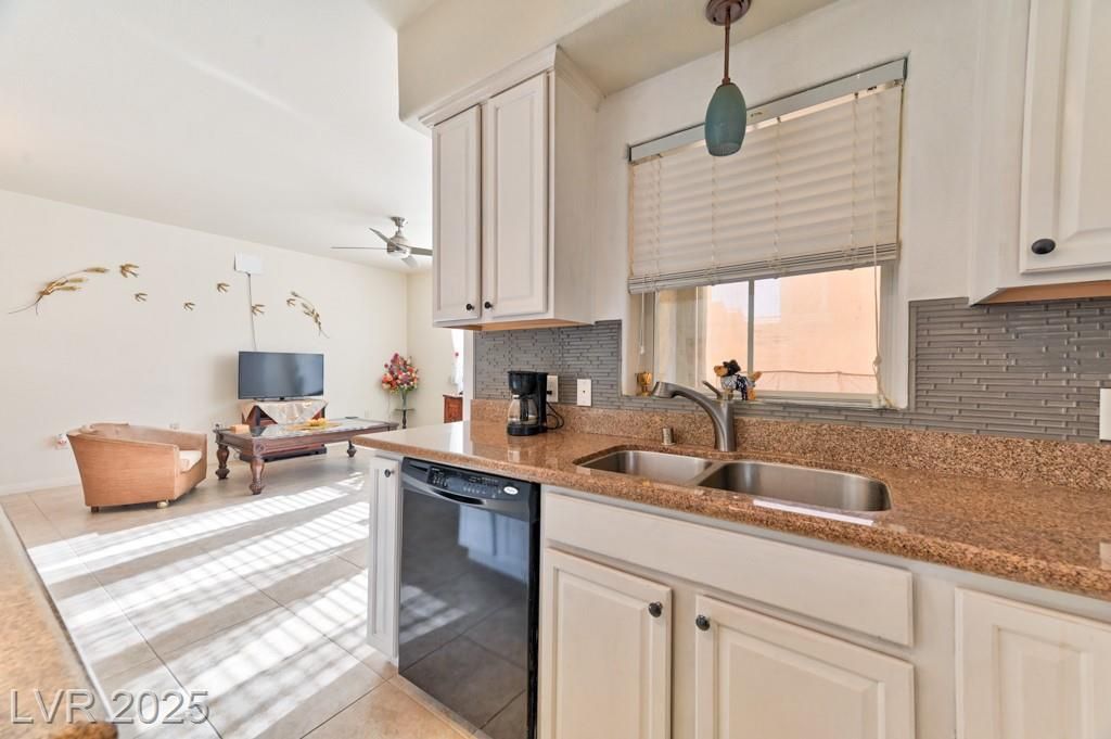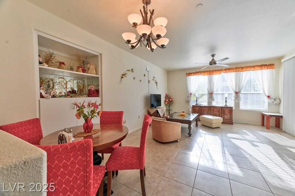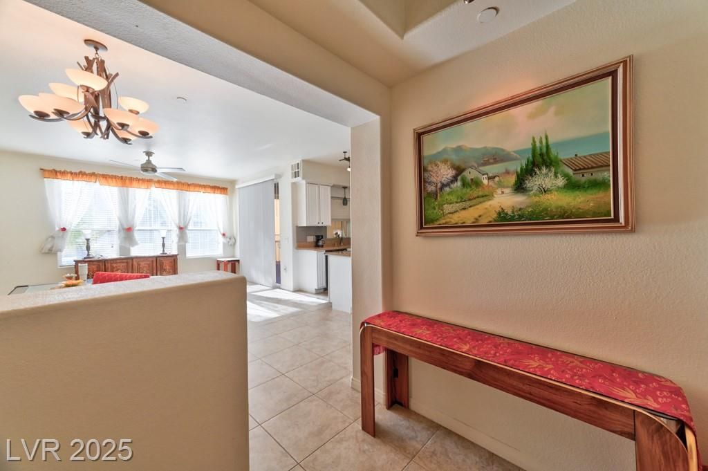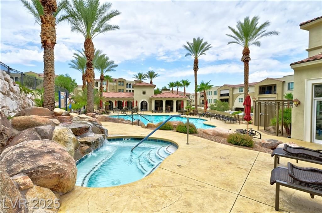 Welcome to this amazing 55+ condo in a secure, gated Anthem community in Henderson! This 2-bedroom, 2-bathroom home spans 1,333 sq. ft., offering modern comfort and elegance. The kitchen is a chef's dream with granite countertops, wall mounted microwave, a 5-burner cooktop, and a stunning tile backsplash. The private balcony provides serene mountain views, while the living areas are filled with natural light from ample windows. Tile floors, ceiling fans throughout, and a laundry room with storage and a sink add to the convenience. Additional features include an attached garage and community amenities such as a pool, spa, clubhouse, gym, EV charging stations, and guest parking. Enjoy secure building entry with personalized gate codes and elevator access. Schedule your tour today to see all this home and community have to offer!