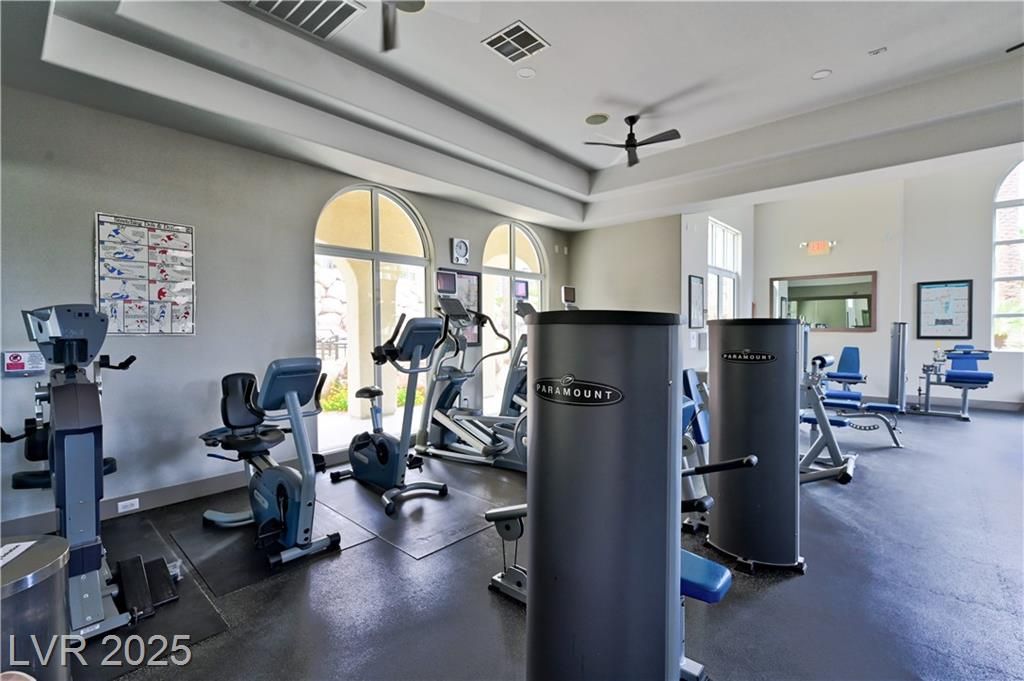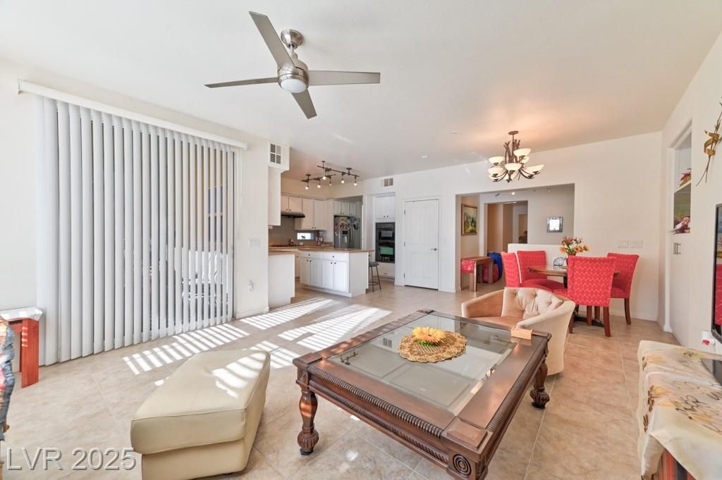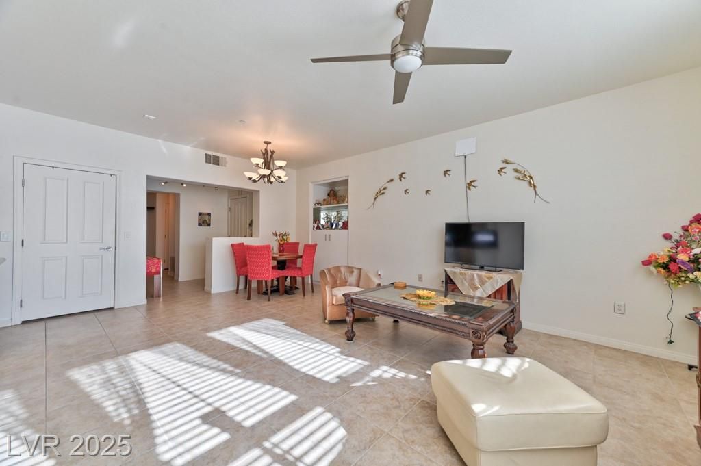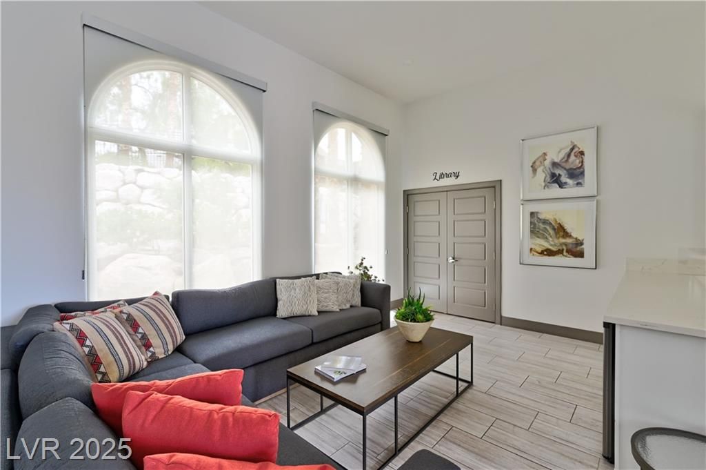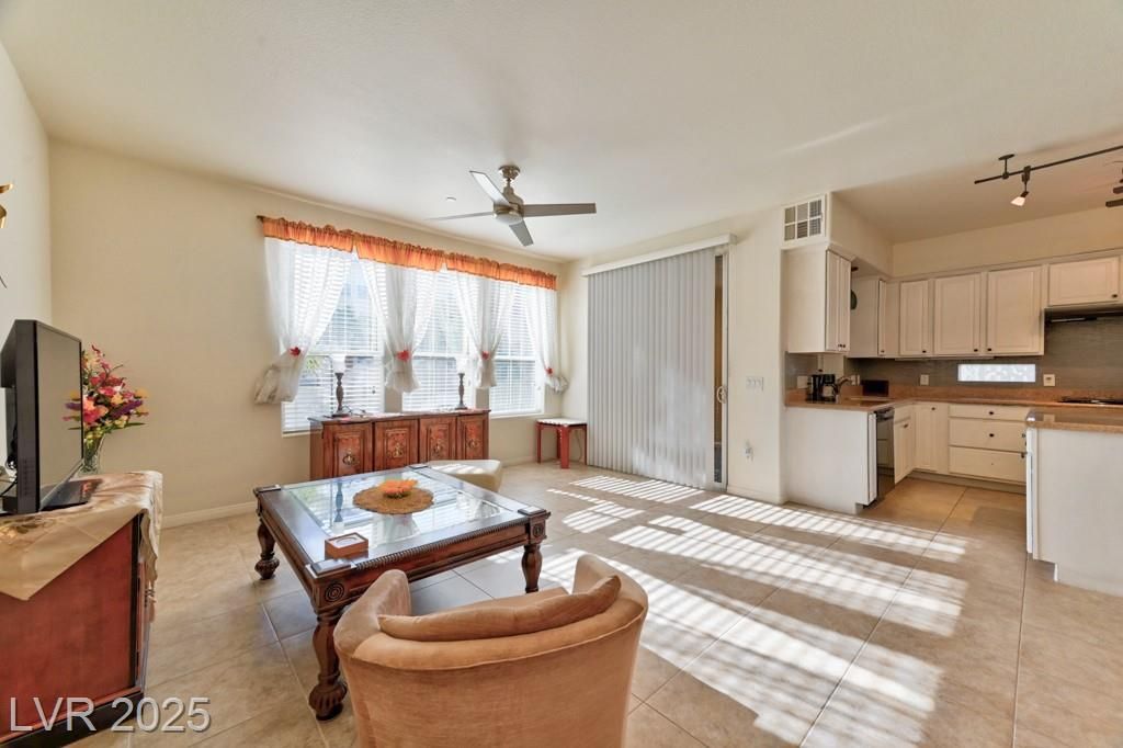 Welcome to this amazing 55+ condo in a secure, gated Anthem community in Henderson! This 2-bedroom, 2-bathroom home spans 1,333 sq. ft., offering modern comfort and elegance. The kitchen is a chef's dream with granite countertops, wall mounted microwave, a 5-burner cooktop, and a stunning tile backsplash. The private balcony provides serene mountain views, while the living areas are filled with natural light from ample windows. Tile floors, ceiling fans throughout, and a laundry room with storage and a sink add to the convenience. Additional features include an attached garage and community amenities such as a pool, spa, clubhouse, gym, EV charging stations, and guest parking. Enjoy secure building entry with personalized gate codes and elevator access. Schedule your tour today to see all this home and community have to offer!