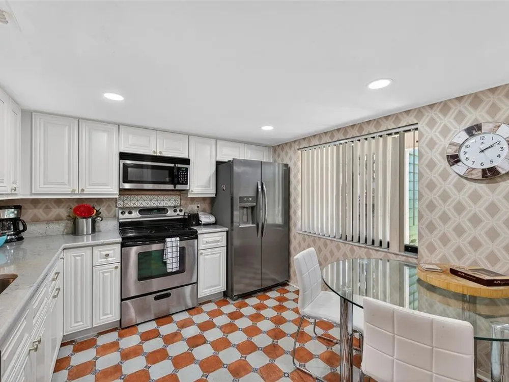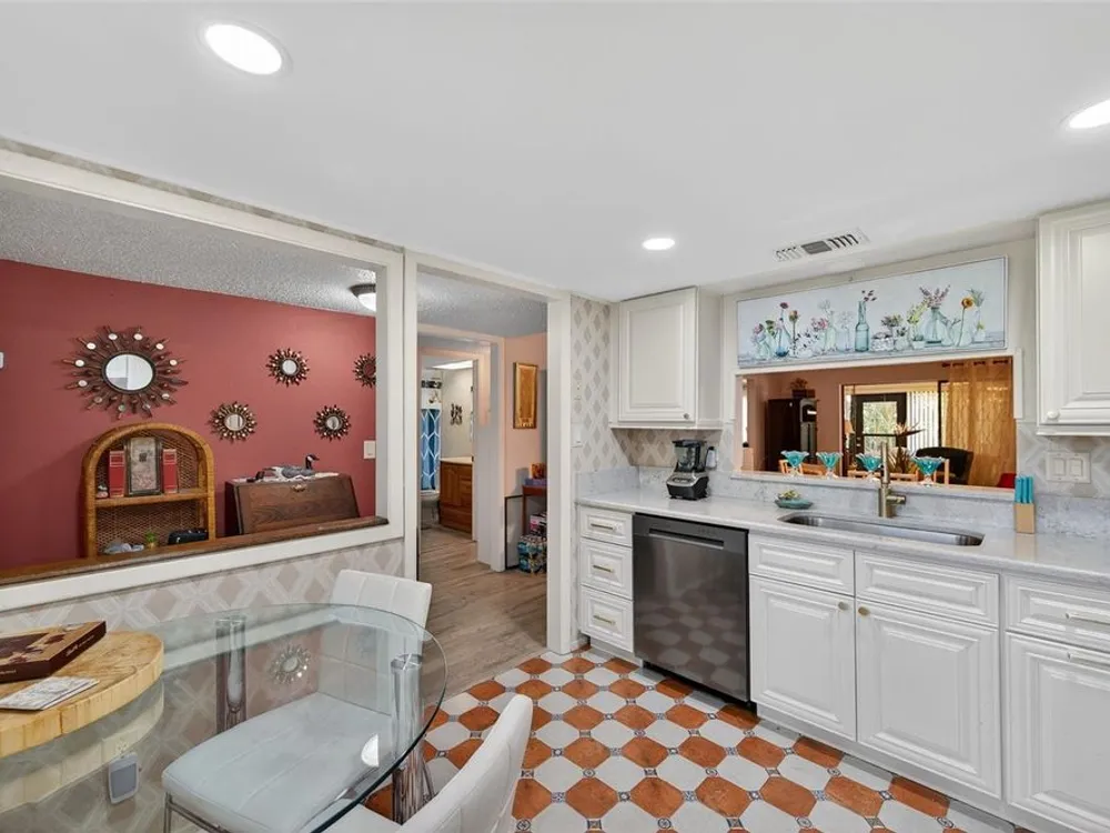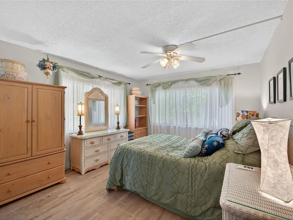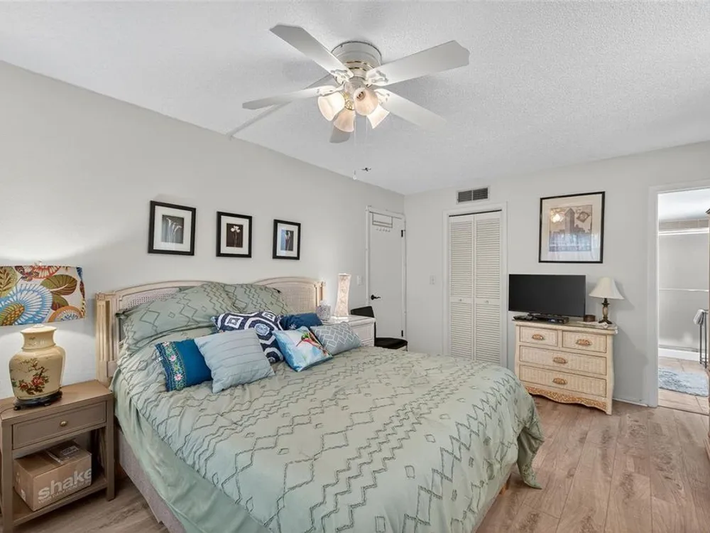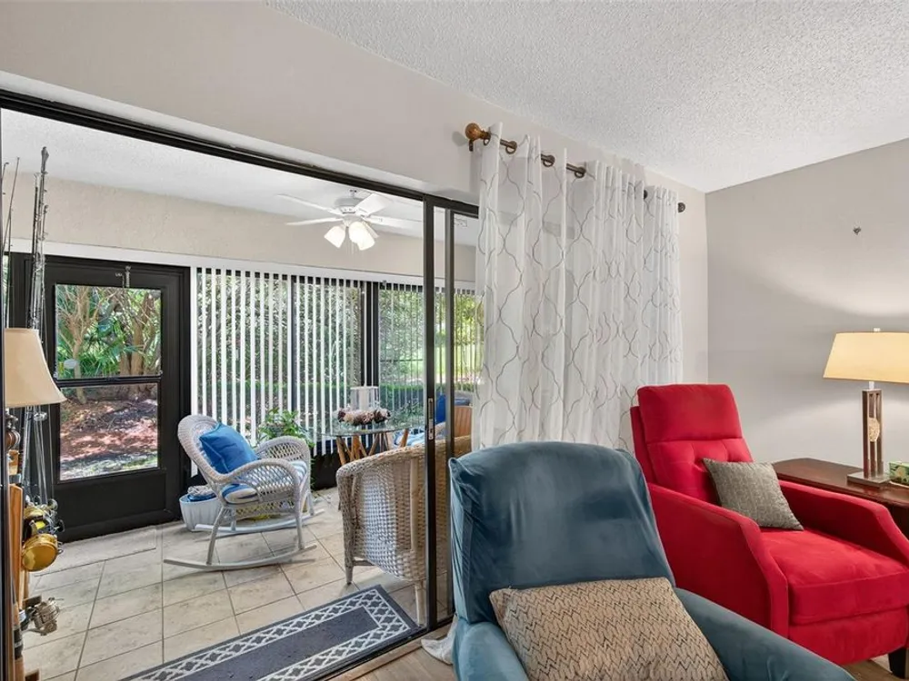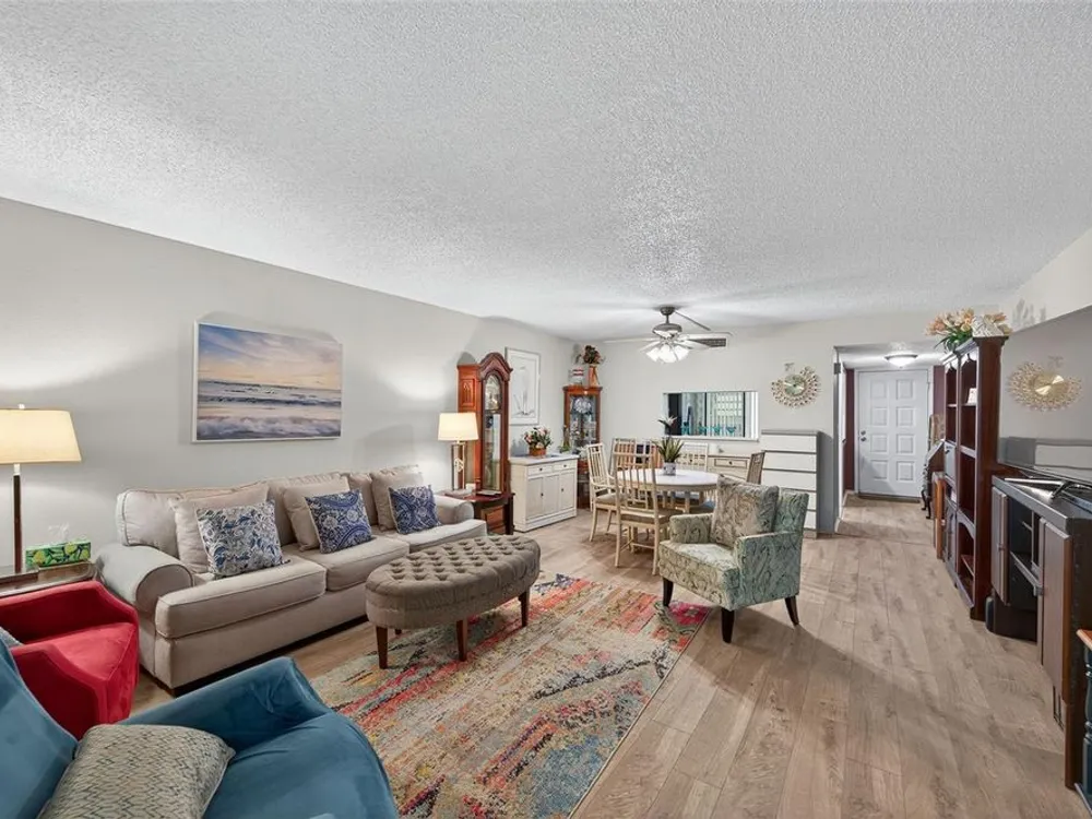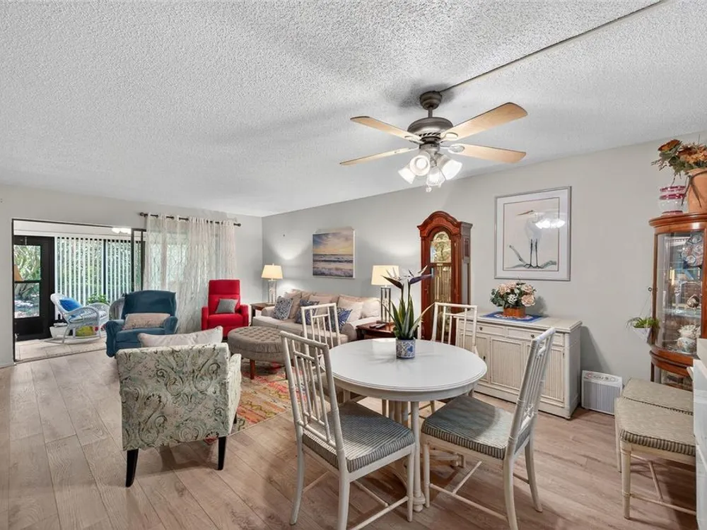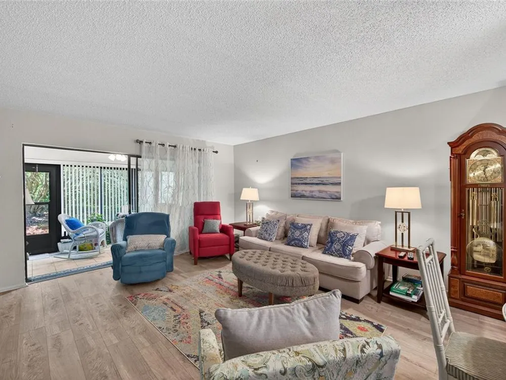 Welcome home to the highly desired community of Village on the Green. Purchase with peace of mind! This property has an elevation of over 70'. It is in Flood Zone X and a Non Evacuation Zone. The reserves are fully funded! As a two-story building, it is exempt from Milestone Inspections, impacting condos three stories and higher. Dive into paradise with this stunning 1st floor, two-bedroom, two-bath condo, perfectly nestled in a vibrant 55+ community! Your gorgeous condo has an updated (2023) eat in-kitchen with beautiful tile flooring. The living areas and bedrooms feature handsome LVT wood-look floors (2023). The living area is large and includes a dining area adjacent to the living room. From the living room you have a large, secluded Florida room, perfect for your morning coffee, afternoon reading and evening refreshments. The primary suite is large with a walk in closet and en-suite bathroom with a walk in shower. The guest bedroom can also be used as an office or den. The condo has it's own laundry room inside the unit with shelves and room for storage. New AC in 2023. The perks don't stop there! This community is a lifestyle, not just a location. Enjoy a sparkling pool, a clubhouse with a fitness center, library, card room and banquet room. Outside you will find the shuffleboard courts and community picnic area complete with gas grills for residents use. The clubhouse offers card playing and board game groups of all kinds as well as a shuffleboard group that meets weekly in the fall through the spring. Additionally there are regular community events throughout the year. Your condo fees include, water, sewer, trash, cable tv and internet in addition to all of the exterior maintenance and common area maintenance. And the best part, you're just minutes away from the heart of vibrant Downtown Dunedin, with its charming shops, delectable dining, and lively entertainment. Plus, you’re close to Honeymoon Island, Caladesi Island and more of Florida’s best beaches and fun activities. This condo offers you peace of mind and fun in the sunshine. Don’t just dream of the Florida lifestyle – live it!