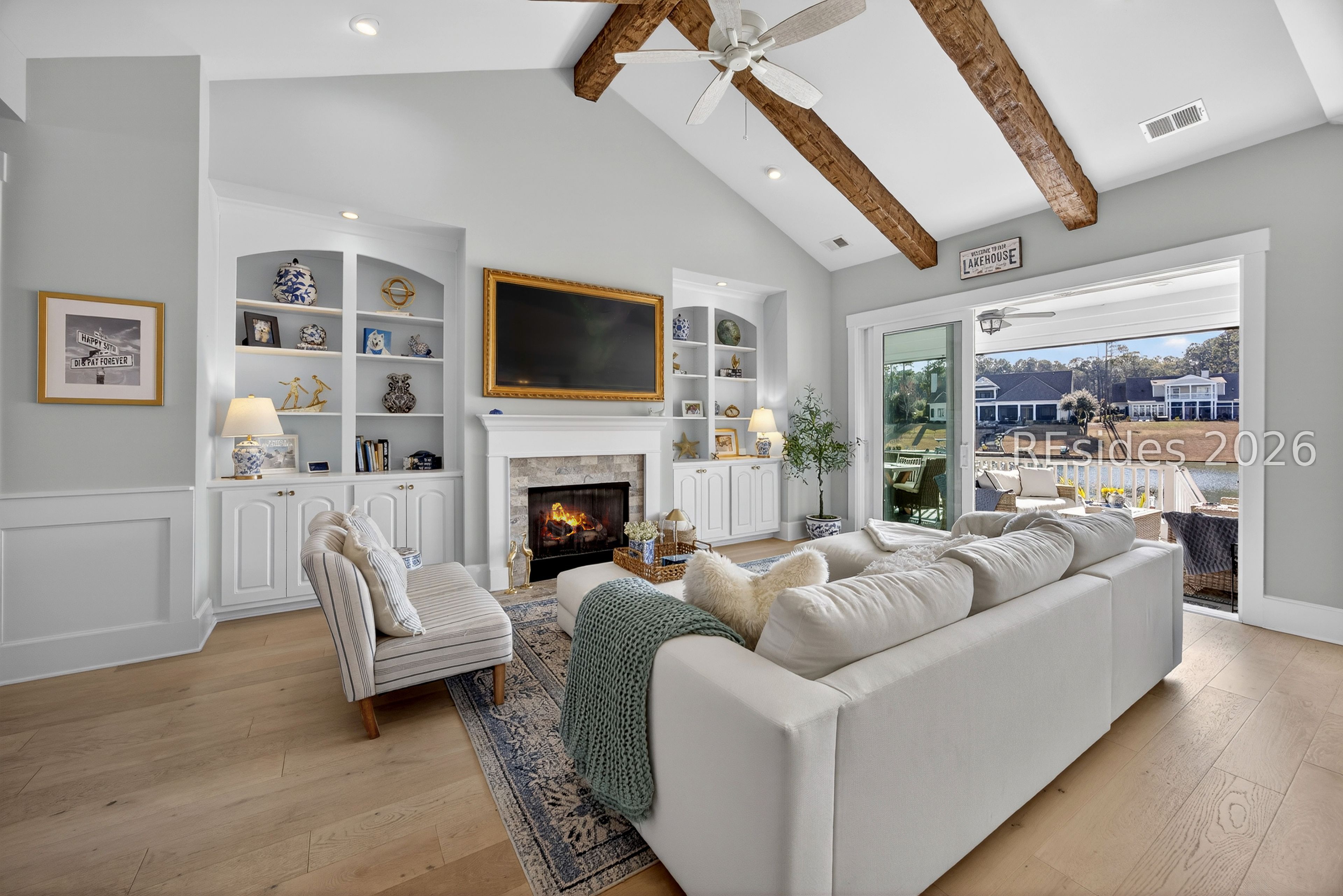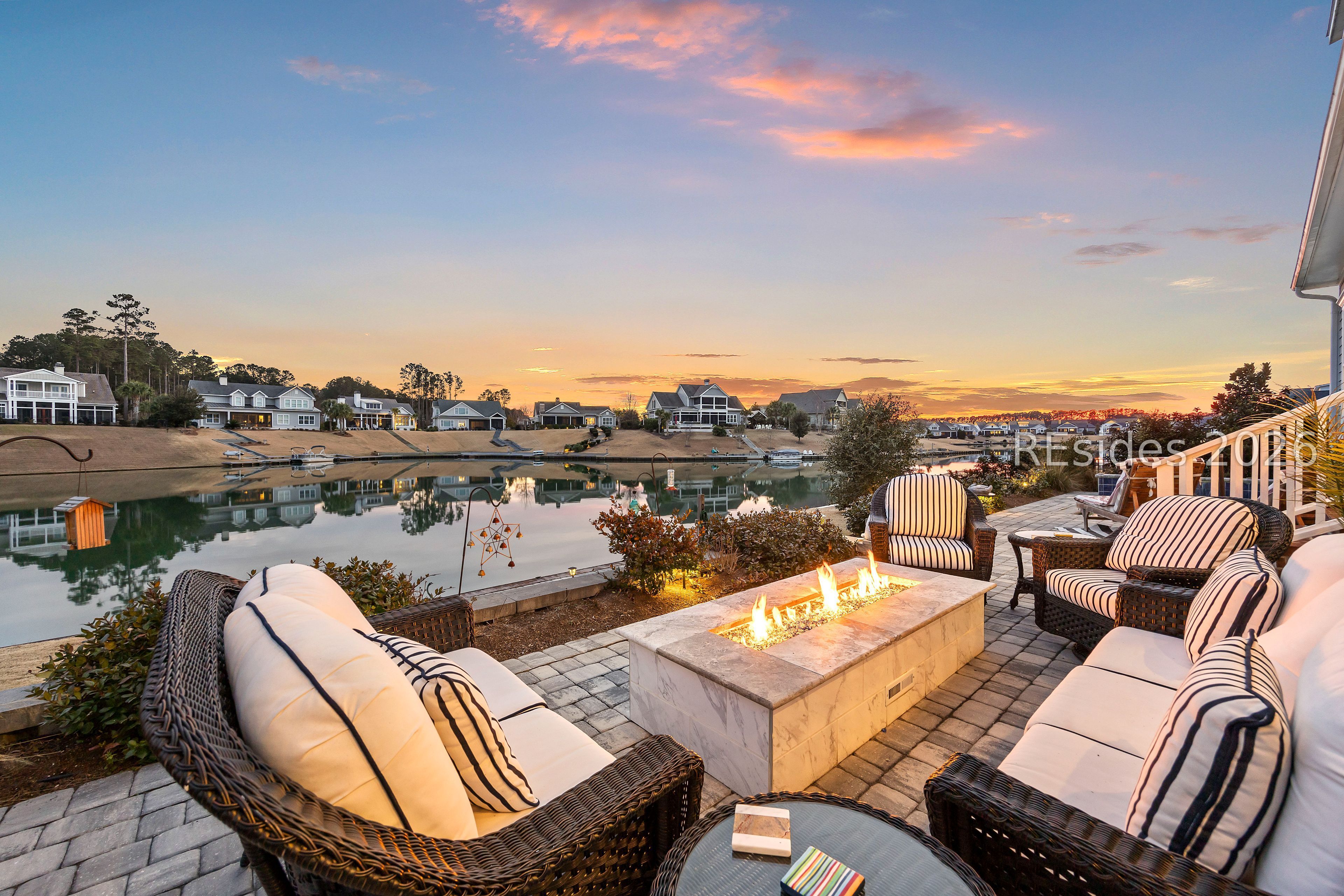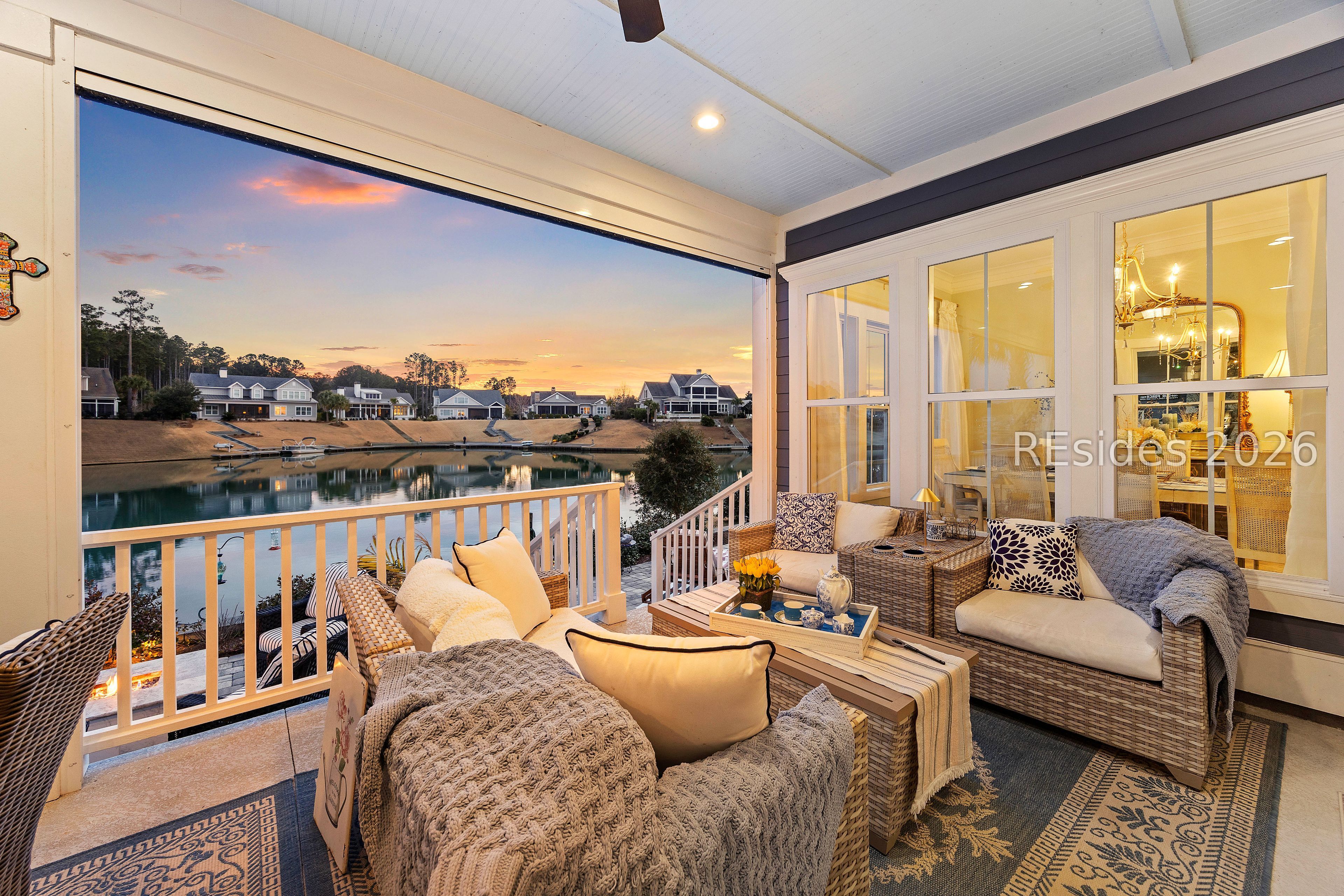 Welcome to an exceptional lakefront residence in the heart of Hampton Lake, Bluffton, SC-where refined luxury meets Lowcountry living. This meticulously maintained and extensively upgraded 3,245 square foot home offers 4 bedrooms and 3.5 baths, and was expertly built by Logan Homes on a premier lot overlooking the sparkling waters of Hampton Lake. From the moment you arrive, the home's architectural detail and thoughtful design set it apart. Inside, you'll find vaulted and tray ceilings, custom finishes throughout, and a warm gas fireplace anchoring the main living space. The primary bedroom serves as a true resort-like sanctuary, offering serene lake views and a spa-inspired primary bathroom features a jetted soaking tub and a beautifully tiled walk-in shower, creating a private oasis designed for relaxation and comfort. The upgraded kitchen is both beautiful and functional, ideal for entertaining or everyday living, with high-end finishes and seamless flow into the main living areas. The home continues to impress upstairs with a spacious bonus room complete with a full bath and bedroom-perfect for guests, a media room, or private retreat-along with access to a second-story balcony offering breathtaking views of Hampton Lake. Step outside and experience a backyard that is truly one of a kind. Designed for year-round enjoyment, the outdoor living space features a custom-built gas fireplace overlooking the lake, a stunning pool and spa combination with a waterfall, and retractable screens for comfort in every season. Entertain effortlessly in the fully equipped custom outdoor kitchen, complete with a warming drawer, stovetop, refrigerator, grill, and sink. A private dock provides direct access to the lake, making sunset cruises, kayaking, or simply relaxing by the water part of everyday life. No detail was overlooked in creating this extraordinary outdoor oasis. This home is an entertainer's dream and a peaceful retreat all in one-making lake life truly worth living. Located within the award-winning Hampton Lake community, residents enjoy unparalleled amenities including a 165-acre freshwater lake, resort-style pools, sandy beach, lakeside restaurant, fitness center, spa, tennis and pickleball courts, walking trails, dog park, and a vibrant calendar of community events. Hampton Lake is more than a neighborhood-it's a lifestyle. This rare lakefront offering combines luxury, comfort, and unmatched views in one of Bluffton's most sought-after communities.