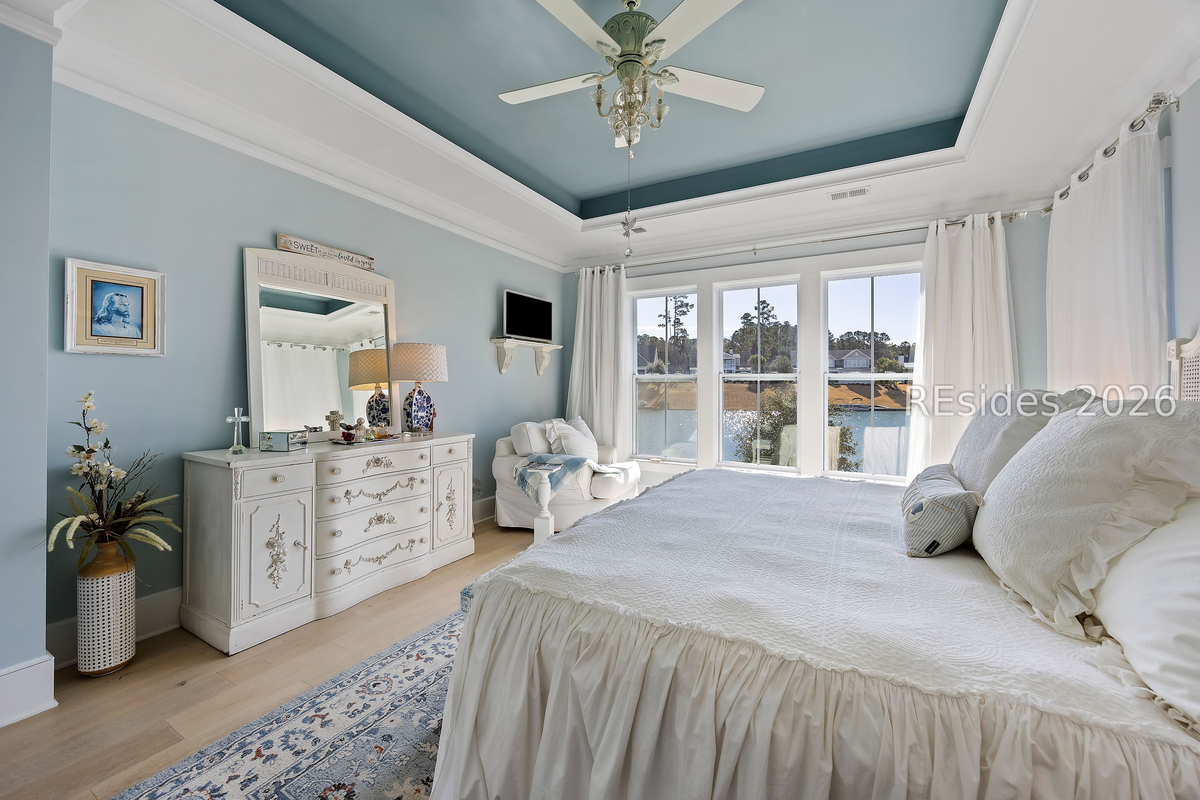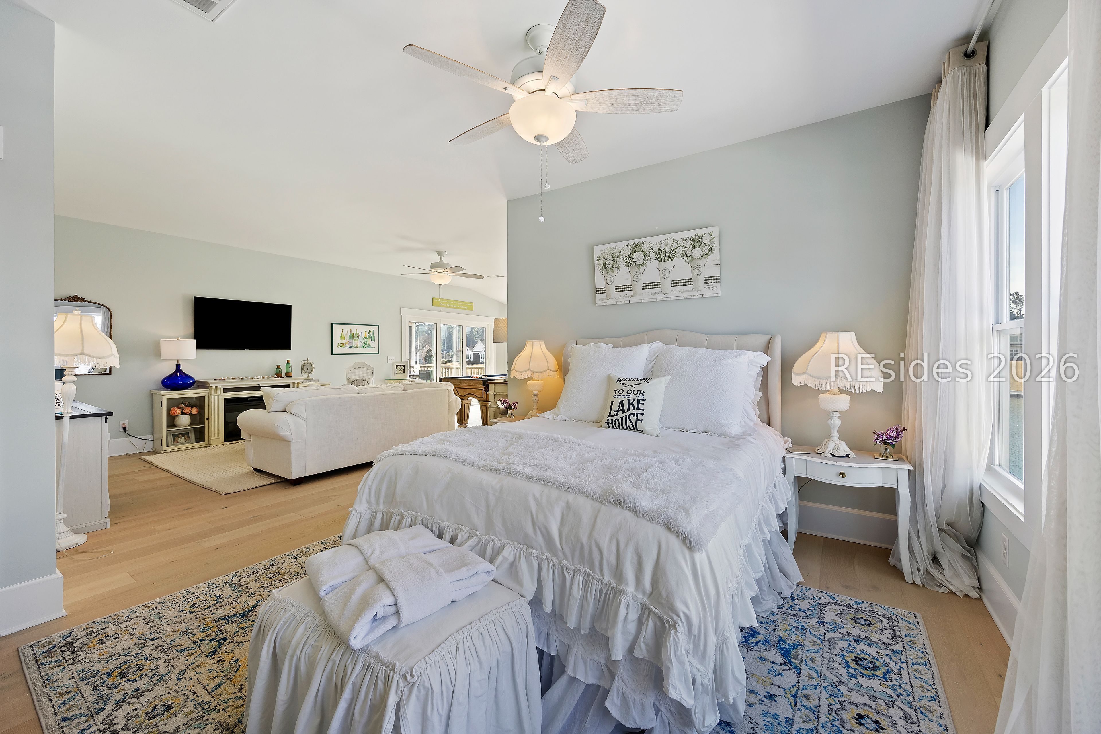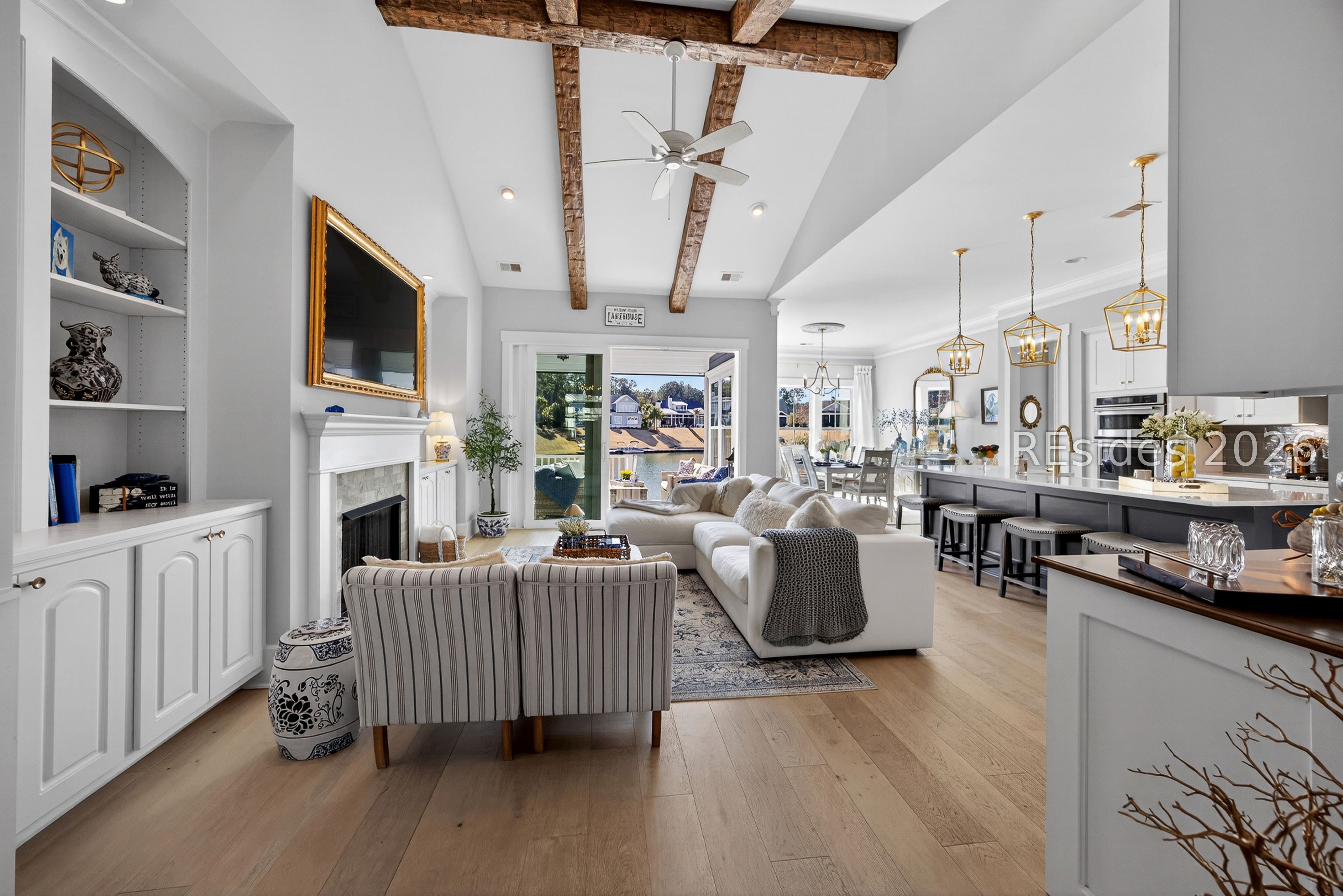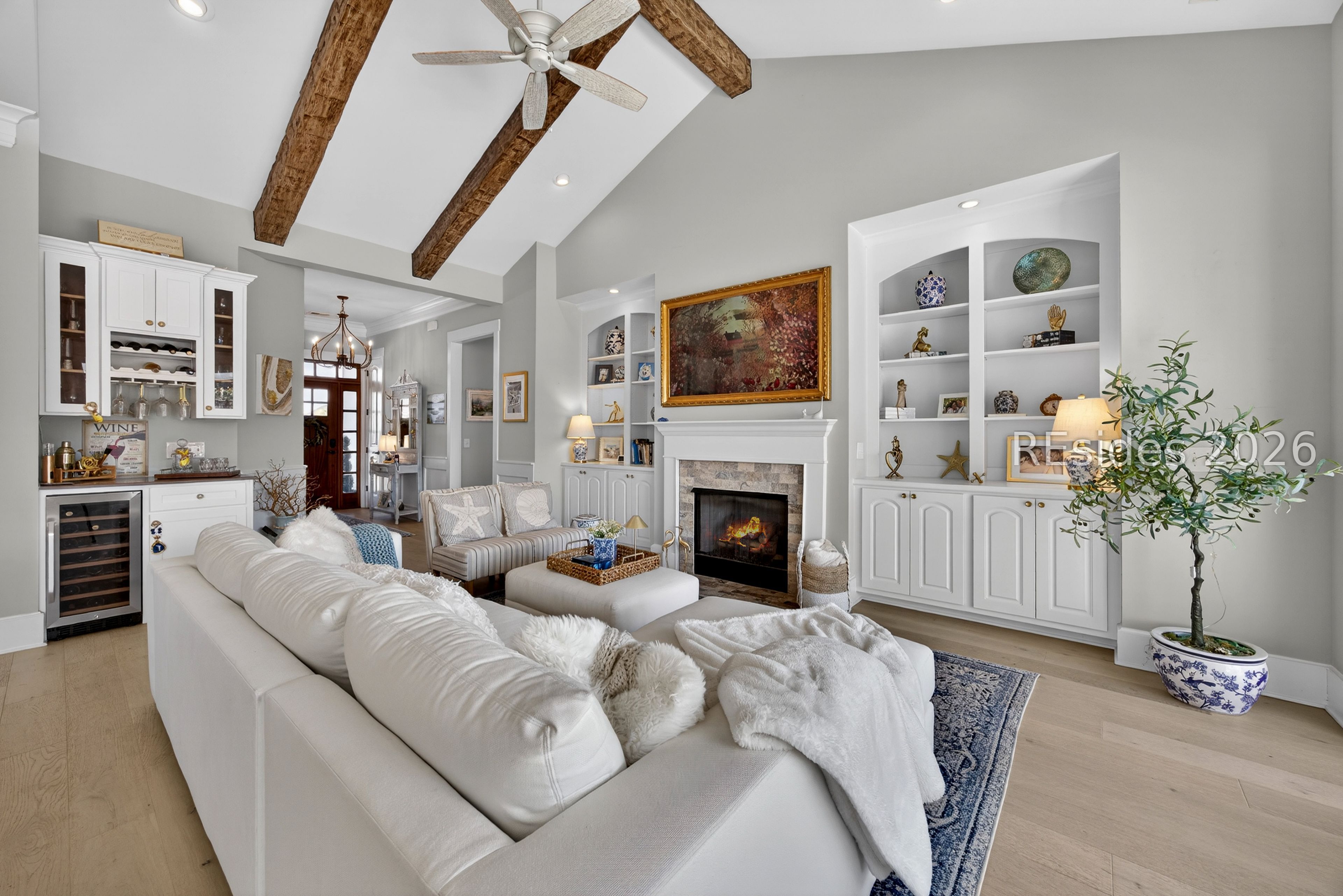 Welcome to an exceptional lakefront residence in the heart of Hampton Lake, Bluffton, SC-where refined luxury meets Lowcountry living. This meticulously maintained and extensively upgraded 3,245 square foot home offers 4 bedrooms and 3.5 baths, and was expertly built by Logan Homes on a premier lot overlooking the sparkling waters of Hampton Lake. From the moment you arrive, the home's architectural detail and thoughtful design set it apart. Inside, you'll find vaulted and tray ceilings, custom finishes throughout, and a warm gas fireplace anchoring the main living space. The primary bedroom serves as a true resort-like sanctuary, offering serene lake views and a spa-inspired primary bathroom features a jetted soaking tub and a beautifully tiled walk-in shower, creating a private oasis designed for relaxation and comfort. The upgraded kitchen is both beautiful and functional, ideal for entertaining or everyday living, with high-end finishes and seamless flow into the main living areas. The home continues to impress upstairs with a spacious bonus room complete with a full bath and bedroom-perfect for guests, a media room, or private retreat-along with access to a second-story balcony offering breathtaking views of Hampton Lake. Step outside and experience a backyard that is truly one of a kind. Designed for year-round enjoyment, the outdoor living space features a custom-built gas fireplace overlooking the lake, a stunning pool and spa combination with a waterfall, and retractable screens for comfort in every season. Entertain effortlessly in the fully equipped custom outdoor kitchen, complete with a warming drawer, stovetop, refrigerator, grill, and sink. A private dock provides direct access to the lake, making sunset cruises, kayaking, or simply relaxing by the water part of everyday life. No detail was overlooked in creating this extraordinary outdoor oasis. This home is an entertainer's dream and a peaceful retreat all in one-making lake life truly worth living. Located within the award-winning Hampton Lake community, residents enjoy unparalleled amenities including a 165-acre freshwater lake, resort-style pools, sandy beach, lakeside restaurant, fitness center, spa, tennis and pickleball courts, walking trails, dog park, and a vibrant calendar of community events. Hampton Lake is more than a neighborhood-it's a lifestyle. This rare lakefront offering combines luxury, comfort, and unmatched views in one of Bluffton's most sought-after communities.