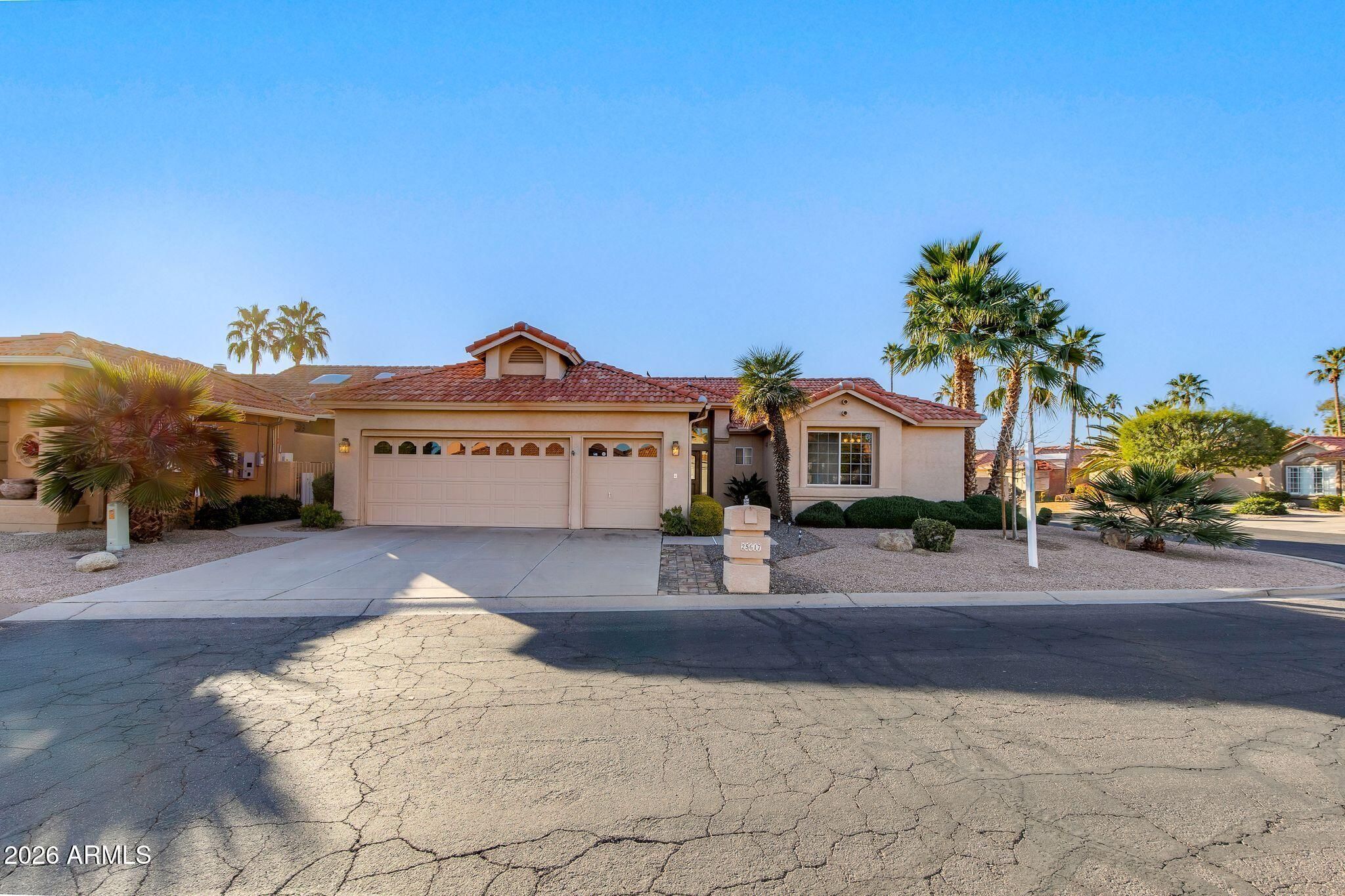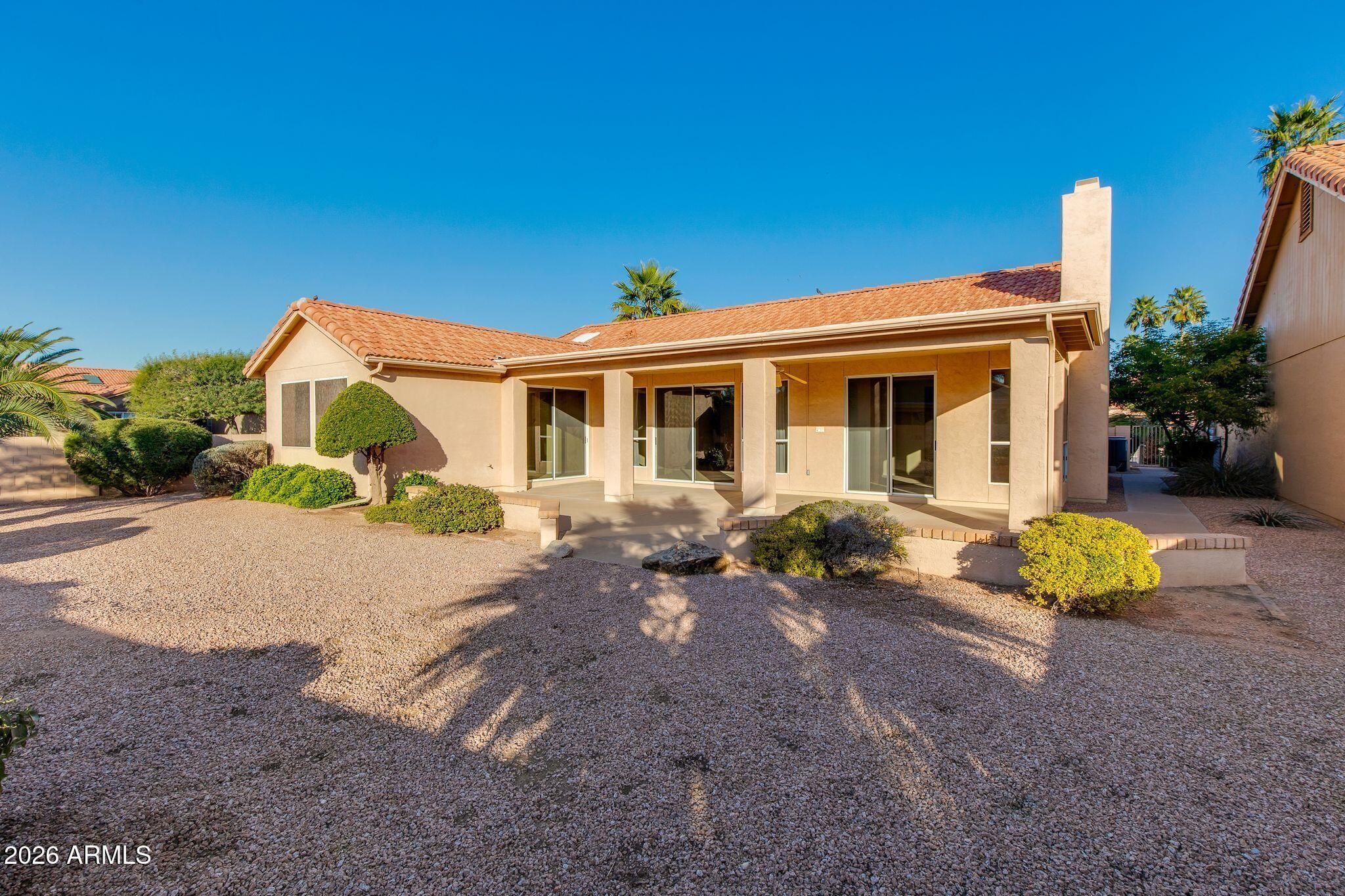 Welcome home to this well cared for gem in the popular Sun Lakes active adult community. This 2 bed, 3 bath home also features a dedicated office or den, perfect for guests, hobbies, or working from home. The classic stucco exterior and tile roof offer timeless curb appeal, and the big ticket items are already done: new roof in 2025, AC in 2021, and water heater in 2022. The open, functional layout makes everyday living easy and comfortable. Enjoy all that Sun Lakes has to offer including golf, pools, fitness centers, restaurants, and endless activities. Easy, low maintenance living at its best.