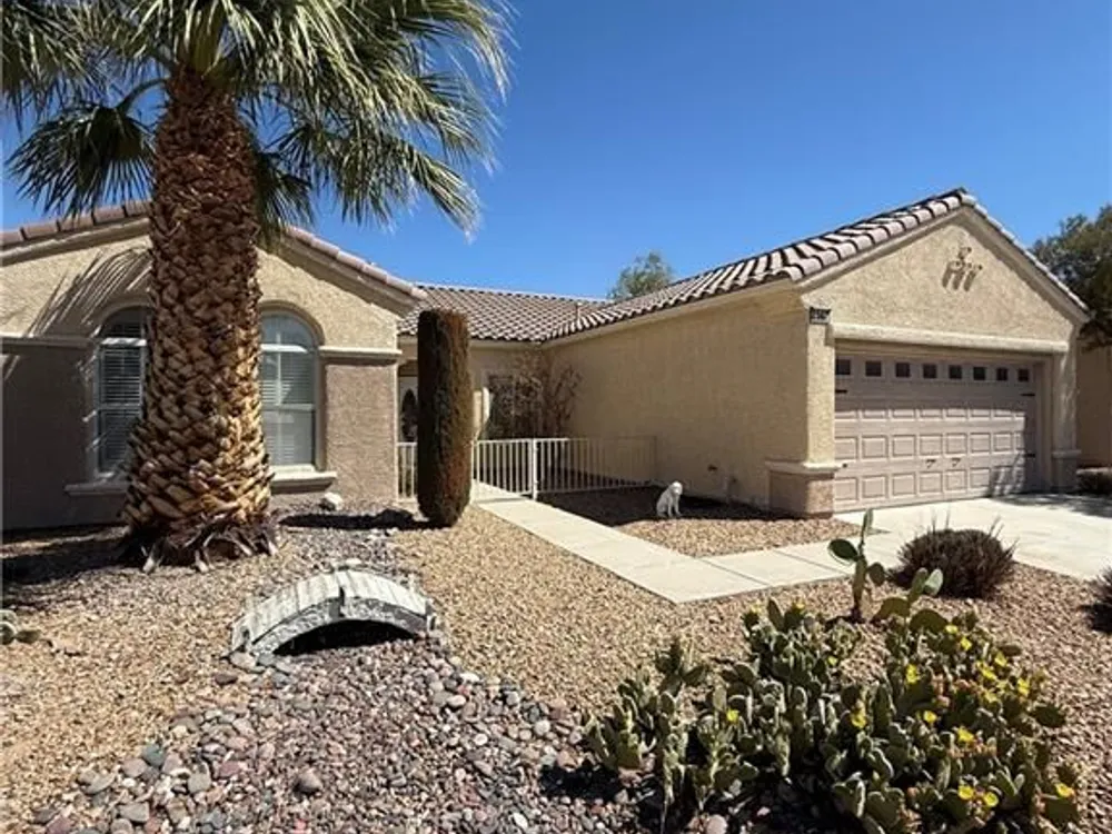 Beautiful one-story home located in Sun City Anthem! Just minutes from shopping, this impeccably maintained residence features Corian countertops, bay windows, and a versatile den, ideal for a private sanctuary. The welcoming foyer opens to a spacious great room filled with natural light. Stunning desert landscaped front yard with a blend of plants, rock formations and decorative sculptures. Boasting a serene outdoor retreat with a private covered patio, ensuring peaceful moments in your own backyard.