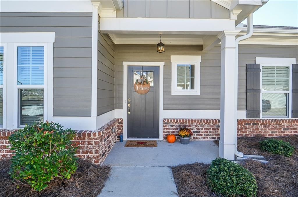 Welcome to effortless living in this like-new, single-level end-unit townhome nestled inside a desirable 55+ gated community. Just three years old and thoughtfully designed for comfort and convenience, this home offers the perfect blend of privacy, functionality, and low-maintenance ease. Step inside to a welcoming entry foyer that sets the tone for the bright, open layout ahead. The spacious kitchen—complete with a pantry and generous prep space—flows seamlessly into the dining and living areas, where a cozy gas fireplace and abundant natural light create a warm, inviting atmosphere. Just beyond, the enclosed Sun Room provides a peaceful retreat overlooking community green space, ideal for morning coffee, quiet reading, or simply enjoying the view year-round. This 3-bedroom, 2-bath home is designed with everyday living in mind. Durable LVP flooring runs through the main areas, while soft carpet adds comfort to the bedrooms. The private primary suite offers direct access to the Sun Room and features a well-appointed ensuite bath with dual vanities, a soaking tub, and a zero-entry walk-in shower for added ease and accessibility, along with a spacious walk-in closet. Additional highlights include a true entryway for guests, a two-car attached garage, and energy-efficient windows that fill the home with natural light. Residents enjoy a vibrant, active adult lifestyle with gated security and amenities including a pool, dog park, picnic area, and community garden beds. Conveniently located near major highways, shopping, dining, parks, trails, libraries, and recreation facilities throughout Gwinnett County, this home delivers the comfort, convenience, and sense of community you’ve been looking for—all on one easy level.