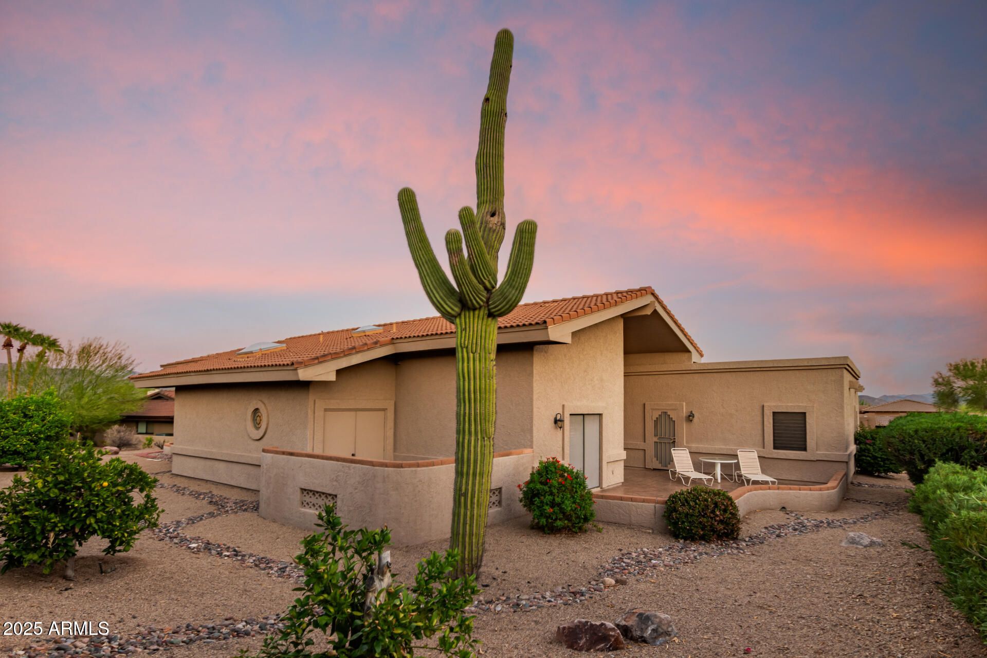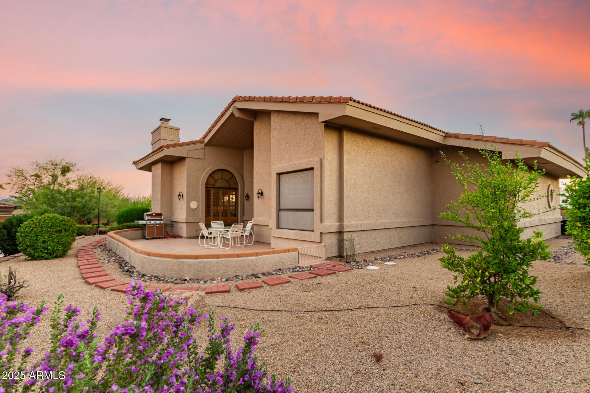 Nestled within the Prestigious Rio Verde 55+ Adult Community, this stunning custom home offers a blend of refined elegance, soaring ceilings, abundance of natural light, seamless indoor/outdoor space and effortless resort style living. The chefs kitchen boasts a large center island, granite countertops, wood flooring, new appliances and a spacious breakfast room. The primary suite offers spa-like relaxation, while the 2 generously sized guest rooms provide privacy and flexibility for office/ den or hobby use. Outside, enjoy 3 peaceful patios, low maintenance desert landscape all creating a tranquil setting to enjoy Arizona's stunning sunsets. Located minutes from 2 world class Golf Courses memberships are available. Furniture available separate bill of sale