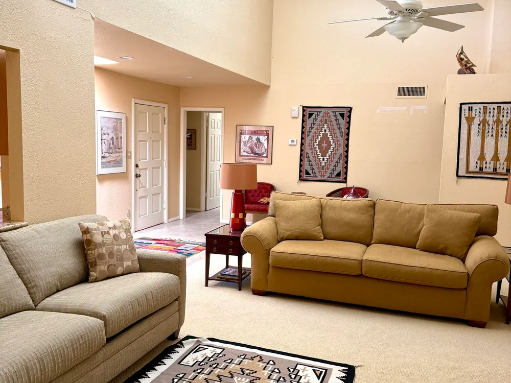 Fabulous mountain views on the side courtyard of this home perched on a high lot on a cul- de -sac street. 2 bedrooms, 2.5 baths, office, breakfast room, dining room, vaulted ceiling in great room with fireplace. Hobby room off of great room that could be additional bedroom. Wonderful kitchen with Thomasville cabinetry, granite counters and breakfast bar, new stainless refrigerator, upscale electric stove,& dishwasher. This home sits on 1/3 +acre lot with room for addition. 2 car garage. & 2 patios. Located in a 55 & older adult resort community. Amenities include 2 (18) hole golf courses, a Country club with dining and pro shop. Tennis, pickleball, bocce, hiking, biking. Swimming and hot tub in Community center/ art, library ,work out center, pool room, cards, dance& more