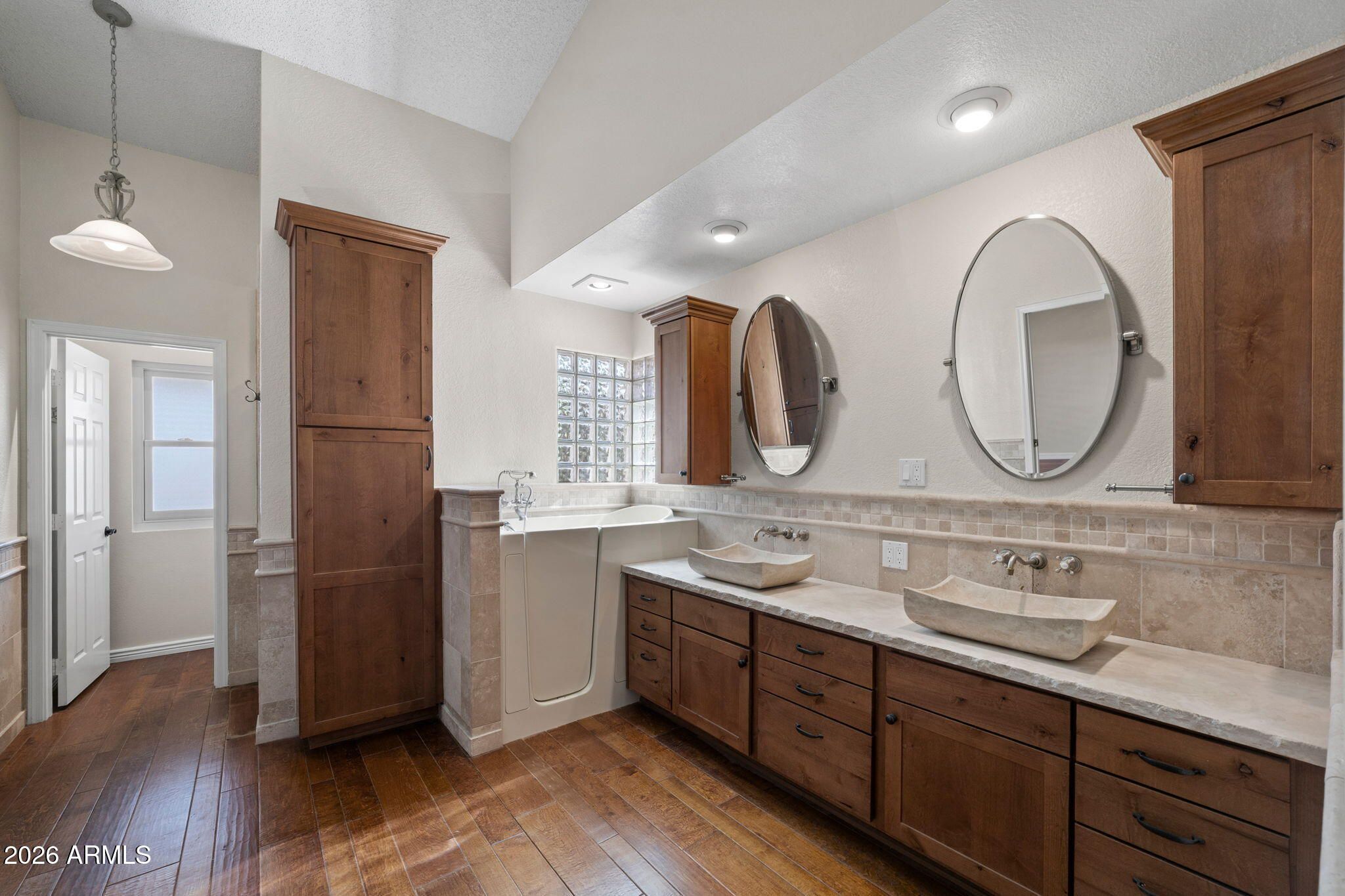 - Non-laminate Counter, Quartz Countertops, Double Vanity, Eat-in Kitchen, No Interior Steps, Vaulted Ceiling(s), Wet Bar, Pantry, Full Bth Master Bdrm, Separate Shwr & Tub