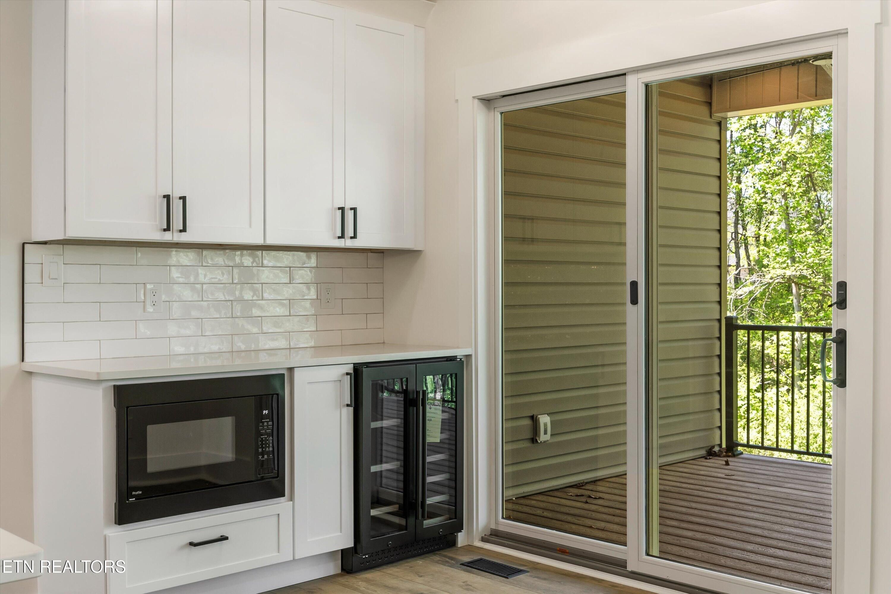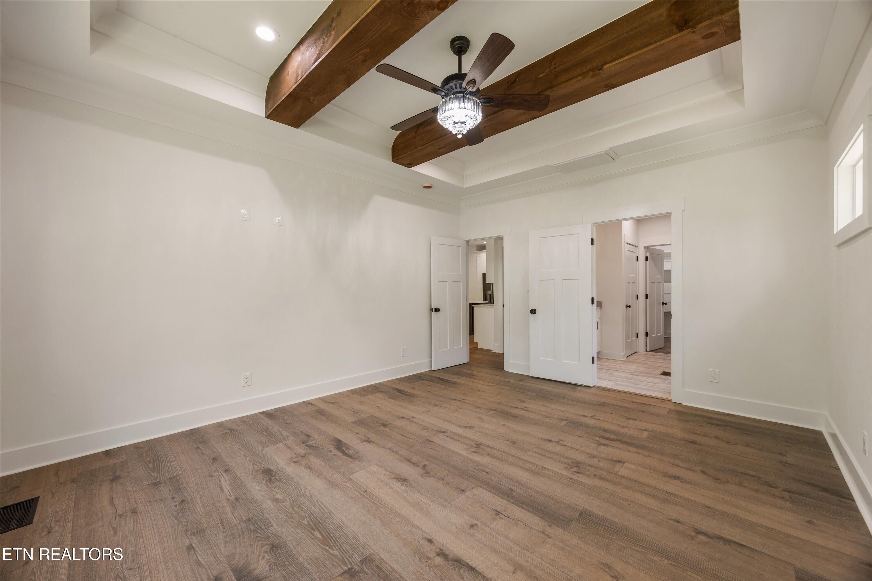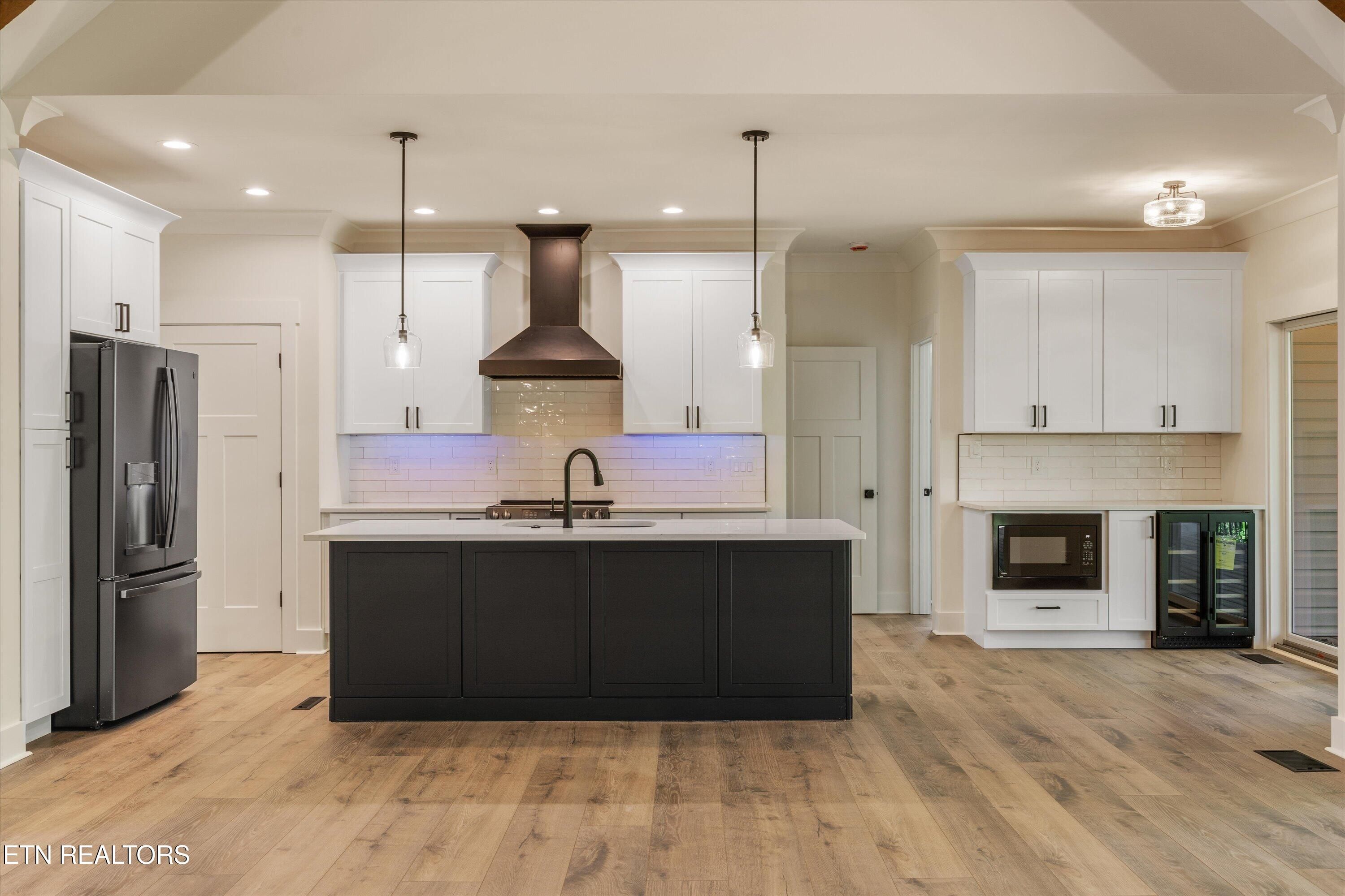 Like-New Custom Home with One-Level Living + Premium Outdoor Space in Tellico Village Professionally built and never occupied, this less-than-one-year-old home offers the benefits of new construction without the wait. Designed for true main-level living, the open floor plan features engineered hardwoods throughout, 9' ceilings, and a vaulted living room with wood beam detail and gas stone fireplace. A custom wood ceiling highlights the formal dining area, adding warmth and character. The kitchen blends function and style with semi-custom cabinetry, quartz countertops, walk-in pantry, and a dedicated coffee/wine bar with built-in wine fridge. All three bedrooms are located on the main level, including a well-appointed primary suite with double vanity, custom walk-in closet, and a large tiled walk-in shower. Secondary bath also features full tile finishes. Upstairs offers additional flexibility with a private office and bonus room--ideal for guests, work, or media. Outdoor living is a standout feature, with a 32' covered front porch and an expansive 45' covered rear patio with composite decking, open-air space, gas hookup for grilling, and a private, landscaped backyard setting. Additional features include a 2-car garage with epoxy flooring and quality finishes throughout. Located in Tellico Village, offering lake access, golf, restaurants, pickleball, tennis, and a rec center with pool and fitness facilities.
