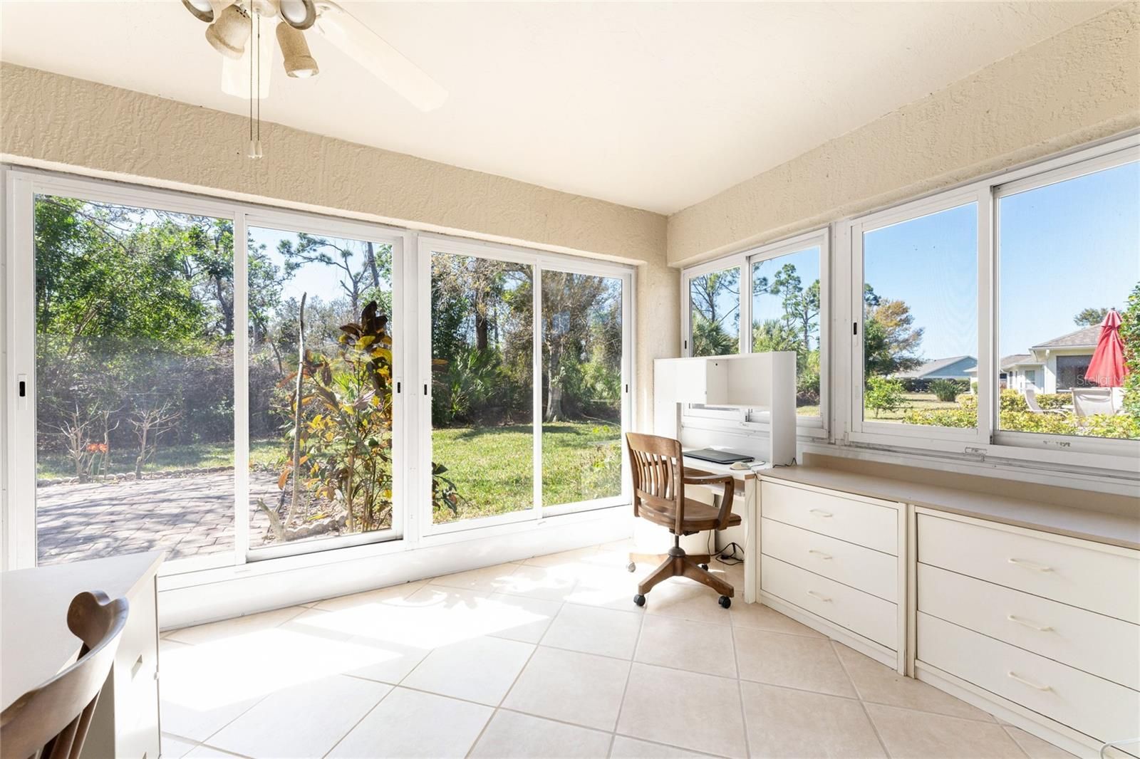 Enjoy Easy, Maintenance-Free Living in the 55+ Gated Park Forest Community! Nestled beneath mature oak trees and surrounded by established landscaping, this light and bright two bedroom plus bonus room, two bathroom home offers a spacious open floor plan and a wonderful opportunity to update at your own pace. For peace of mind, this home is situated in the X flood zone. A screened and tiled entry welcomes you inside where vaulted ceilings and triple sliding glass doors in the great room create an open, airy feel. Neutral tile and carpeting run throughout, and the glass enclosed, all weather Florida room adds valuable flex space for relaxing, hobbies, or entertaining year round. The kitchen provides generous cabinet storage, a center island for meal prep, a closet pantry, a bay window overlooking the peaceful backyard, and sliding door access to the lanai. The layout flows comfortably into the main living areas, making everyday living and casual gatherings easy. The primary bedroom retreat is well sized with room for larger furnishings, two walk-in closets, and sliding glass doors that draw in natural light from the Florida room. The ensuite bathroom features an oversized vanity with makeup area and a walk in shower. Guests will appreciate their own bedroom and nearby bathroom with a convenient tub and shower combination. An oversized laundry room offers additional storage and workspace. Out back, enjoy the wooded setting that provides a sense of privacy whether relaxing in the enclosed Florida room or grilling on the open air paver patio while listening to the sounds of nature in the evening. Embrace the maintenance free lifestyle and spend more time enjoying community amenities such as the heated pool, tennis courts, shuffleboard, and clubhouse, with on site storage available for your boat or RV. Park Forest offers a full social calendar and a welcoming neighborhood atmosphere, all less than 10 miles from Gulf beaches, world class fishing, boat ramps, hiking trails, parks, golf courses, shopping, and medical facilities. This is a wonderful opportunity at 257 Park Forest Boulevard to enjoy the Florida lifestyle you have been waiting for.