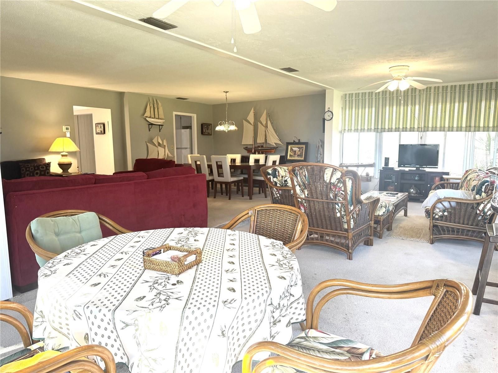 VALUE PRICED! Villa 158 is a large C Model, originally built with a 12x30 screened porch/lanai, but professionally remodeled with screens, glass windows and air conditioned. This makes the square feet 1569 according to the Builder, the Paver Brothers. This villa has a new roof as of 2022. Tile floors throughout except for living room and Florida room ( former lanai ). The furniture is comfortable and negotiable. Villa is open and great for entertaining. It's just 4 blocks to the Clubhouse, Heated Pool and Marina. Less than 1/2 mile to shopping and even closer to the convenience store with one of the best egg salad sandwiches in town. The Community is one of the most socially active communities in the area. The happy community life offered here centers around the Recreation Complex. In the main building, a huge party-game-meeting room is equipped with dining tables, card tables, pool table, ping pong table, shuffle board table and audiovisual equipment and it's own complete kitchen. Poolside parties are easily accommodating, with one whole wall of sliding glass doors in the principal room leading you out to a full terrace, the Heated pool and shuffle board courts. The Clubhouse also has a lending library, card rooms, male and female saunas and two exercise rooms. Office manager is available 5 days a week. Villa 158 comes with it's own personal attached utility room for washer, dryer & water heater, and great for hobbyist or handyman. Villa 158 has a great location, approximately 2 miles to Siesta Key and 7 miles to Bayfront at Marina Jack's, Downtown Sarasota's restaurants and theatres. This Villa is hidden from traffic views. Boat docks are available with a rental fee of $1,344-a year, with direct access to over 4,000 feet of protected sea wall and docking for residential boats with easy access to Intercoastal Waterway, Bay and Gulf. And last but not least there are 2 pets welcomed; not to exceed 15" at the shoulder. If you are looking for a Spacious Villa This One is for You!