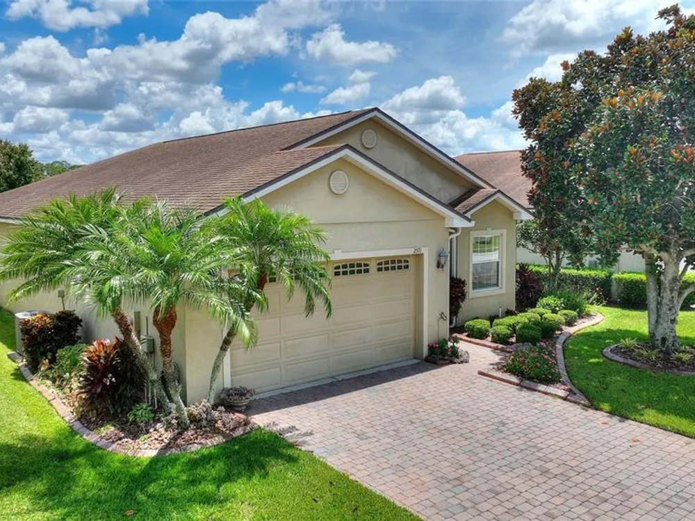 NEW ROOF TO BE INSTALLED IN NOVEMBER OF 2025!!! THIS WELL MAINTAINED 1 OWNER HOME IS LOCATED IN A GREAT 55+ GATED COMMUNITY CENTRALLY LOCATED IN WINTER HAVEN, FL. This home is situated on a PREMIUM POND FRONT LOT allowing you to enjoy beautiful sunrises while sipping your morning coffee on the (23 x 11) screened lanai! As you enter, the OPEN FLOOR PLAN, HIGH CEILINGS and SPLIT BEDROOM CONCEPT will not disappoint. The oversized kitchen is UPGRADED with an abundance of cabinetry including (42 inch uppers with crown molding), plenty of pull-out drawers, granite countertops and stainless steel appliances. There is also plenty of built-in cabinetry in the laundry room for extra storage and also includes a NEWER washer and dryer. The primary en-suite features and OVERSIZED walk-in shower for EASY ACCESS as well as a large walk-in closet. Double paned windows help with the efficiency of this home along with the NEW HVAC SYSTEM that was installed in 2024!!! Other notable features include: 8 foot garage door, landscape curbing, pavered driveway/patio and NO CARPET!!! Don't forget about the clubhouse, amenities and social activities including but not limited to: pool, hot tub, gym, craft room, billiard room, tennis/ pickle ball court, meeting room with kitchen and movie room. This property has been lovingly cared for and is just minutes from medical, shopping, dining and much more!