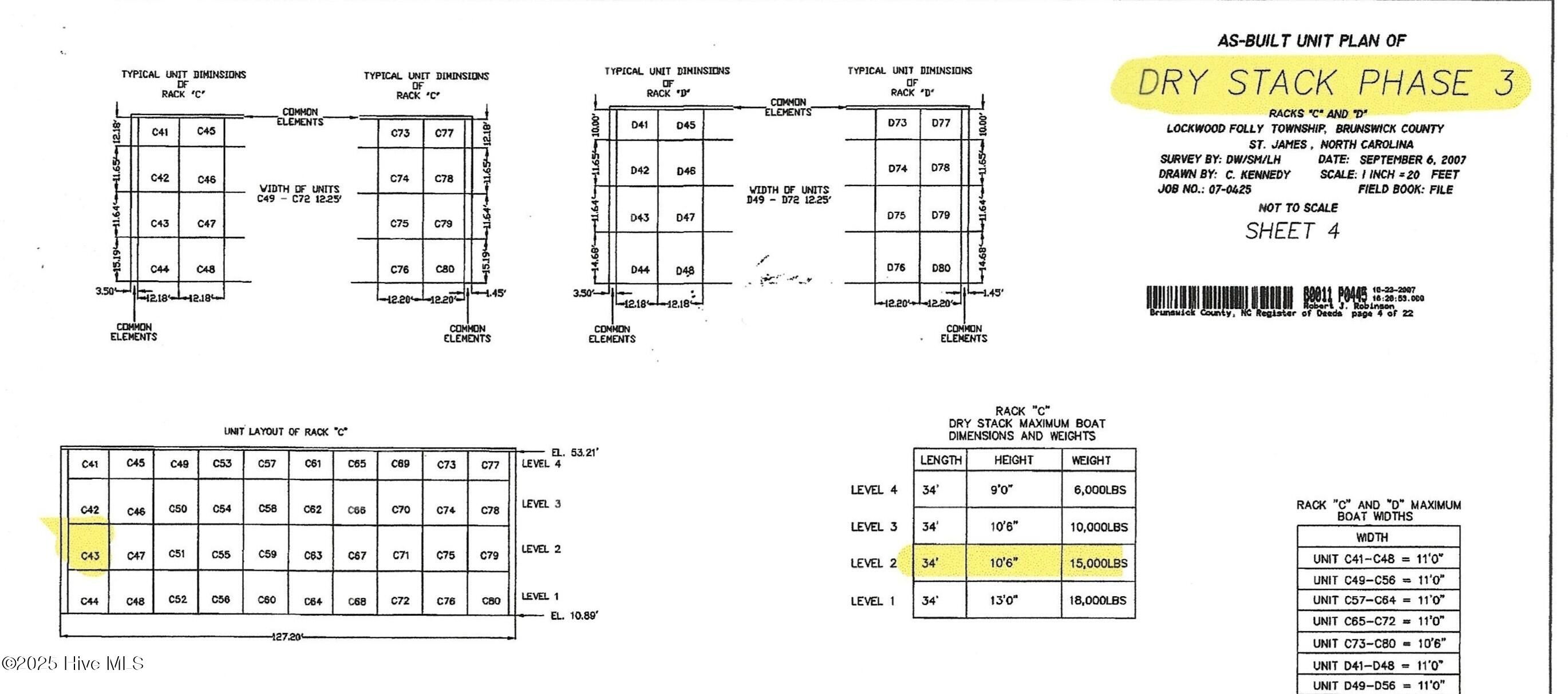 SUPER CONVENIENT Storage for your boat in the Dry Stack. Just a phone call to the concierge and your boat is in the water within the hour, unlimited number of cycles, fueled if requested and docked, ready for use. At the end of your day, just collect your personal effects and the staff will rinse off your hull, flush the outboard engine with fresh water and put it away until you are ready to go again. This Dry Slip Phase 3 C 43 second level will accommodate a boat 34' in length, 10'6'' in height and weight of 15,000 pounds (as per the Surveyor). The St James Marina is a deep water marina with a ship's store and Harbormaster Office, Gas and Diesel Fuel, Ice and Fresh Water Connections and on-site maintenance/detailing. There are restrooms, shower and laundry facilities. The Marina has direct access to the Intracoastal Waterway with easy Ocean access East or West. There is a Marina Property Owners Association for control and maintenance. Owner does not have to be a resident of St James.