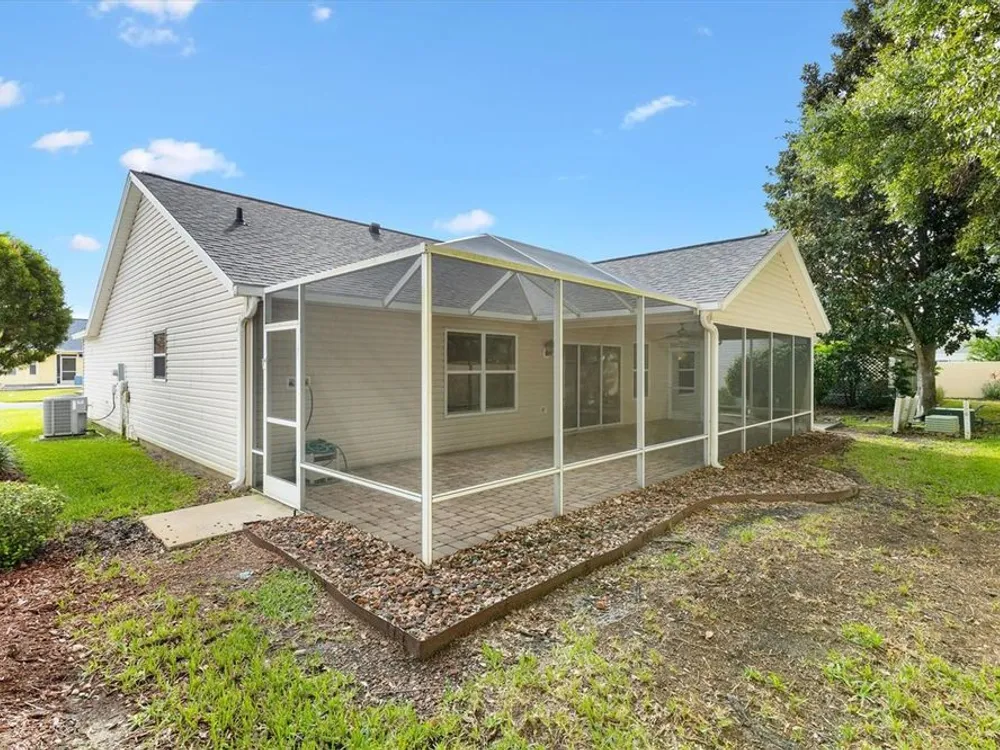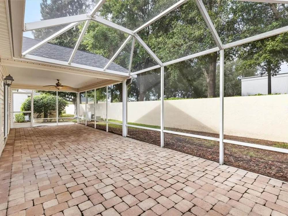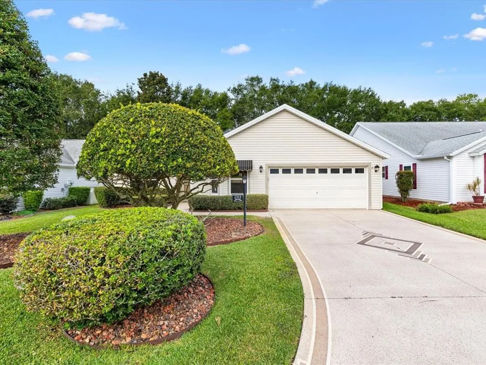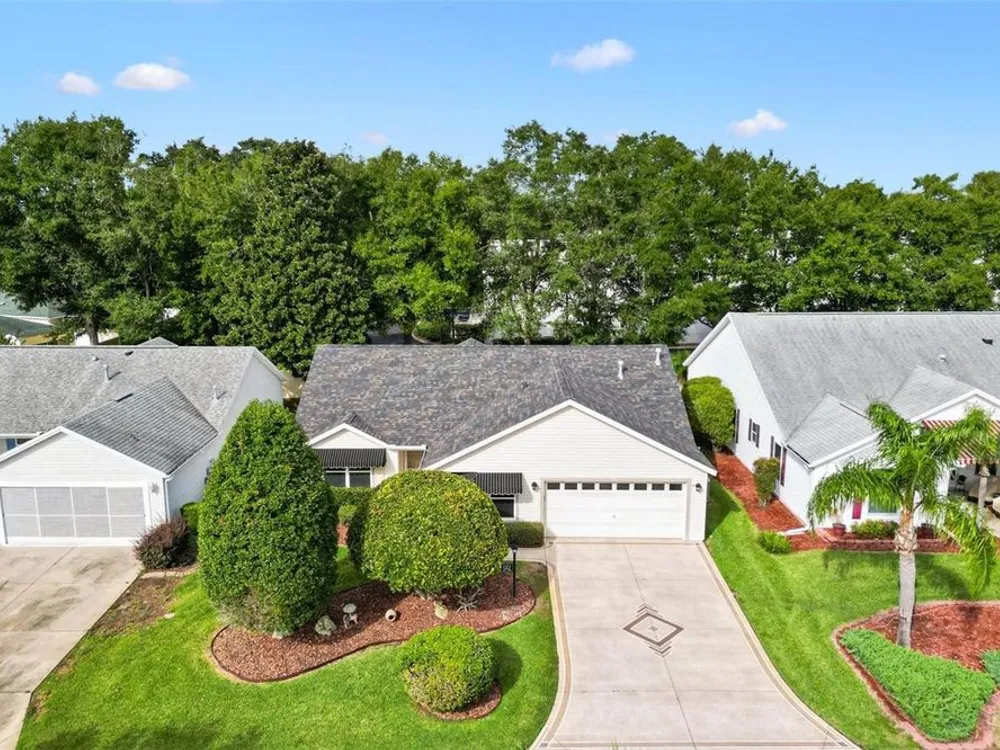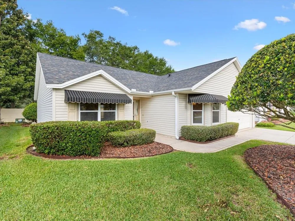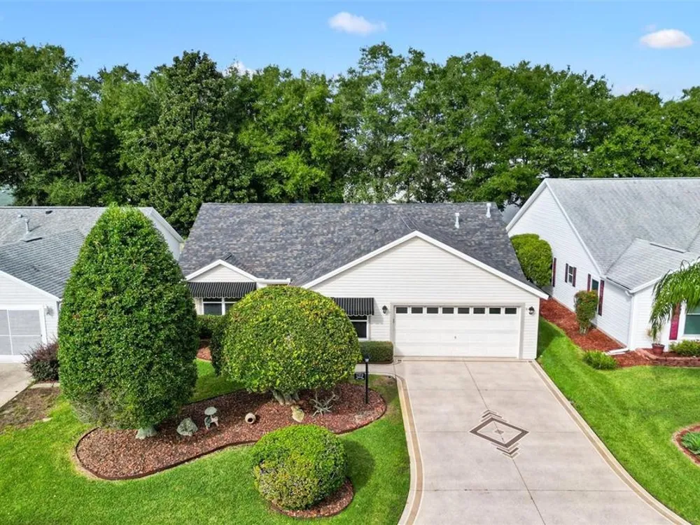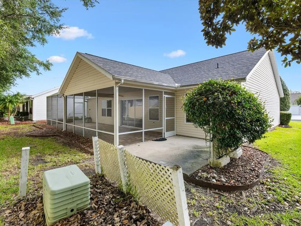 BOND PAID! NEW ROOF 2021! Looking for a Home with a Privacy Wall Behind - Here it is for You! This home is located in The Villages Florida! The home is located in the Village of Santiago near the Savannah Center plus lots of recreation centers, swimming pools, golf courses, shopping, restaurants and medical facilities. The floorplan name is a Wisteria and has 3 bedrooms, 2 bathrooms and 2 car garage plus an interior laundry room. The inside of the home has been recently painted a Natural Tan Color throughout the home. Luxury Vinyl Plank has been recently added to the home in most areas of the home - Kitchen / Dinette has ceramic tile. The Living Room has room for a HUGE TV on one of the walls plus room for your other living room furniture. The Kitchen offers lots of cabinets / countertops with natural gas range (electric range plug is available if desired). The Primary Bedroom has a large WALK-IN CLOSET. The laundry room is located right off of the Primary Bathroom where you can go into the garage from the laundry room. You can also come straight into the kitchen area from the garage. The home has a privacy wall behind the home with a large screened lanai plus a large birdcage. This outdoor area is perfect to enjoy your favorite drink and book. The front of the home has Sunbrella Awnings that were installed in 2016. The home is close to everything including Lake Sumter Landing and Spanish Springs Town Squares! Remember the BOND PAID which saves you a ton of money!