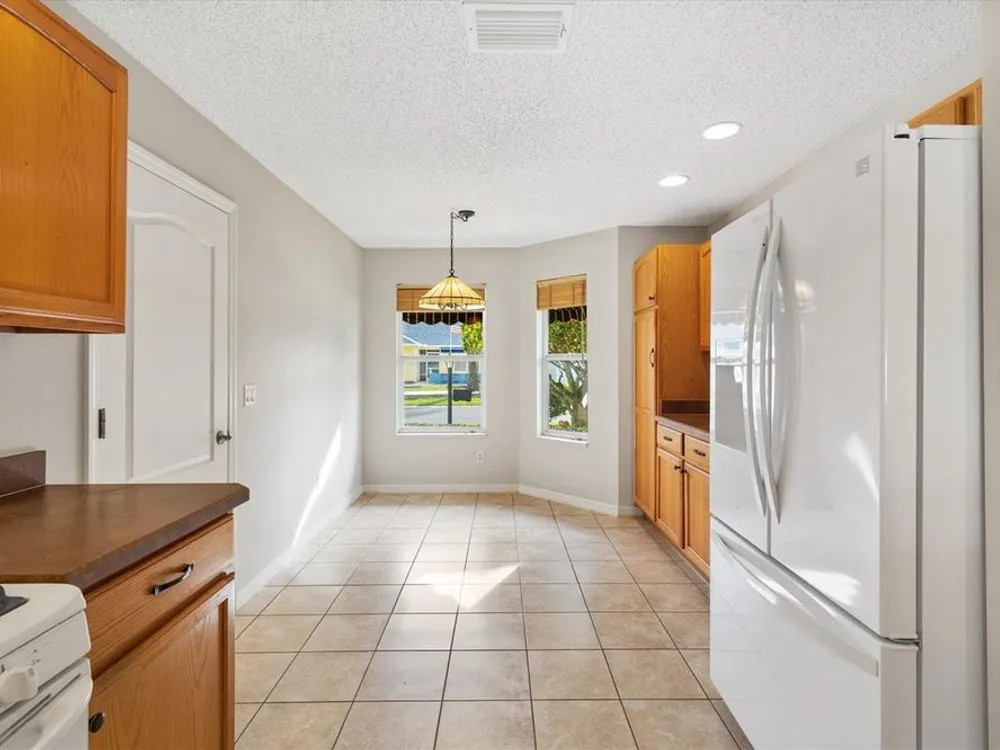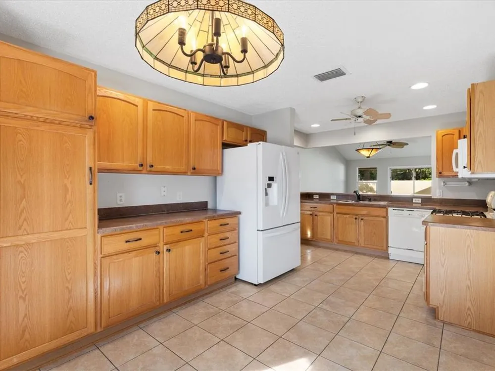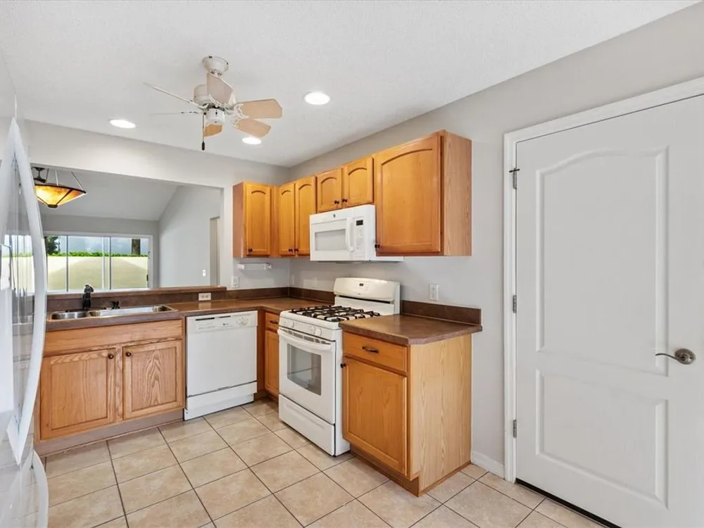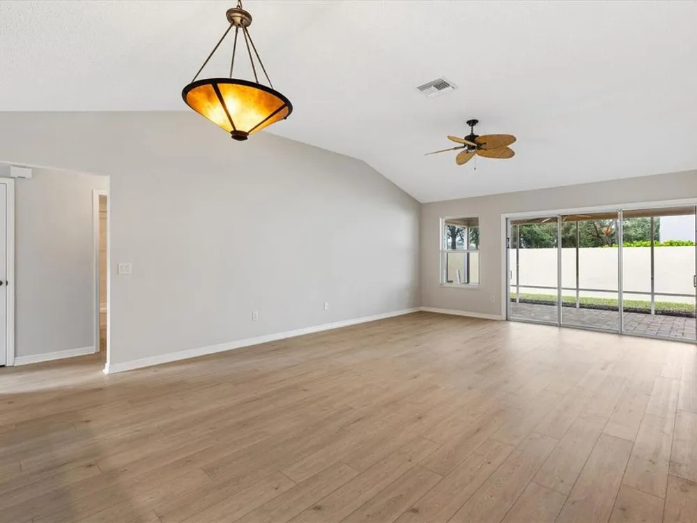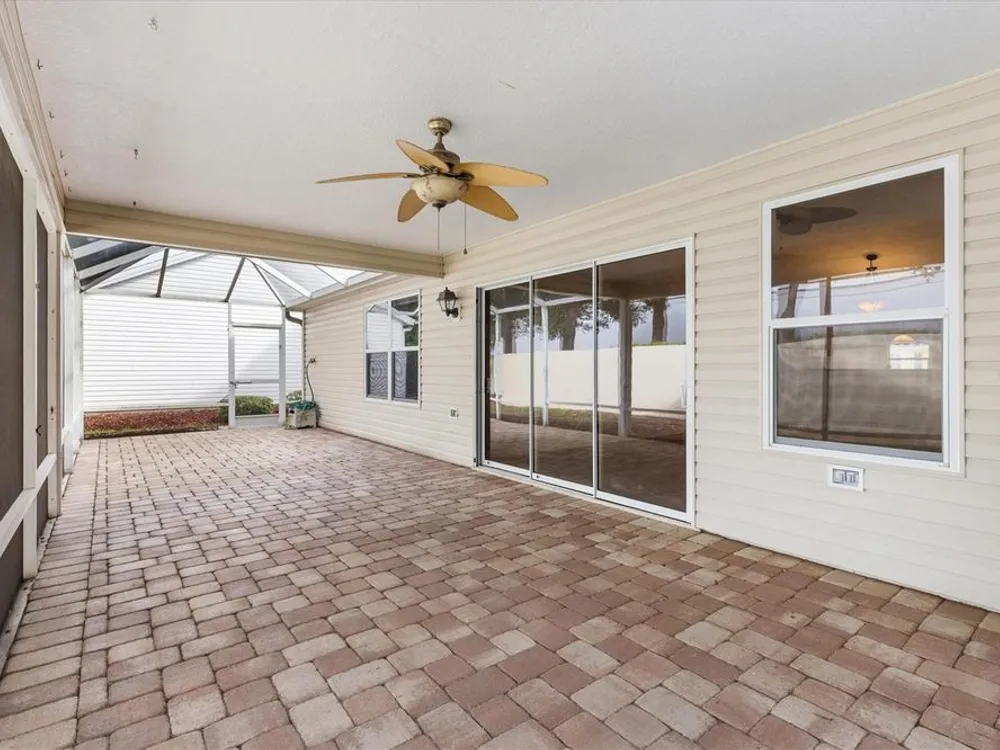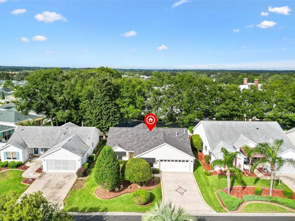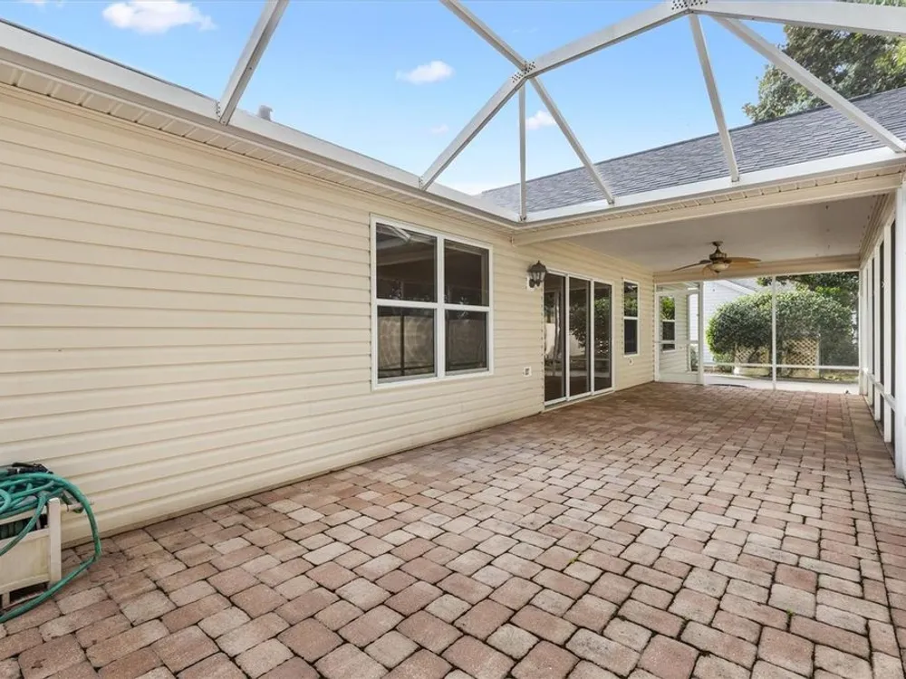 BOND PAID! NEW ROOF 2021! Looking for a Home with a Privacy Wall Behind - Here it is for You! This home is located in The Villages Florida! The home is located in the Village of Santiago near the Savannah Center plus lots of recreation centers, swimming pools, golf courses, shopping, restaurants and medical facilities. The floorplan name is a Wisteria and has 3 bedrooms, 2 bathrooms and 2 car garage plus an interior laundry room. The inside of the home has been recently painted a Natural Tan Color throughout the home. Luxury Vinyl Plank has been recently added to the home in most areas of the home - Kitchen / Dinette has ceramic tile. The Living Room has room for a HUGE TV on one of the walls plus room for your other living room furniture. The Kitchen offers lots of cabinets / countertops with natural gas range (electric range plug is available if desired). The Primary Bedroom has a large WALK-IN CLOSET. The laundry room is located right off of the Primary Bathroom where you can go into the garage from the laundry room. You can also come straight into the kitchen area from the garage. The home has a privacy wall behind the home with a large screened lanai plus a large birdcage. This outdoor area is perfect to enjoy your favorite drink and book. The front of the home has Sunbrella Awnings that were installed in 2016. The home is close to everything including Lake Sumter Landing and Spanish Springs Town Squares! Remember the BOND PAID which saves you a ton of money!