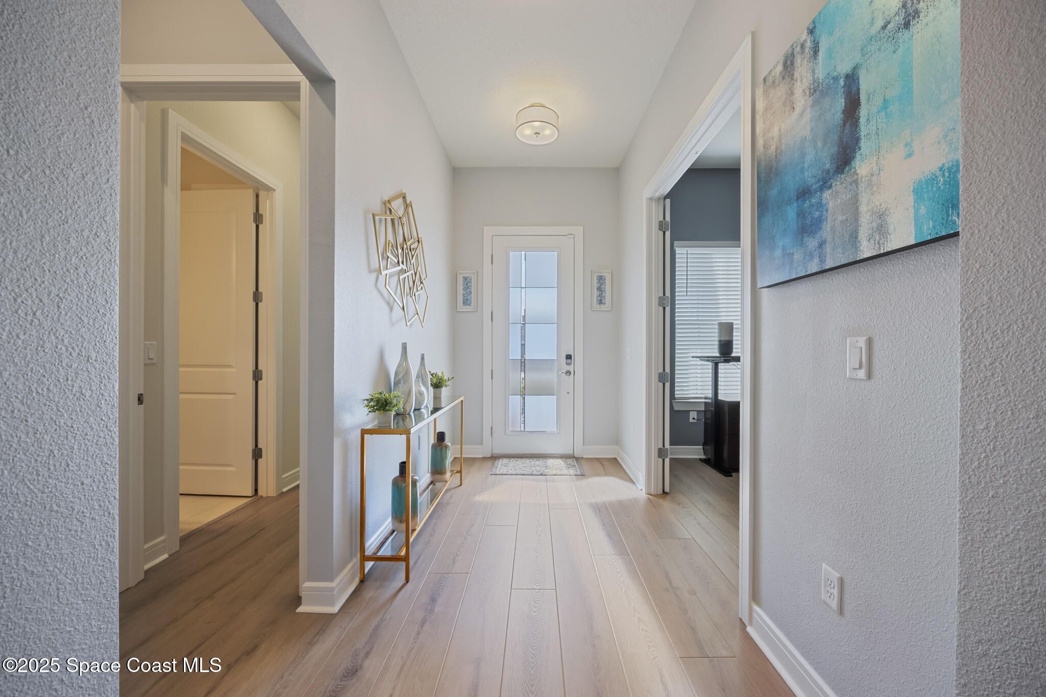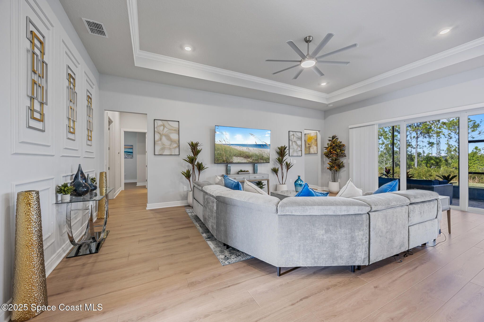 Welcome to the amazing 55 and over community of Del Webb! Resort style living everyday! This 2025 home offers a stunning entry foyer welcomes you into an open great room featuring tray ceilings, luxury vinyl flooring, an expansive sliding glass doors spanning the full length of the room. Modern kitchen offers stone countertops, a gas oven range, and ample soft close cabinetry. Spacious bedrooms, walk in closets, stone countertops! An enclosed lanai that backs up to nature! Do not let this one get away! Whether you are making a choice to make your life stress free, and moving locally or you are relocating to paradise!