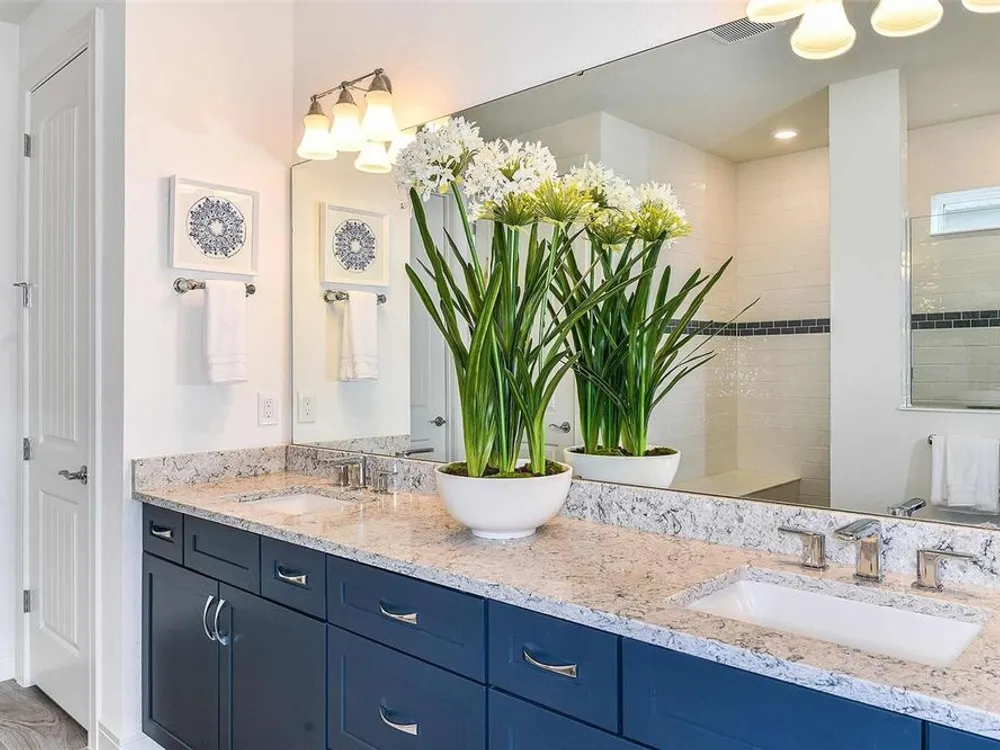 Del Webb Sunbridge is a gated 55+ active adult natural gas community offering new construction single family and villa homes with a low-maintenance lifestyle – and a Central Florida location in the center of it all. Del Webb Sunbridge offers an abundance of resort-style amenities with social events and activities centered in the 27,000-square foot clubhouse and planned by a full-time Lifestyle Director. With a zero-entry pool with lap lanes, resistance pool, poolside hammocks, and heated spa, sports courts, a movement studio, walking trails and more. Meet new friends at a resident club, take a painting class at one of the many art studios, attend a concert or show at the amphitheater, grab a bite at the on-site tavern & grille, or chat at the fire pits and grille pavilion. Get spoiled at Del Webb Sunbridge - after all, this is your time! Your home's exterior and yard maintenance are included, and fiber network provides up to gigabit internet speed. Del Webb Sunbridge’s resort amenities, sports courts, and Lifestyle Director with nearby Lake Nona truly make this the ideal neighborhood and a perfect location to call home. The spacious single-story Stardom home design by Del Webb is a dream for those who love to entertain and value flow and function. This home features our stone masonry accented Craftsman exterior, 3 bedrooms, 2 full bathrooms, a powder room, a flex room, an expansive open concept kitchen, café and gathering room combination, a covered lanai with outdoor kitchen pre-plumbing and pool/spa pre-wiring, and a 3-car front load garage with additional storage. This home is filled with natural light and open living areas. The gourmet entertaining kitchen features built-in stainless-steel appliances – a large, wrapped Brellin white center island, 42” soft-close white cabinets, stunning Parisien Blue quartz countertops, pendant lighting pre-wiring, and a walk-in pantry, Enjoy effortless indoor/outdoor entertaining thanks to pocket sliding glass doors between the gathering room, café and covered lanai. Your owner’s suite features a large en suite bathroom with a linen closet, a dual sink Blanco Maple quartz-topped double white vanity, a luxe spa walk-in shower, private water closet and spacious walk-in closet. Two additional bedrooms, the second bathroom, laundry room, flex room and powder room offer space and privacy for everyone. Professionally curated design selections for this home include our stone masonry accented Craftsman exterior, 3-car garage with EV charging and upgraded interior doors, built-in kitchen appliances and entertaining package, luxe Owner's bathroom, upgraded secondary bathrooms, decorative ceiling in the Owner’s suite, pocket sliding glass doors at the gathering room, Graystone Dark wood look porcelain tile flooring throughout, upgraded laundry room with washer, dryer, built-in sink and Blanco Maple quartz-topped white cabinets, covered lanai with and outdoor kitchen pre-plumbing, and more!