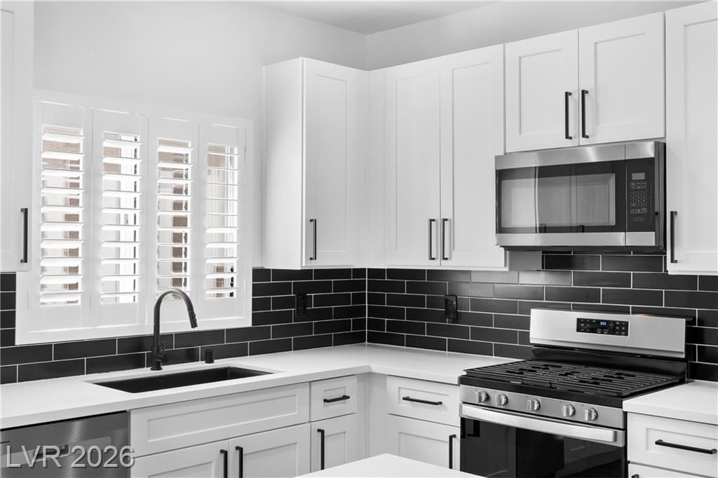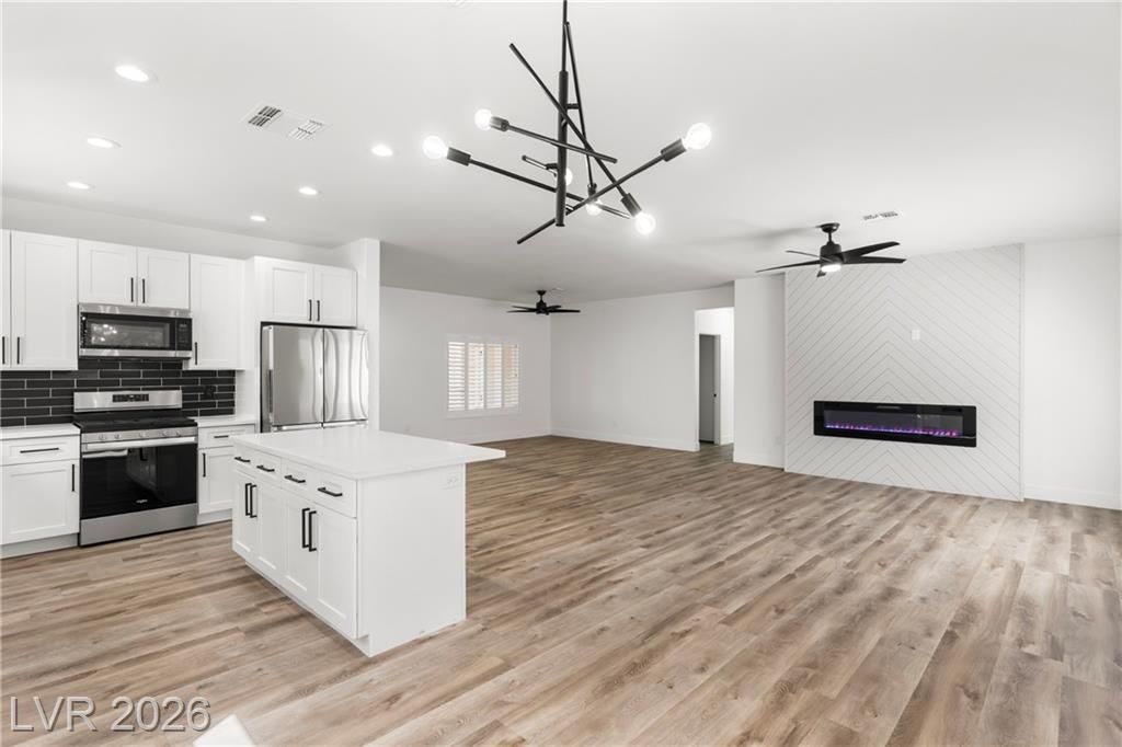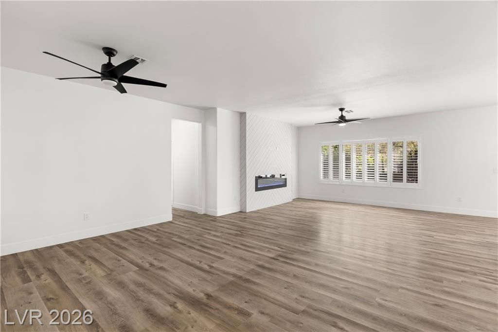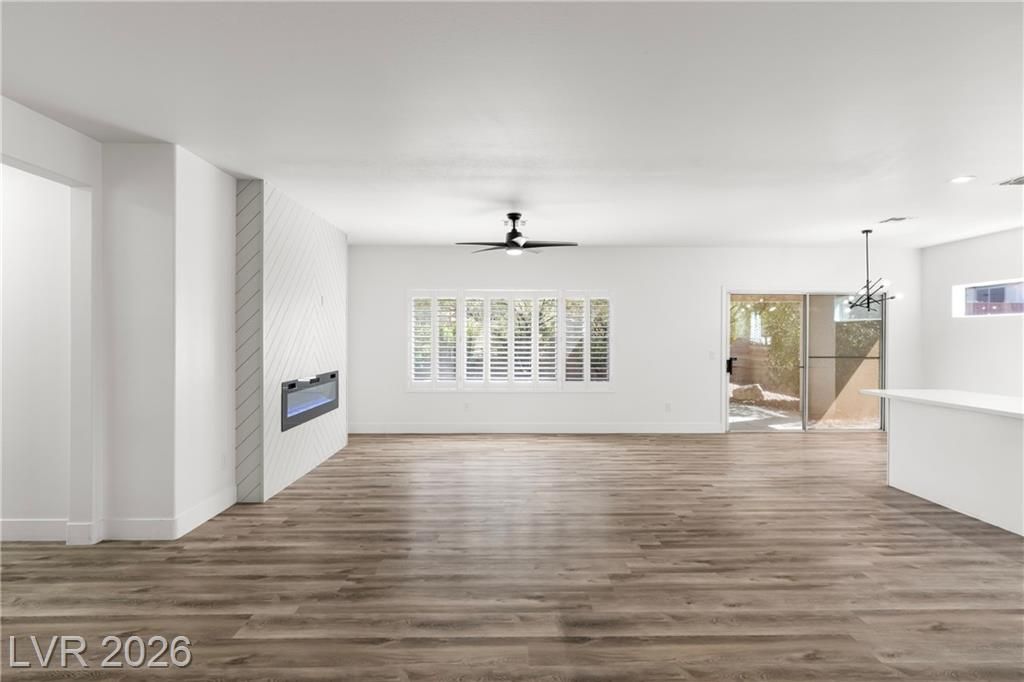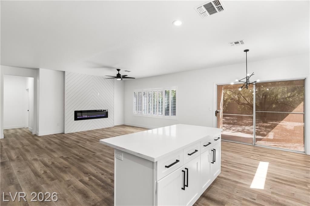 Turnkey, fully remodeled home in the highly desirable 55+ Sun City Anthem community! This stunning 2 bedroom and 2 bath Jefferson model has been completely upgraded with modern finishes throughout. Enjoy an open, light-filled layout featuring new elegant shutters. The designer kitchen shines with quartz countertops, soft-close cabinetry, and stainless steel appliances, flowing seamlessly into the inviting living space with a sleek LED fireplace—perfect for relaxing or entertaining. Both bathrooms have been beautifully renovated with contemporary vanities, updated showers, and stylish fixtures, creating a spa-like feel. Step outside to your low-maintenance backyard featuring newly installed putting green, ideal for easy outdoor living year-round. Additional highlights include built-in garage storage, a whole house LifeSource water filtration system, and thoughtful upgrades throughout.