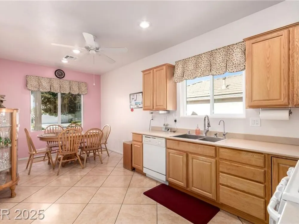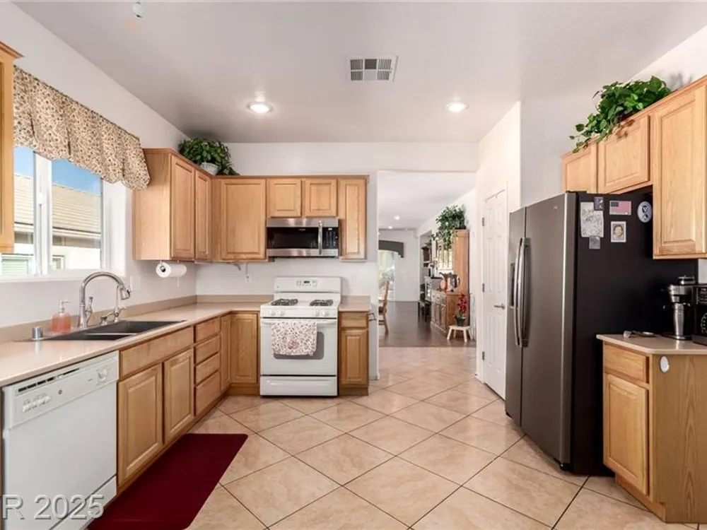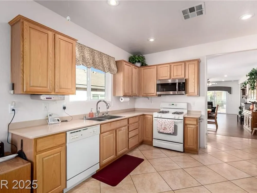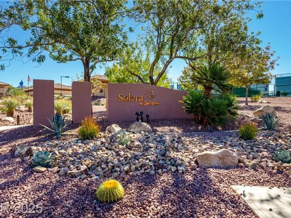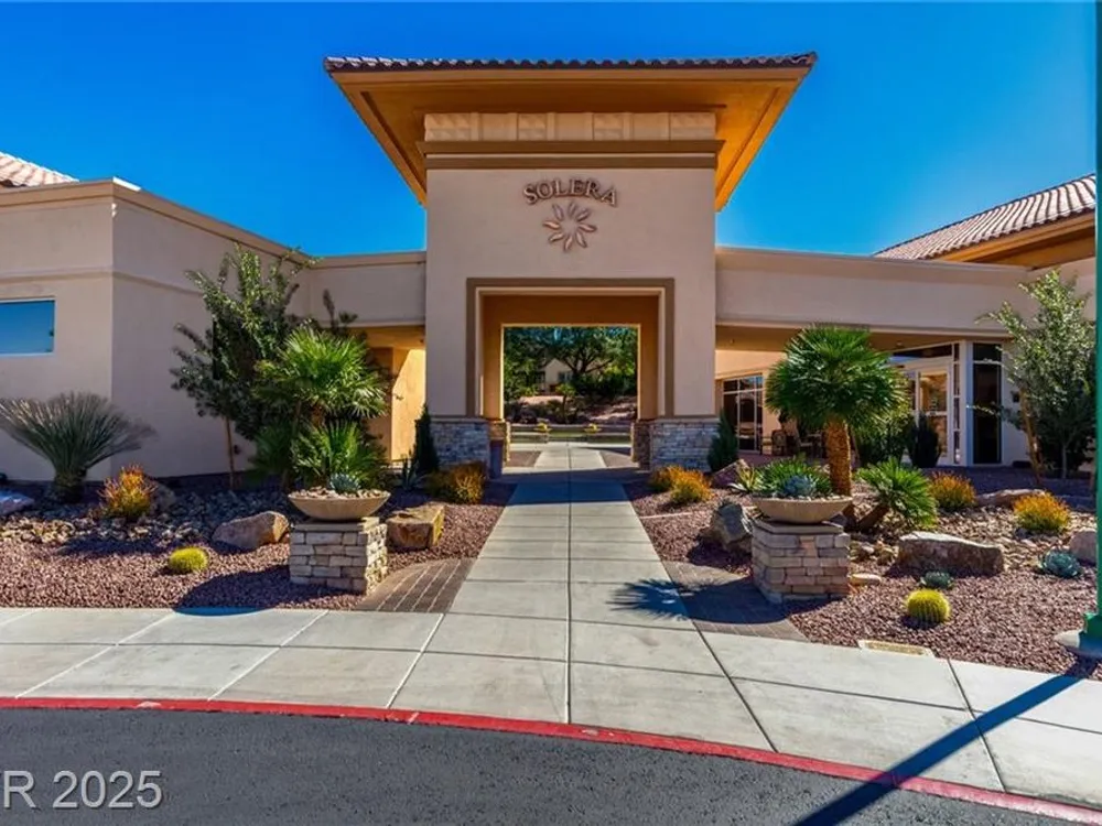 Welcome to your charming retreat in the vibrant 55+ community of Solera! This adorable 3-bedroom home offers comfort, style, and a carefree lifestyle. From the moment you arrive, the inviting 2-car garage and attractive curb appeal set the tone. Inside, enjoy elegant tile and wood-look floors that flow through a bright living and dining area perfect for relaxing or entertaining. The kitchen features warm wood cabinetry, essential appliances, ample counters, and a pantry for all your cooking adventures. Unwind in the spacious main bedroom with its private bath, dual sinks, and walk-in closet. Check outside to a serene backyard with a covered patio ideal for morning coffee or sunset gatherings. Experience resort-style living with community amenities like pools, spas, tennis, pickleball, fitness center, clubhouse, and a lively social calendar. Live the good life in Solera, where comfort meets community! Make this beautiful home yours today!