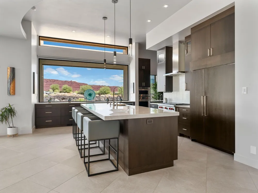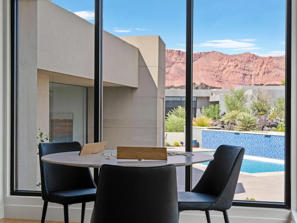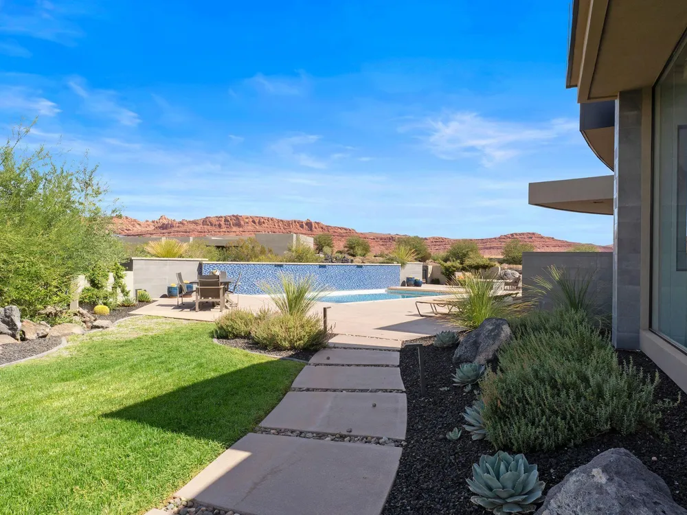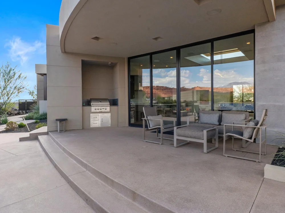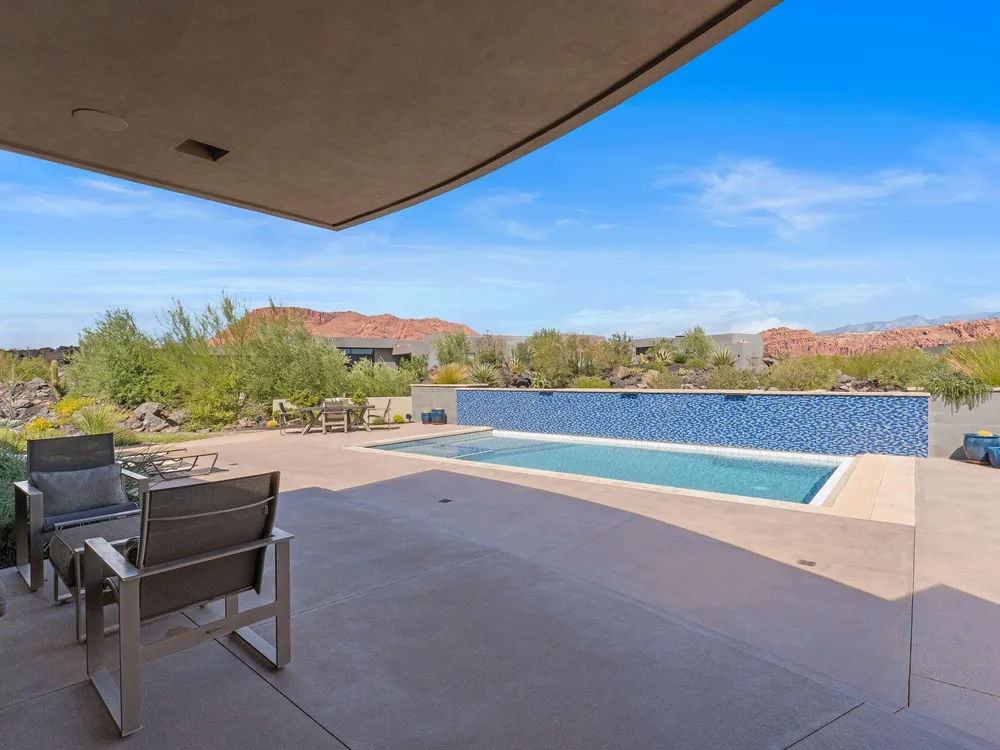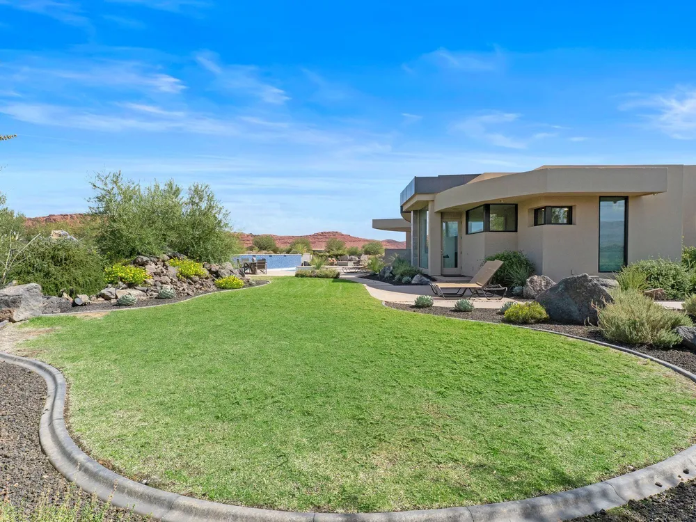 ***Furniture Package, TV's & Electronics Included** This gem is what you've been looking for! A true Entrada masterpiece, nestled in the desirable and prestigious lava rock of Chaco West at Entrada. This magnificent home sits on 1.15 acres on a quiet cul-de-sac street, boasting breathtaking views including Snow Canyon, Pine Valley Mountain and Red Mountain. Chef's kitchen complete with SubZero refrigerator/freezer, Wolf oven, Wolf steam oven, Wolf range top, 2 Miele dishwashers, beverage cooler and additional refrigerator/freezer in prep kitchen. Private Casita with beverage cooler and full size washer/dryer. Smart home features include Lutron lighting, Lutron shades, nest thermostats, security system with cameras, Sonos (inside and outside). Skylights and clerestory windows throughout fill this home with natural light. Custom salt water swimming pool with spa, water features, and retractable cover; additional space for putting range at back of property if one desires. 4 car garage (separate garage entrance for golf cart) includes built in storage for all of your toys and golf clubs; equipped with plug-in for an electric car. Custom chandeliers by Hammerton studio....no upgrade was overlooked in this home. Designed by Rob McQuay and built by Shakespeare Development - this home is sure to impress!
