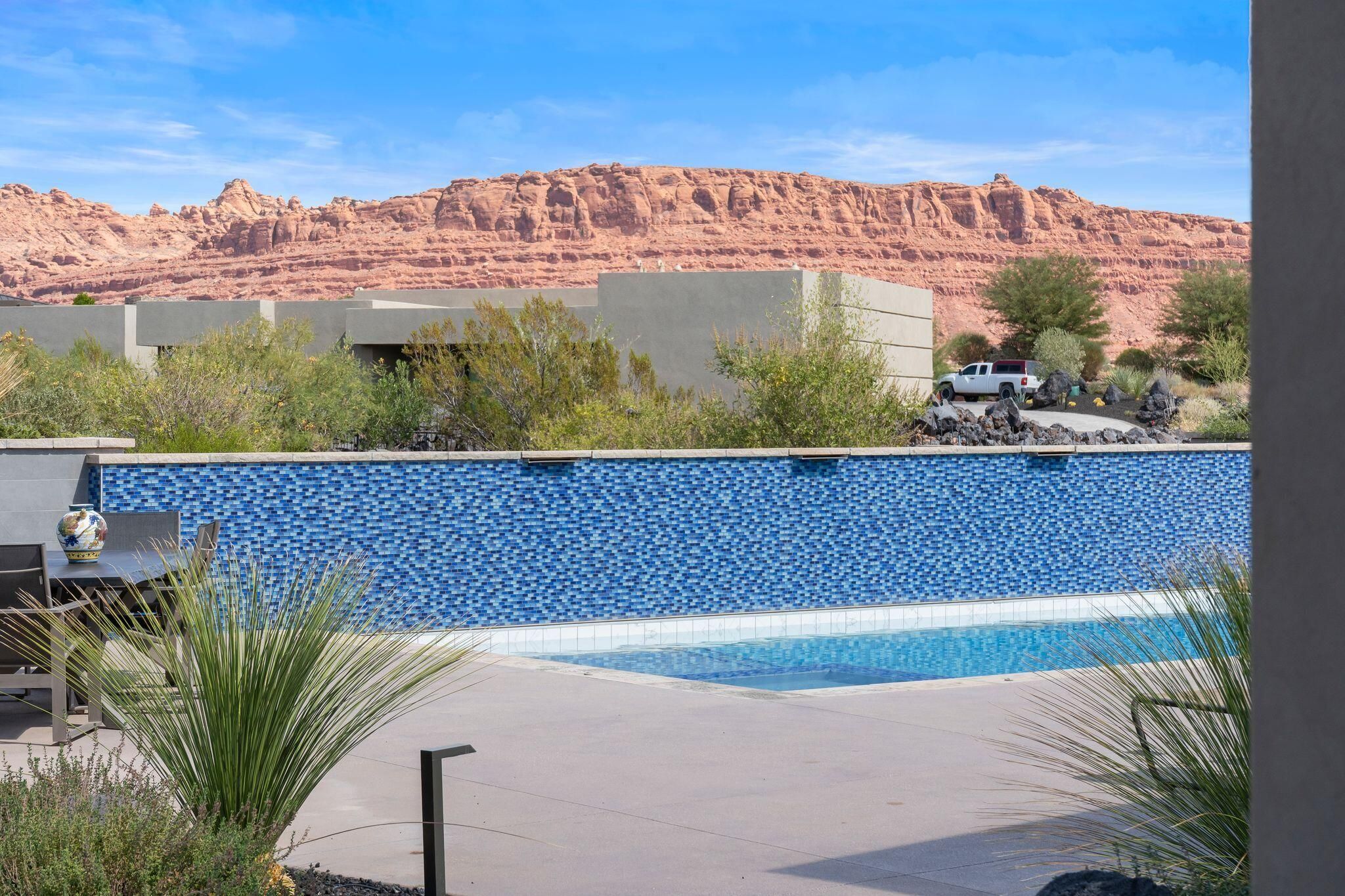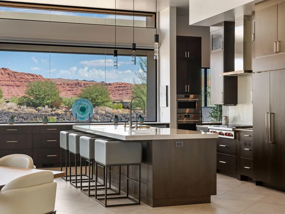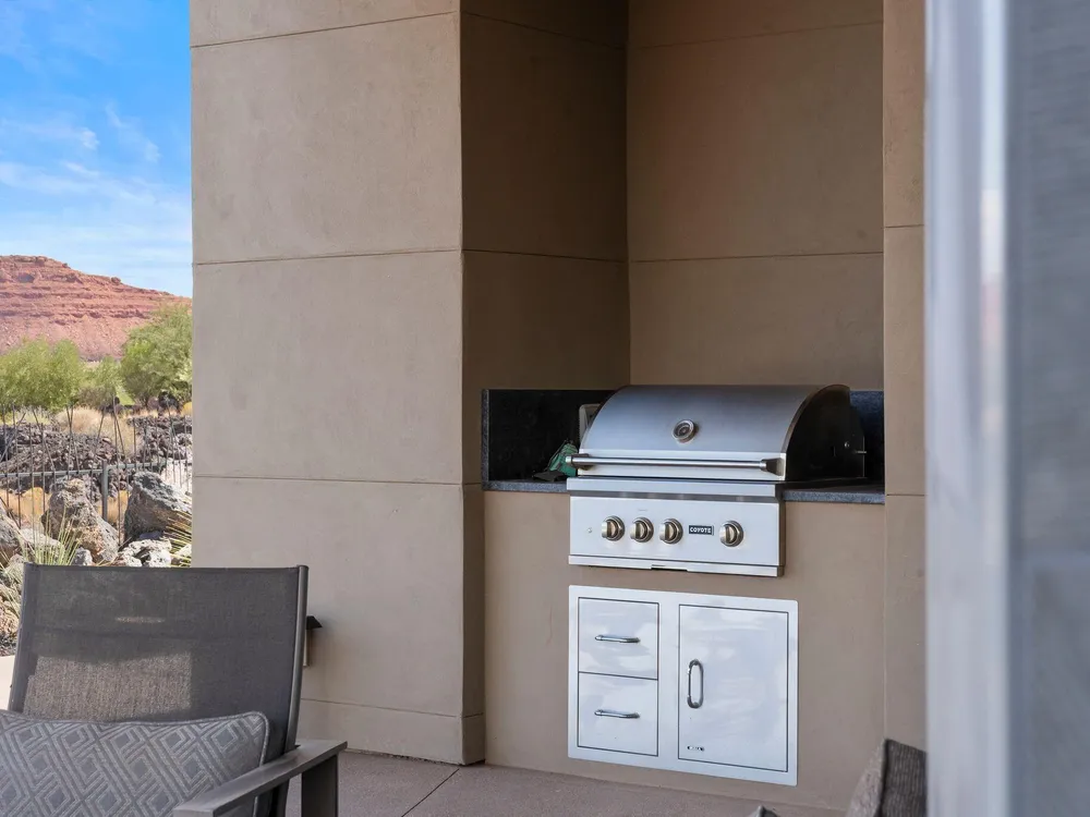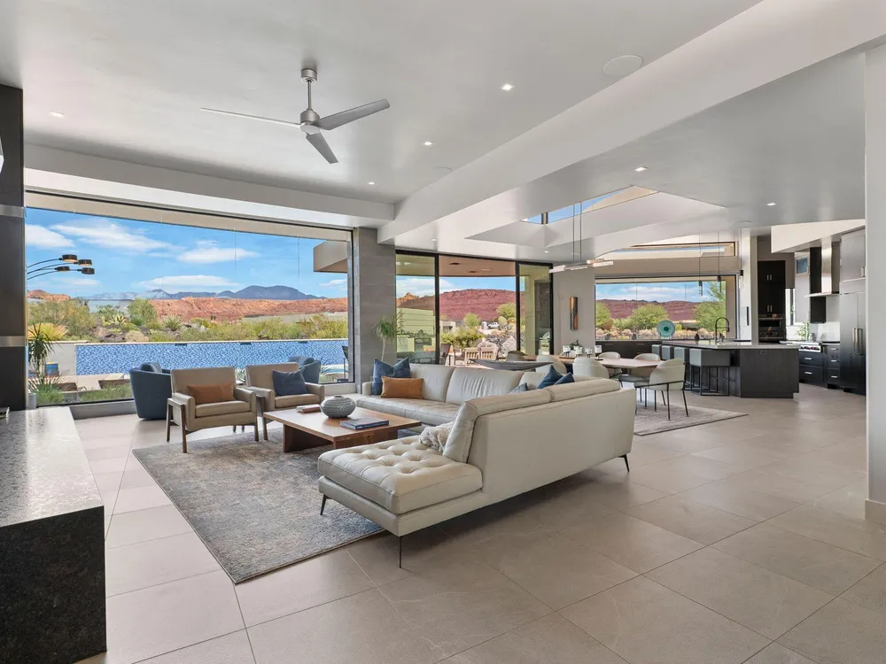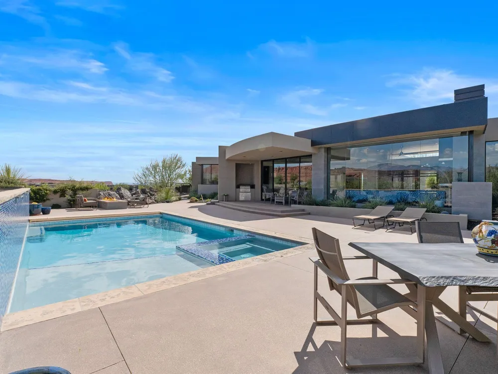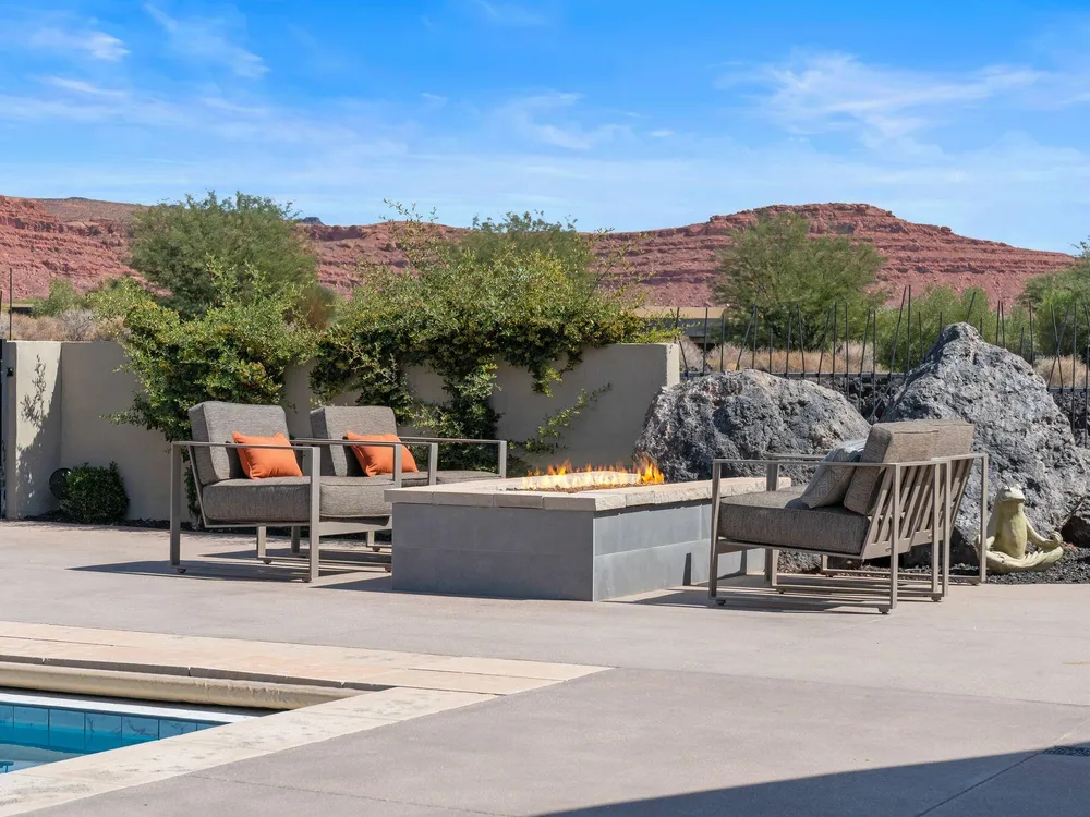 ***Furniture Package, TV's & Electronics Included** This gem is what you've been looking for! A true Entrada masterpiece, nestled in the desirable and prestigious lava rock of Chaco West at Entrada. This magnificent home sits on 1.15 acres on a quiet cul-de-sac street, boasting breathtaking views including Snow Canyon, Pine Valley Mountain and Red Mountain. Chef's kitchen complete with SubZero refrigerator/freezer, Wolf oven, Wolf steam oven, Wolf range top, 2 Miele dishwashers, beverage cooler and additional refrigerator/freezer in prep kitchen. Private Casita with beverage cooler and full size washer/dryer. Smart home features include Lutron lighting, Lutron shades, nest thermostats, security system with cameras, Sonos (inside and outside). Skylights and clerestory windows throughout fill this home with natural light. Custom salt water swimming pool with spa, water features, and retractable cover; additional space for putting range at back of property if one desires. 4 car garage (separate garage entrance for golf cart) includes built in storage for all of your toys and golf clubs; equipped with plug-in for an electric car. Custom chandeliers by Hammerton studio....no upgrade was overlooked in this home. Designed by Rob McQuay and built by Shakespeare Development - this home is sure to impress!