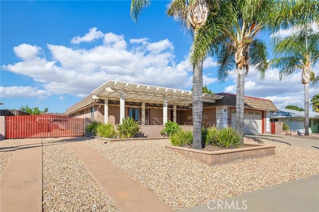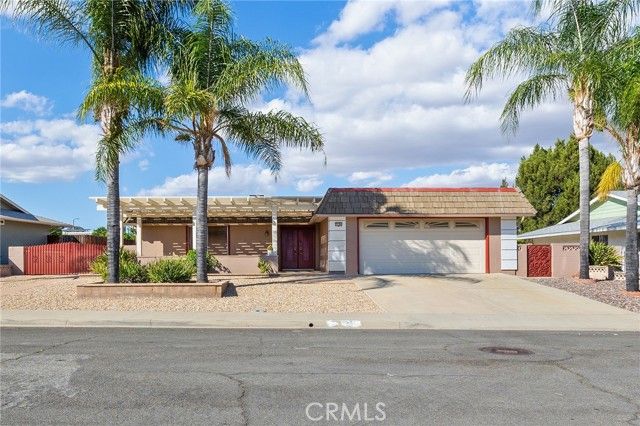 Welcome to this charming single-story 55+ home in the heart of Menifee, offering comfort, convenience, and hard-to-find RV parking with room for both an RV and a boat. This well-maintained 3-bedroom, 2-bath property also includes a versatile office/den, perfect for work, hobbies, or extra guest space. Step inside to an inviting open-concept layout with new interior paint and new carpet in the bedrooms and office. The kitchen features a double oven, ideal for cooking and entertaining. The living and dining areas open to a large covered patio, creating a seamless indoor-outdoor flow. The backyard offers a peaceful setting with a lush grass lawn, perfect for relaxing or enjoying the sunshine. A nice front courtyard adds even more outdoor charm. Low taxes and low HOA! This home is ideally located just a 5-minute bike ride to Sun City Civic Association amenities, and is centrally positioned near all Menifee conveniences, including shopping, dining, medical facilities, and numerous churches. Commuters will appreciate quick access to both the I-15 and I-215 freeways, and the proximity to nearby hospitals adds peace of mind. A wonderful opportunity to enjoy single-story living, abundant parking, and a vibrant 55+ community lifestyle.