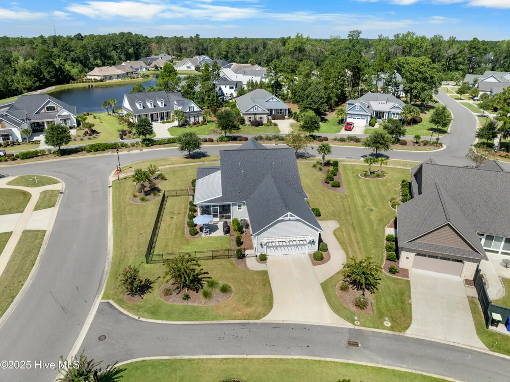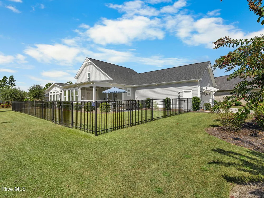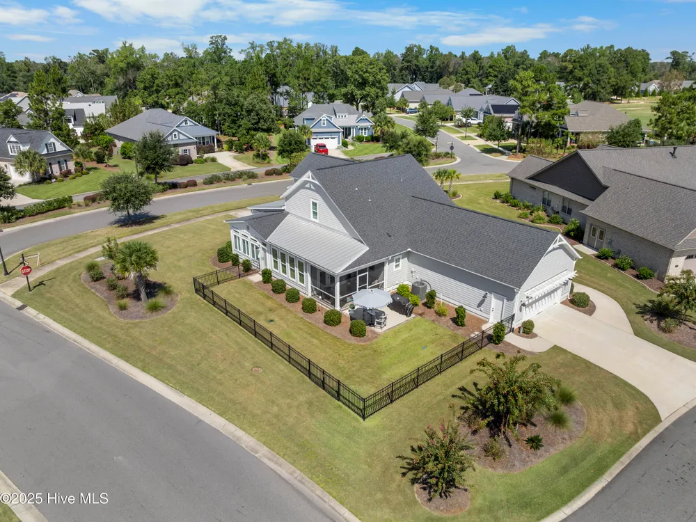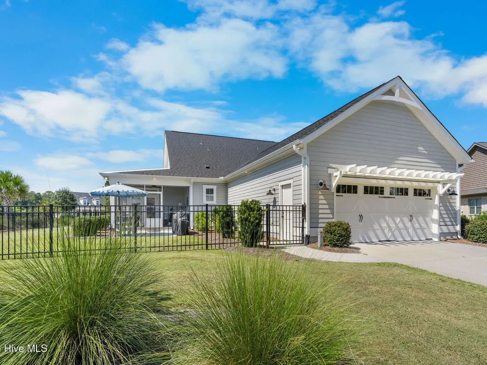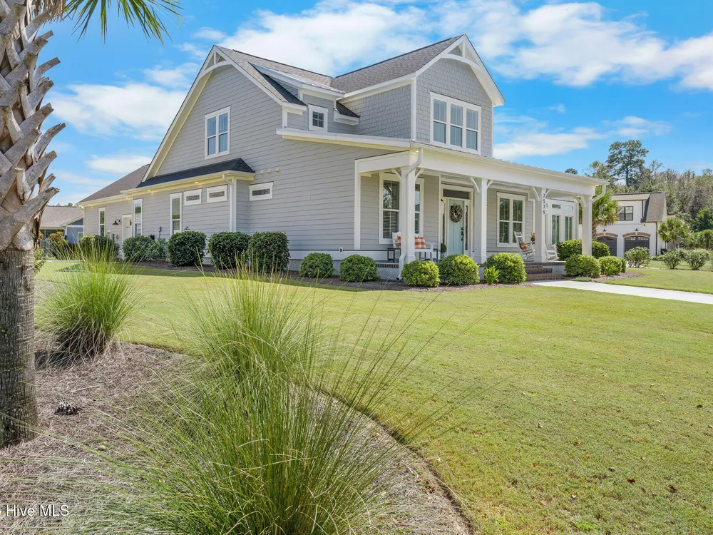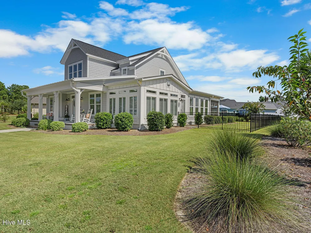 Welcome to your next dream home in the prestigious Compass Pointe community in Leland! This stunning former builder showcase home is move-in ready and features the sought-after Hayden plan by Legacy by Bill Clark, offering quality craftsmanship and thoughtful upgrades throughout. The residence boasts a rear-loaded garage with private alleyway access and a dedicated golf cart entry, ensuring convenience for all your needs. From the inviting oversized front porch to the elegant, coffered ceilings in the great room, every detail has been designed for comfort and style. The upgraded Prestige kitchen is a chef's delight, featuring quartz countertops, Frigidaire Pro stainless steel appliances, a gas cooktop with pot filler, custom backsplash, and a wine fridge for entertaining. Relax by the cozy pass-through fireplace that connects the great room and four-season sunroom or enjoy the built-in bookshelves and brick-accented fireplace in the sunroom, perfect for sunsets. The home is further enhanced by 7'' baseboard moldings, wainscoting, abundant windows, and transoms throughout. Retreat to the luxurious owner's suite with detailed ceilings, his-and-hers closets, and a walk-in tile shower. LVP and tile flooring cover the first floor, while plush carpeting and tile complete the upstairs, which includes two bedrooms, a full bath, and a craft room. Outside, the oversized corner homesite features pristine landscaping, a black aluminum fenced yard, relaxing patio, and screened porch. As a resident, enjoy exclusive access to Compass Pointe's resort-style amenities, including the Grand Lanai Clubhouse, Health and Wellness Center, indoor and outdoor pools, lazy river, tennis and pickleball courts, and a large events lawn. Golf and social memberships are available at the Compass Pointe Golf Club, offering an 18-hole course, restaurant, and state-of-the-art facilities. Don't wait to build--move in and start living your best life today!