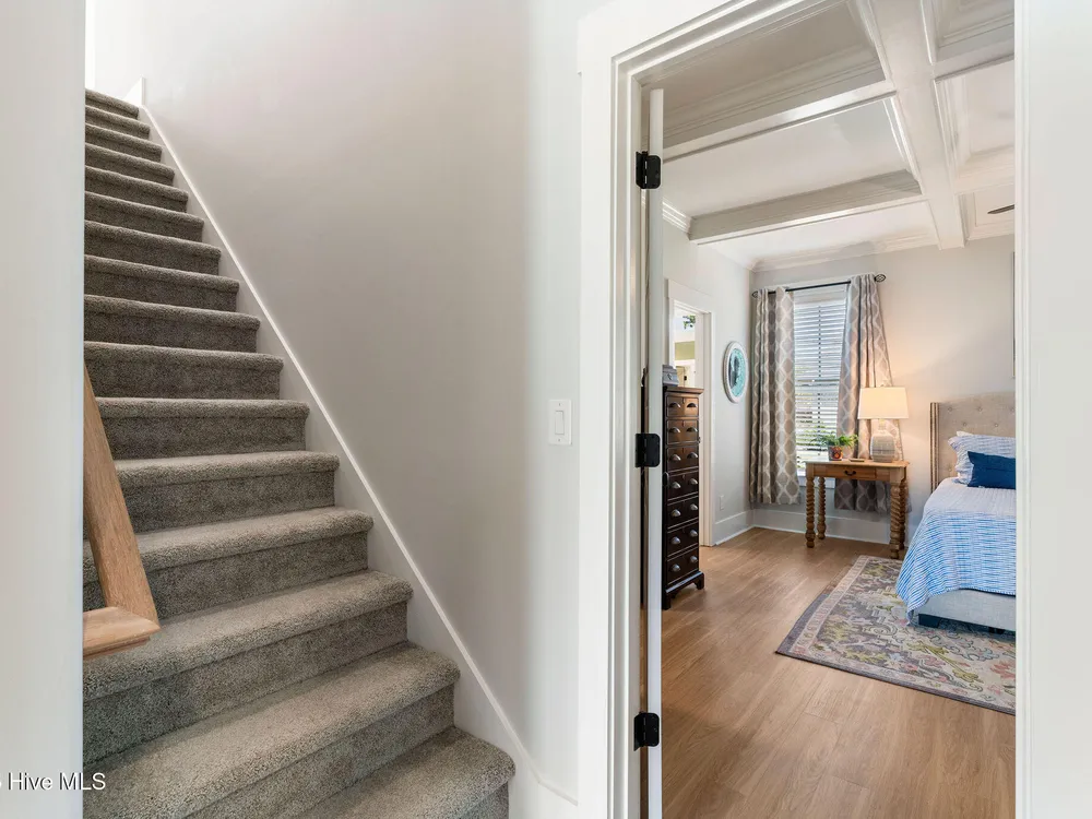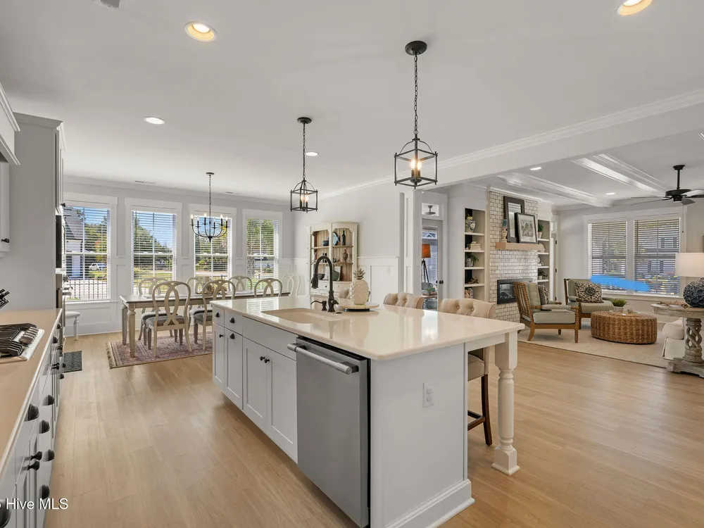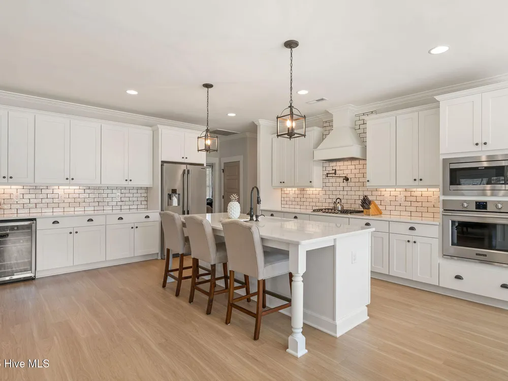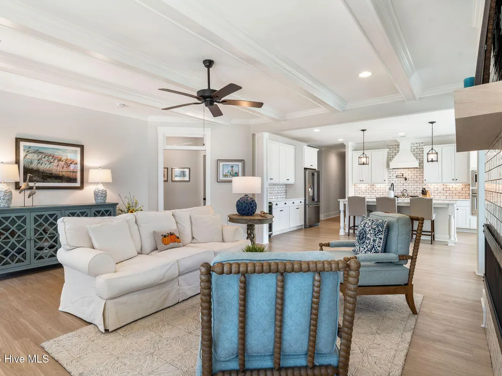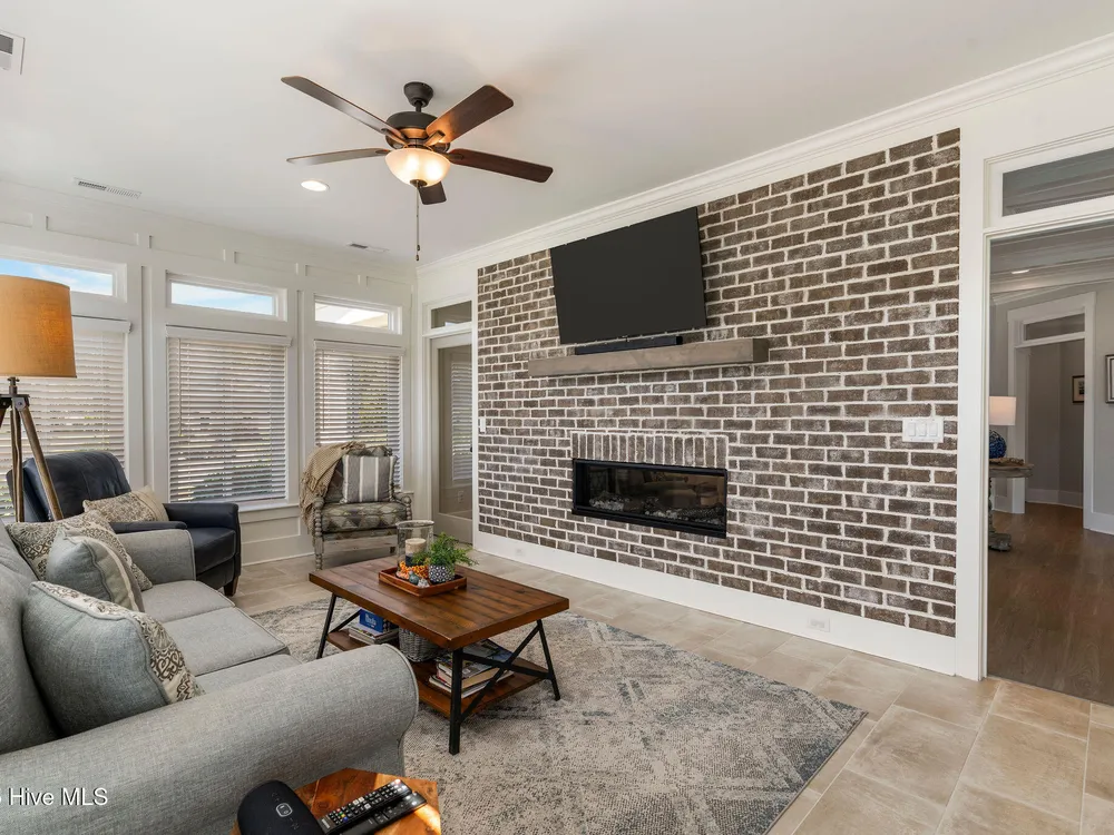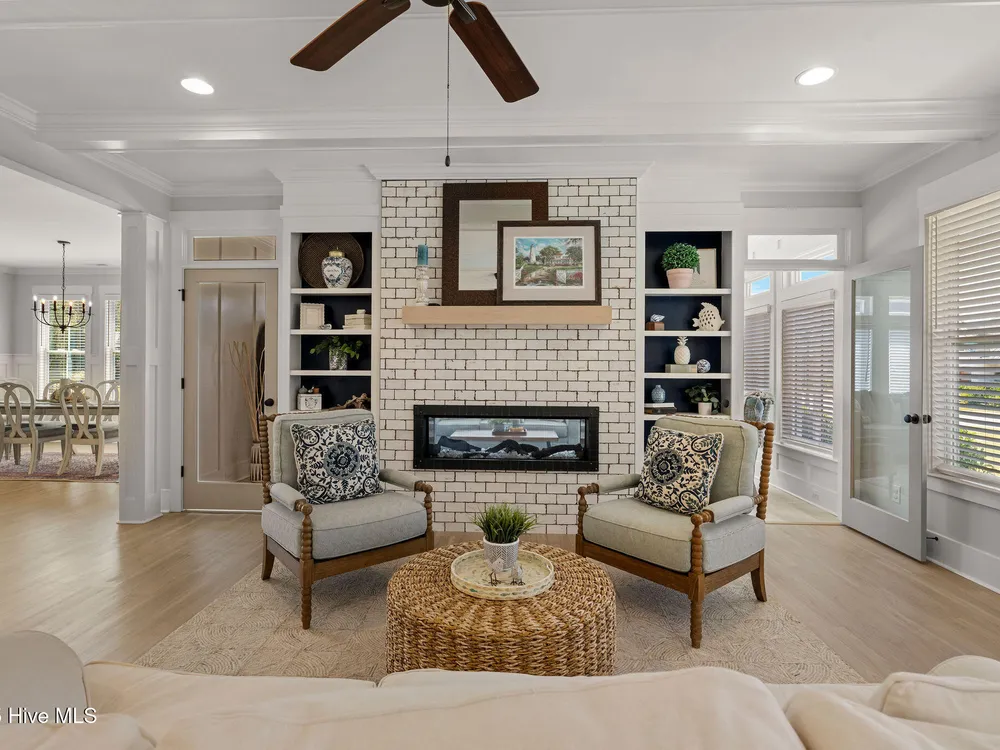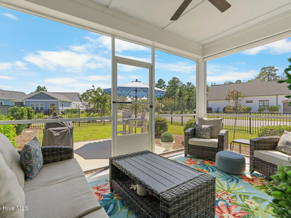 Welcome to your next dream home in the prestigious Compass Pointe community in Leland! This stunning former builder showcase home is move-in ready and features the sought-after Hayden plan by Legacy by Bill Clark, offering quality craftsmanship and thoughtful upgrades throughout. The residence boasts a rear-loaded garage with private alleyway access and a dedicated golf cart entry, ensuring convenience for all your needs. From the inviting oversized front porch to the elegant, coffered ceilings in the great room, every detail has been designed for comfort and style. The upgraded Prestige kitchen is a chef's delight, featuring quartz countertops, Frigidaire Pro stainless steel appliances, a gas cooktop with pot filler, custom backsplash, and a wine fridge for entertaining. Relax by the cozy pass-through fireplace that connects the great room and four-season sunroom or enjoy the built-in bookshelves and brick-accented fireplace in the sunroom, perfect for sunsets. The home is further enhanced by 7'' baseboard moldings, wainscoting, abundant windows, and transoms throughout. Retreat to the luxurious owner's suite with detailed ceilings, his-and-hers closets, and a walk-in tile shower. LVP and tile flooring cover the first floor, while plush carpeting and tile complete the upstairs, which includes two bedrooms, a full bath, and a craft room. Outside, the oversized corner homesite features pristine landscaping, a black aluminum fenced yard, relaxing patio, and screened porch. As a resident, enjoy exclusive access to Compass Pointe's resort-style amenities, including the Grand Lanai Clubhouse, Health and Wellness Center, indoor and outdoor pools, lazy river, tennis and pickleball courts, and a large events lawn. Golf and social memberships are available at the Compass Pointe Golf Club, offering an 18-hole course, restaurant, and state-of-the-art facilities. Don't wait to build--move in and start living your best life today!