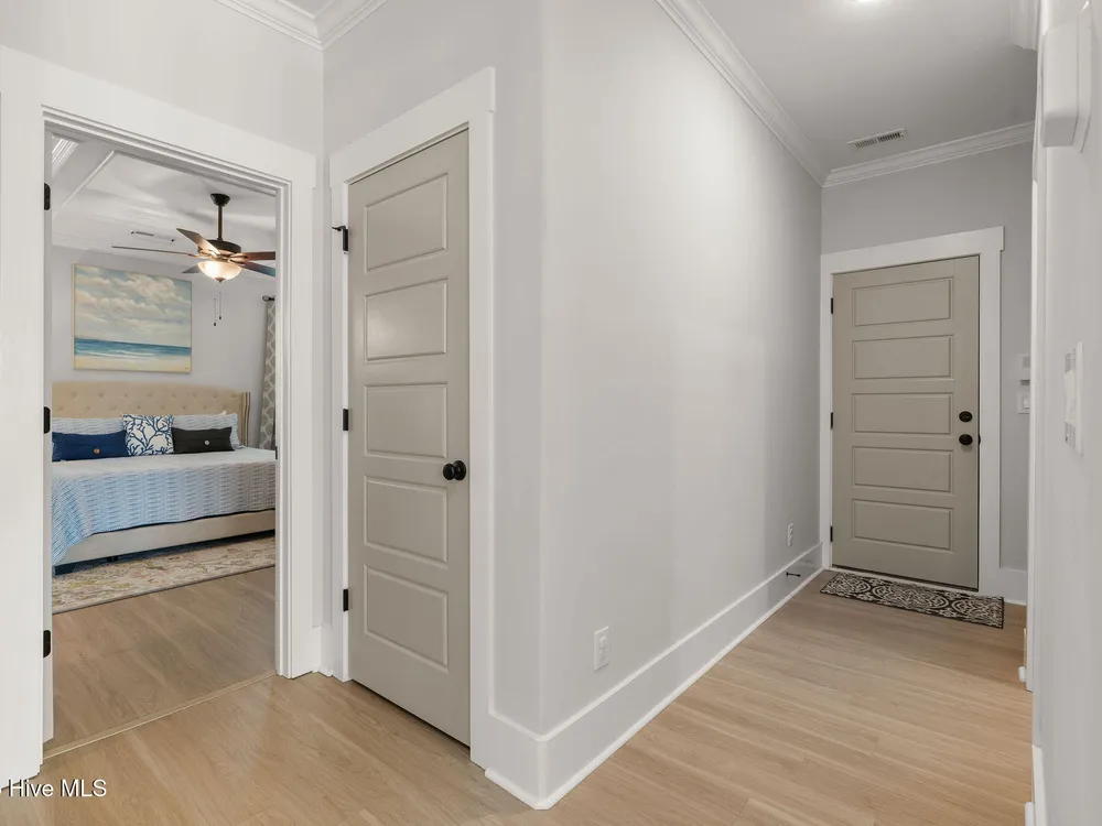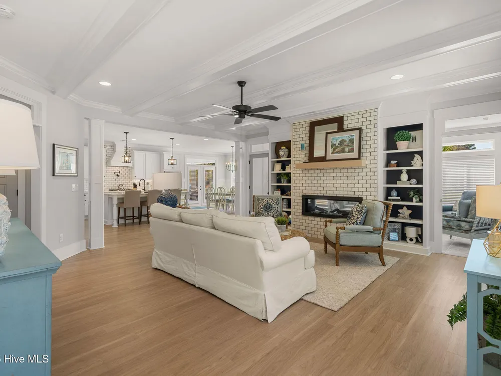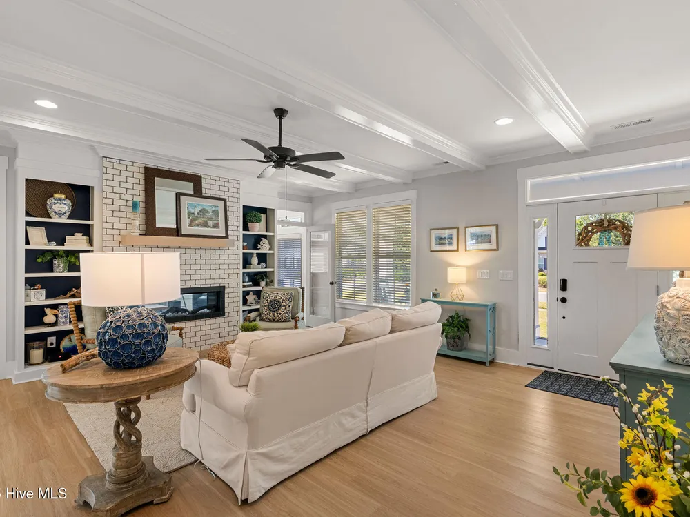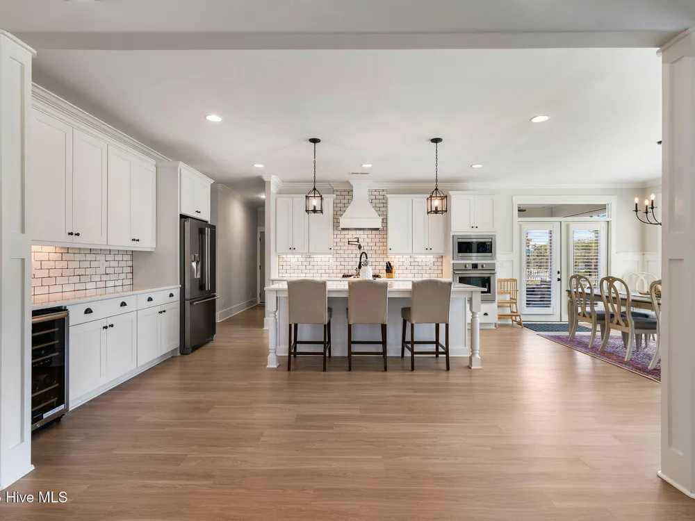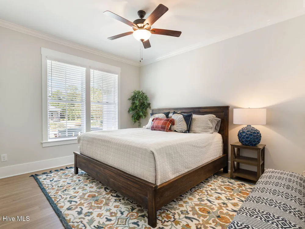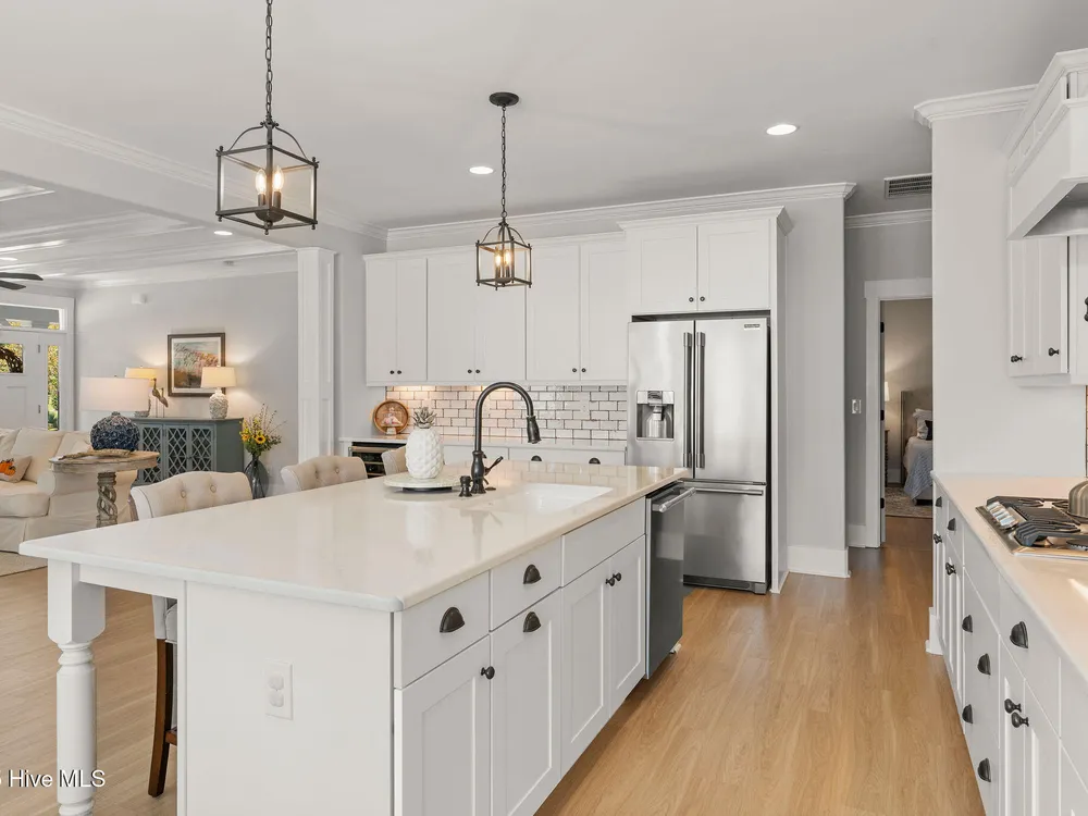 Welcome to your next dream home in the prestigious Compass Pointe community in Leland! This stunning former builder showcase home is move-in ready and features the sought-after Hayden plan by Legacy by Bill Clark, offering quality craftsmanship and thoughtful upgrades throughout. The residence boasts a rear-loaded garage with private alleyway access and a dedicated golf cart entry, ensuring convenience for all your needs. From the inviting oversized front porch to the elegant, coffered ceilings in the great room, every detail has been designed for comfort and style. The upgraded Prestige kitchen is a chef's delight, featuring quartz countertops, Frigidaire Pro stainless steel appliances, a gas cooktop with pot filler, custom backsplash, and a wine fridge for entertaining. Relax by the cozy pass-through fireplace that connects the great room and four-season sunroom or enjoy the built-in bookshelves and brick-accented fireplace in the sunroom, perfect for sunsets. The home is further enhanced by 7'' baseboard moldings, wainscoting, abundant windows, and transoms throughout. Retreat to the luxurious owner's suite with detailed ceilings, his-and-hers closets, and a walk-in tile shower. LVP and tile flooring cover the first floor, while plush carpeting and tile complete the upstairs, which includes two bedrooms, a full bath, and a craft room. Outside, the oversized corner homesite features pristine landscaping, a black aluminum fenced yard, relaxing patio, and screened porch. As a resident, enjoy exclusive access to Compass Pointe's resort-style amenities, including the Grand Lanai Clubhouse, Health and Wellness Center, indoor and outdoor pools, lazy river, tennis and pickleball courts, and a large events lawn. Golf and social memberships are available at the Compass Pointe Golf Club, offering an 18-hole course, restaurant, and state-of-the-art facilities. Don't wait to build--move in and start living your best life today!