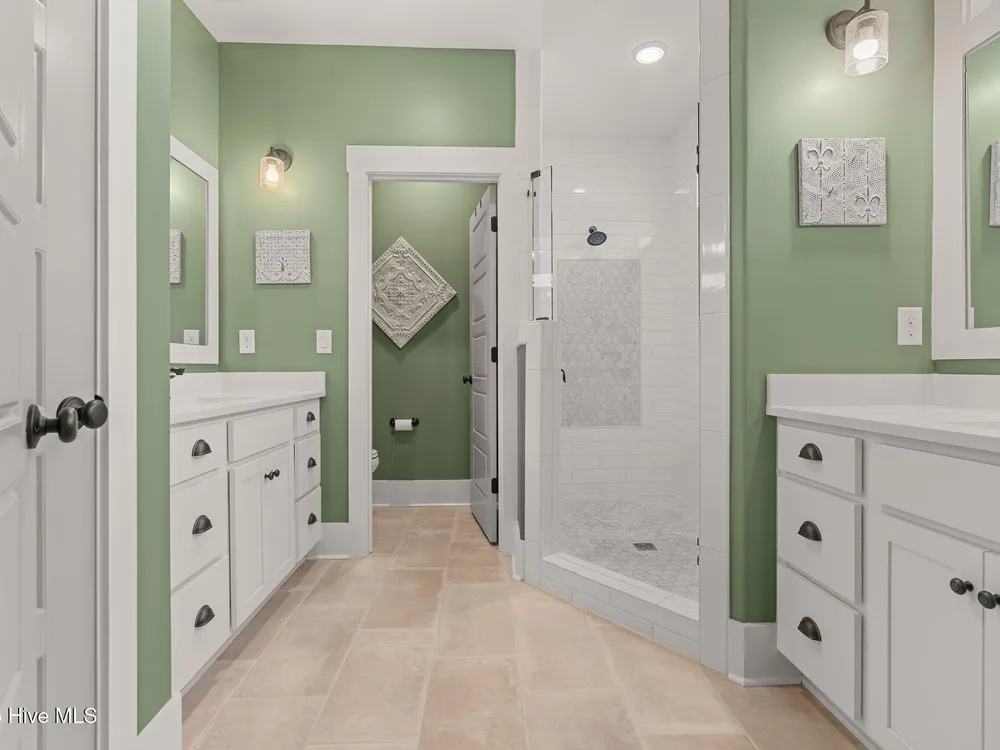 - Blinds/Shades, Solid Surface, Walk-In Closet(s), Walk-in Shower, Tray Ceiling(s), Entrance Foyer, Pantry, Master Downstairs, Kitchen Island, Gas Log, Ceiling Fan(s), Bookcases