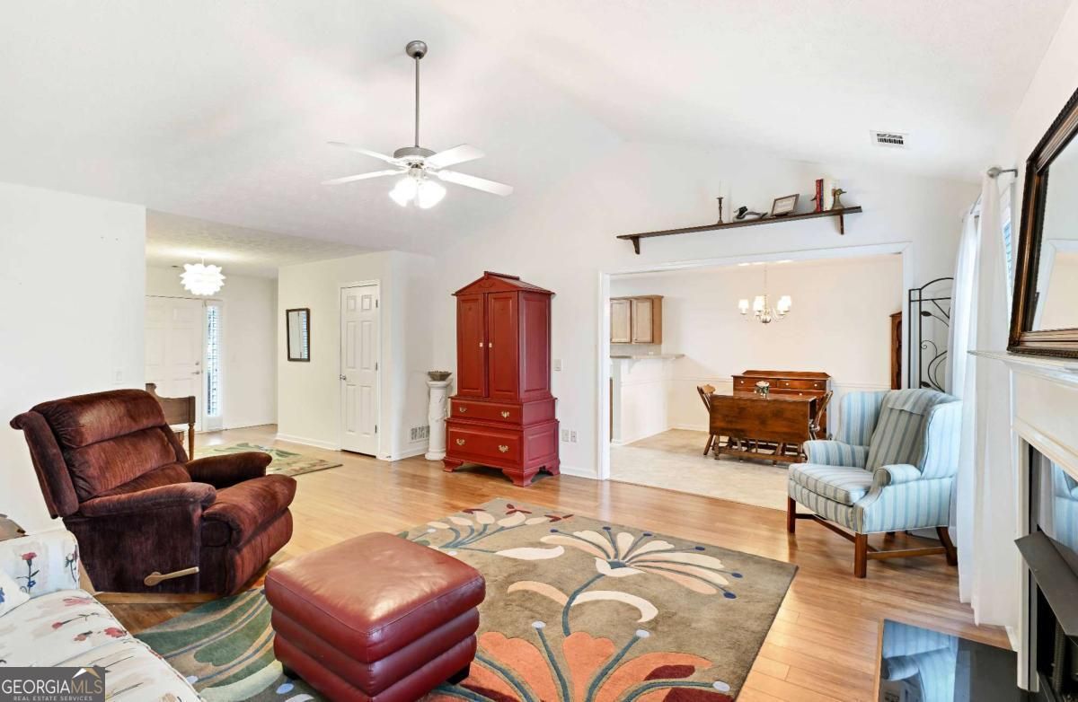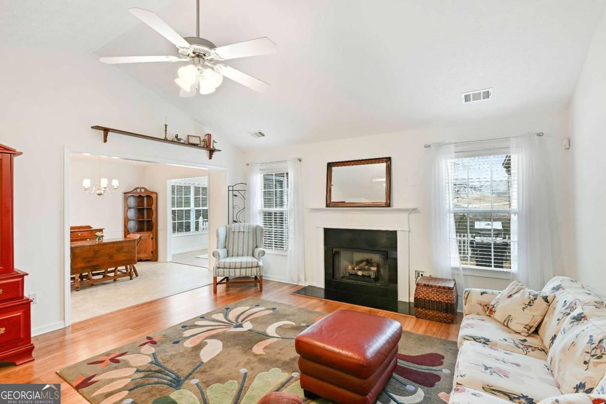 This well-maintained, spacious and easy living two-bedroom, two-bath home in an active adult community in Winder welcomes you with a light-filled entry foyer that opens into a spacious living room with cathedral ceilings, a cozy fireplace flanked by two bright windows, and an open sightline into the inviting eat-in kitchen, where warm stained cabinetry, a center island, and a casual breakfast bar create a perfect space for morning coffee or easy entertaining; just beyond, a door leads into a generous formal dining room framed by a large double window, while the opposite side of the kitchen flows into a sunny sitting area and sunroom with an exterior door that opens onto a private brick patio and small fenced backyard - ideal for quiet evenings or gardening - and the thoughtful layout continues with a large, carpeted primary suite on the main level featuring a serene ensuite bath with dual vanities, a step-in shower with built-in seat, and a walk-in closet, plus a comfortable second bedroom and full bath with a shower/tub combination, offering both comfort and convenience in a peaceful, low-maintenance setting. Easy access to shopping, entertainment, and set within a wonderful community with a homeowners association, pool, tennis courts, grounds and exterior maintenance and trash pickup, this property offers all of the conveniences, without all of the upkeep. Schedule your showing today!!