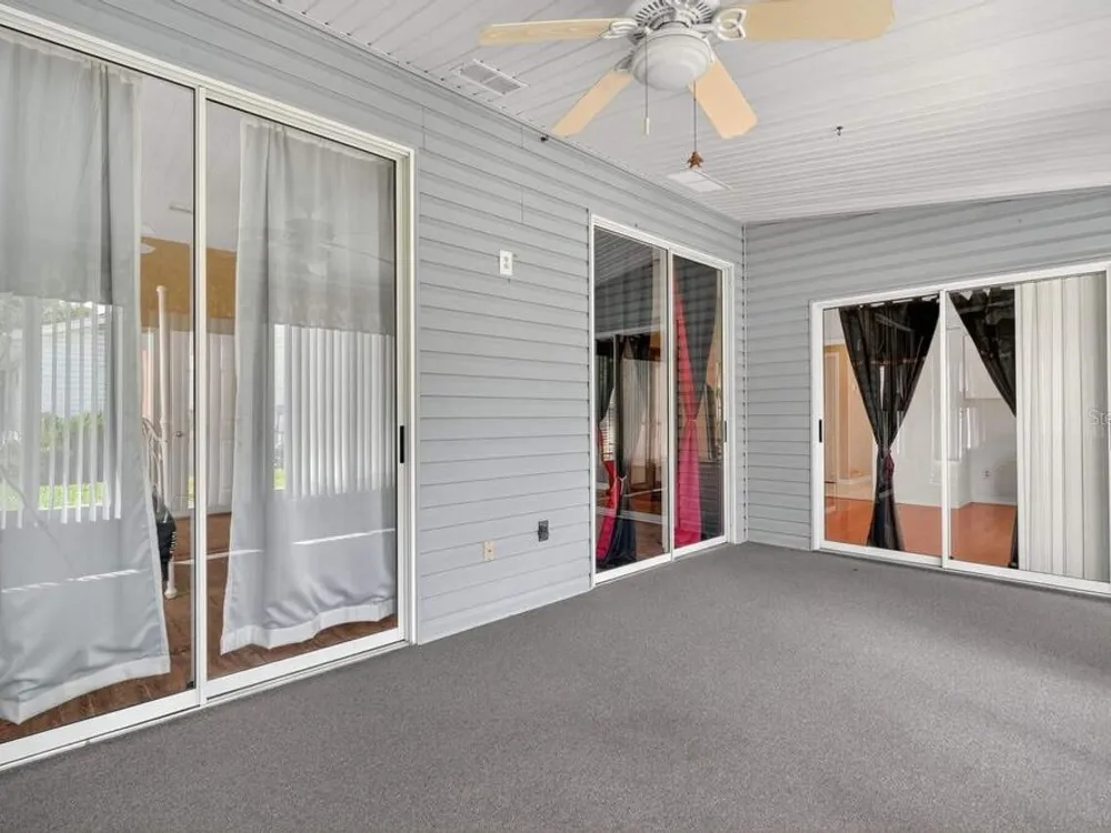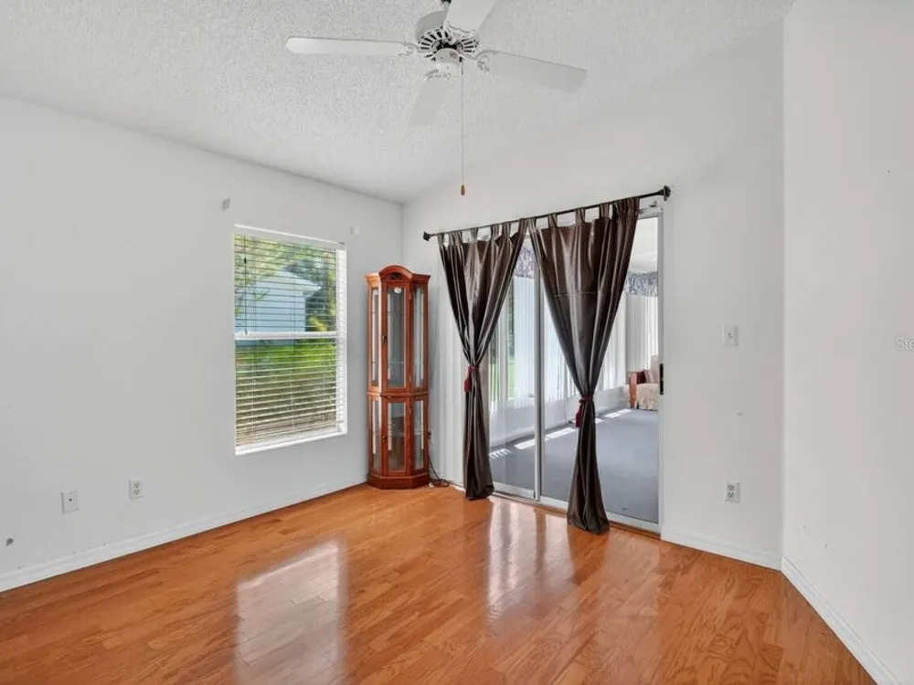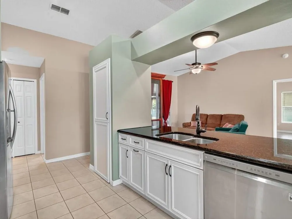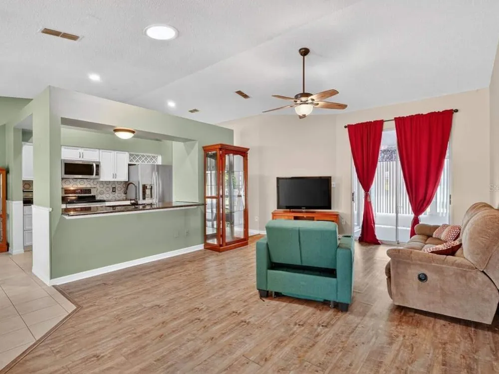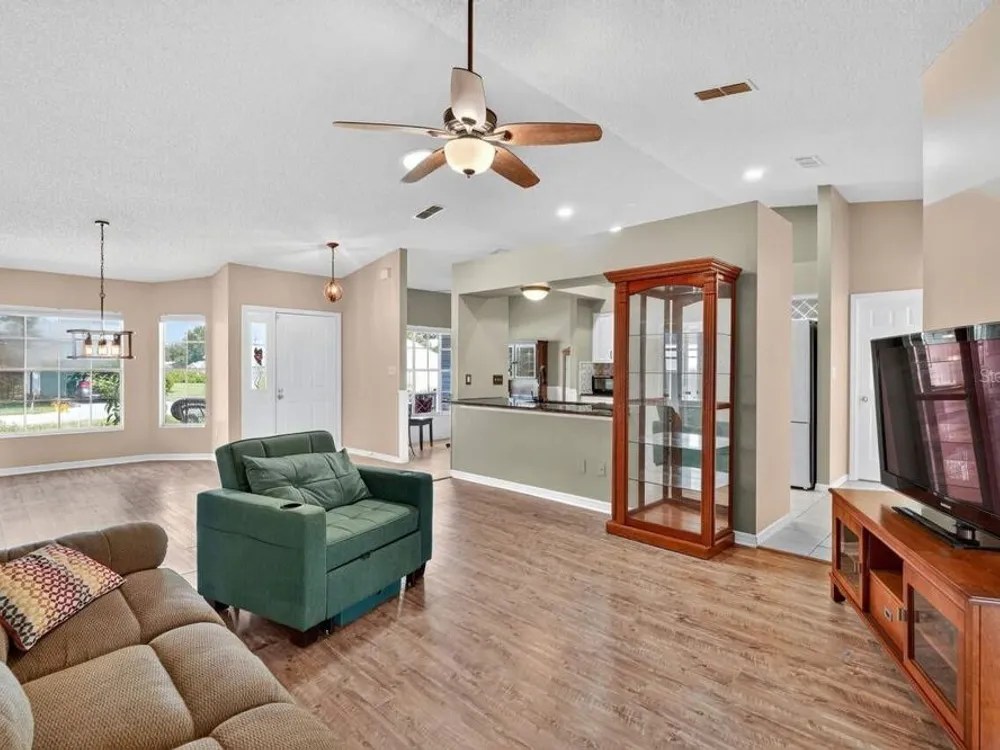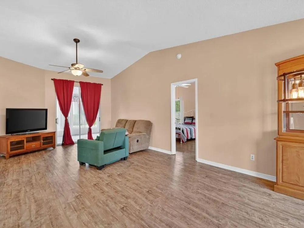 This home sits on a Large Corner Lot in The Plantation a stunning 55 and over golf community in beautiful Leesburg, Florida! Set on a corner lot, this 3-bedroom, 2-bath home with an enclosed and air-conditioned sunroom offers the perfect blend of comfort and style. Home offers a spacious, open layout, high ceilings, and formal dining and living areas. The kitchen features a walk-in pantry, a cozy breakfast nook, and a large snack bar that opens to the main living areas. Natural light pours in through a solar tube in the living room, enhancing the bright and airy ambiance. Modern light fixtures and a new ceiling fan add a stylish touch, while wood-look plank flooring continues throughout the master suite. The primary bedroom features direct access to the sunroom via sliding glass doors as does the the den/study. The enclosed sunroom is a great bonus space. Additional highlights include a dedicated laundry room and a spacious 2 car garage with built-in cabinets, a utility sink, attic access via pull-down stairs, and a workbench area. Located within The Plantation at Leesburg, a premier 55+ gated community boasting two championship golf courses, three clubhouses with heated pools and spas, fitness centers, pickleball, tennis, archery, and over 100 weekly activities—this home offers not just a place to live, but a lifestyle to love. Only 30–45 minutes to Orlando’s world-famous attractions and the international airport.