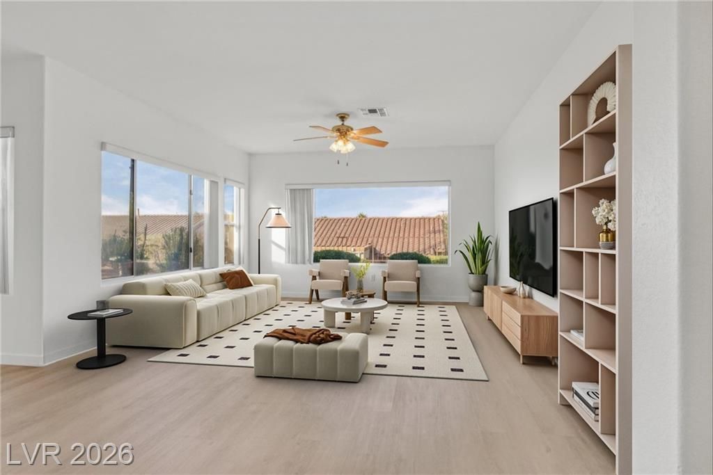 Beautiful turn key home... move in ready! This beautifully maintained Arlington Model home is known for its comfortable flow and offering a timeless design which is rarely offered. Freshly painted exterior and interior. Newly installed luxury vinyl plank flooring along with Newly installed carpets throughout the house and a New dishwasher. A Stunning home that offers 3 bedroom and 2 full and 1 half bath in Sun City Anthem. Convenient to shopping, dining and community amenities. This is a one-owner home.