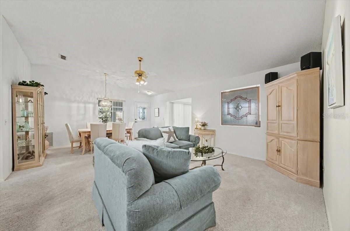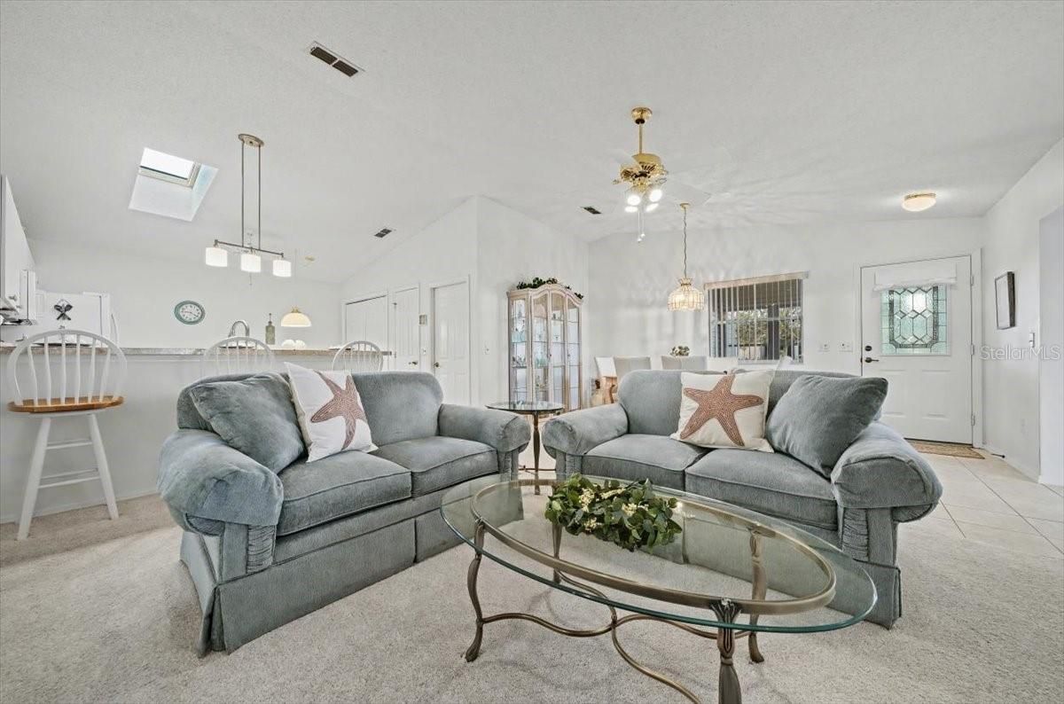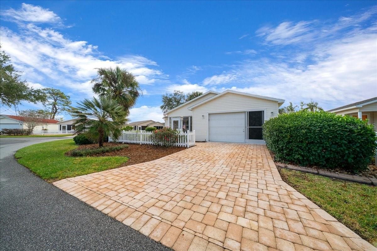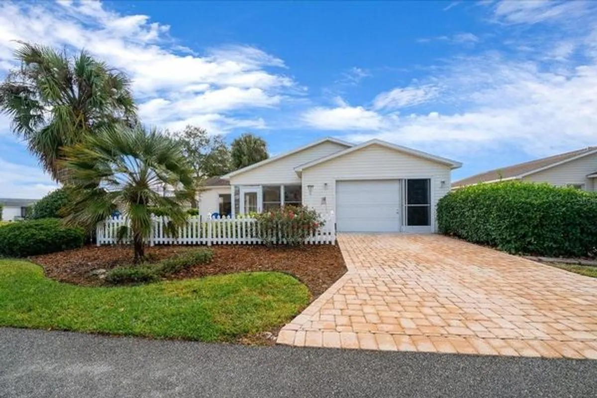 Welcome to this beautifully customized COLONY patio villa, perfectly situated on a CORNER LOT in the highly sought-after VILLAGE OF ALHAMBRA — and offered TURNKEY and with a FLOORING CREDIT at closing so you can choose your own NEW LVP flooring color and style! This one-of-a-kind villa offers an expanded 1,390 sq ft of living space, thanks to a thoughtfully added DEN / FLEX ROOM, making it truly unique among Colony patio villas. Curb appeal shines with a BRICK PAVER driveway, walkway, and outdoor patio, inviting you into a bright, open interior featuring vaulted ceilings in the main living area and a seamless, open-concept layout — ideal for both entertaining and everyday living. The light-filled kitchen is enhanced by a large SKYLIGHT and showcases white cabinetry, a center island with bar counter seating, and a calming neutral palette of soft whites and warm tans that flows beautifully throughout the home — perfect for casual dining, morning coffee, or entertaining guests. The seller is offering a flooring credit to replace the carpet, giving you the flexibility to select your own finishes and truly make this home your own. As you view the photos, please note, a few pictures have been virtually staged to show the new flooring potential. The primary suite is a relaxing retreat, featuring a large WALK-IN closet and an updated ensuite bathroom with a beautifully renovated shower. The guest bedroom offers VAULTED CEILINGS, a built-in closet, and plenty of space for visitors, while the guest bathroom includes a shower/tub combination, ideal for both guests and everyday use. Additional highlights include: Updated primary bathroom 1.5-car garage with storage space, workbench, and pull-down attic access Screened garage door (manual) plus standard electric garage door Inside laundry Corner lot for added privacy Enjoy quick access to nearby recreation centers, pools, golf courses, shopping, dining, and entertainment — including the vibrant SAVANNAH CENTER, just moments away. Updates: Roof (2015) • Lennox HVAC (2005) • Hot Water Heater (2019) This is a rare opportunity to own a customized, NO-BOND patio villa in Alhambra — schedule your private showing today!